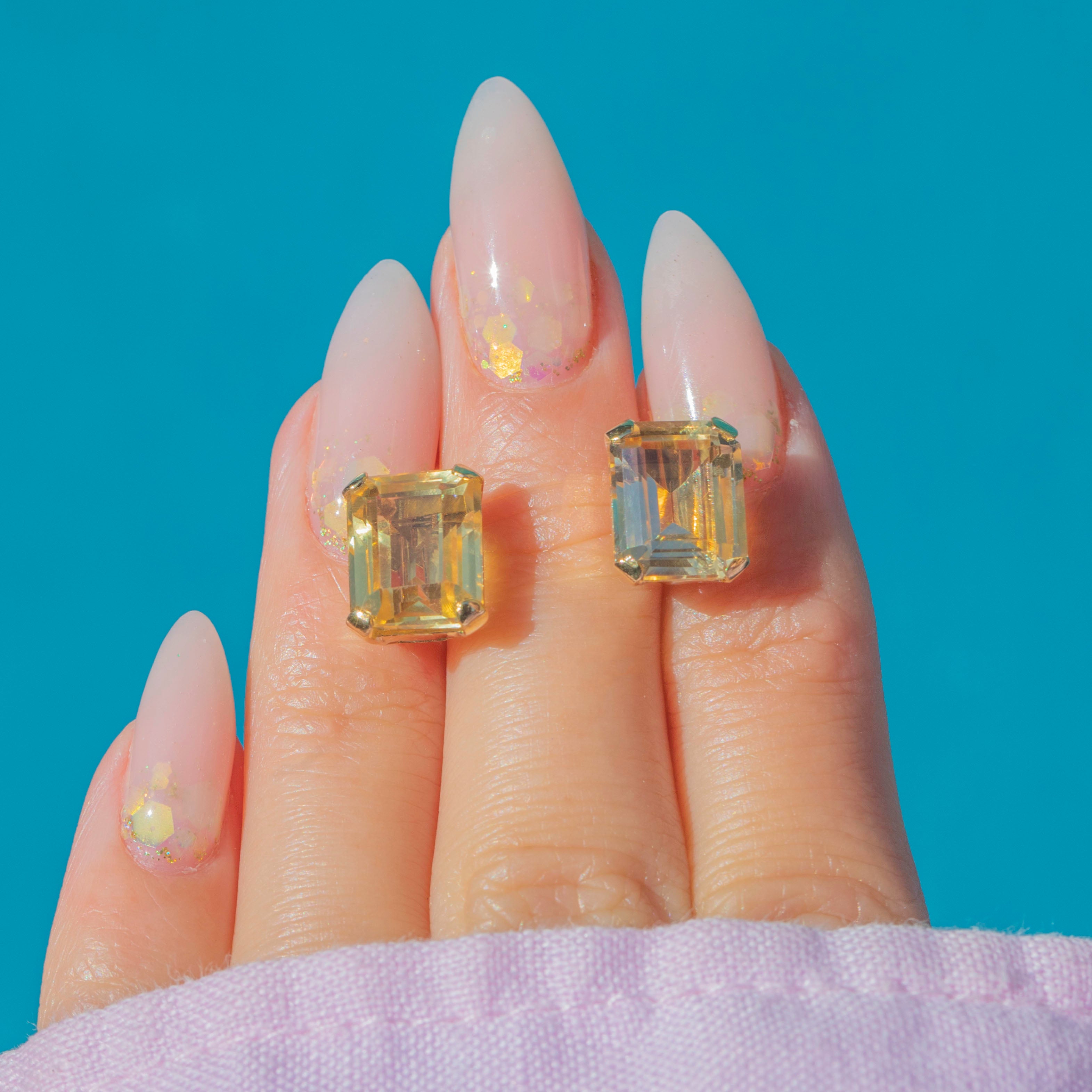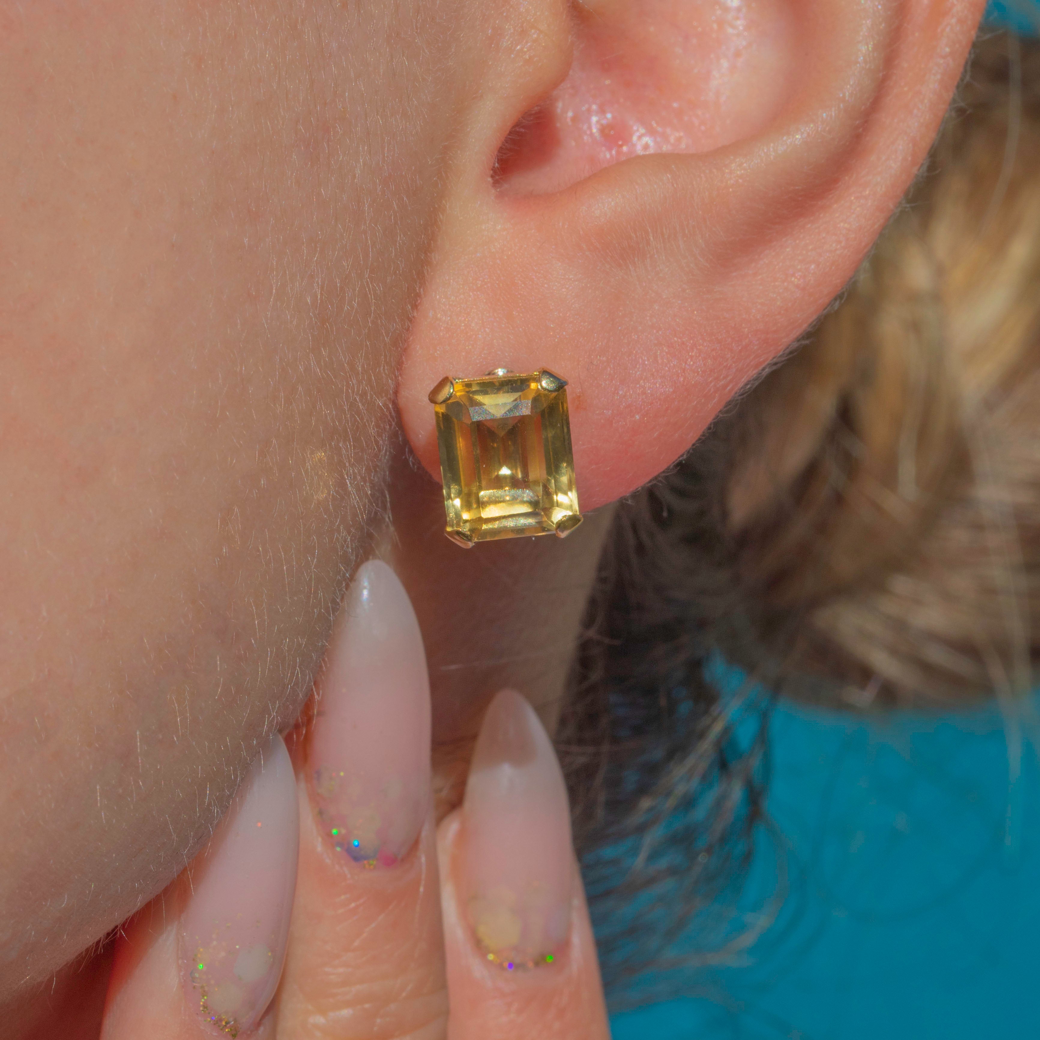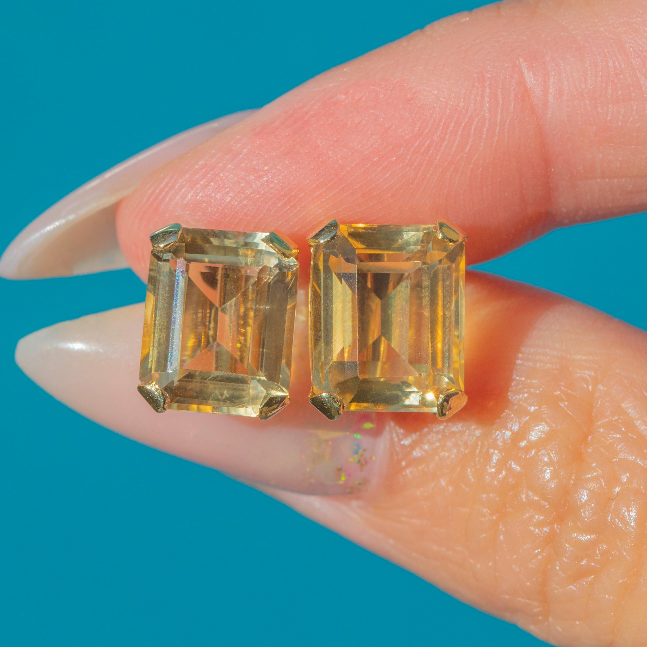 14ct Gold Emerald-Cut Citrine Earring, 8.26ct