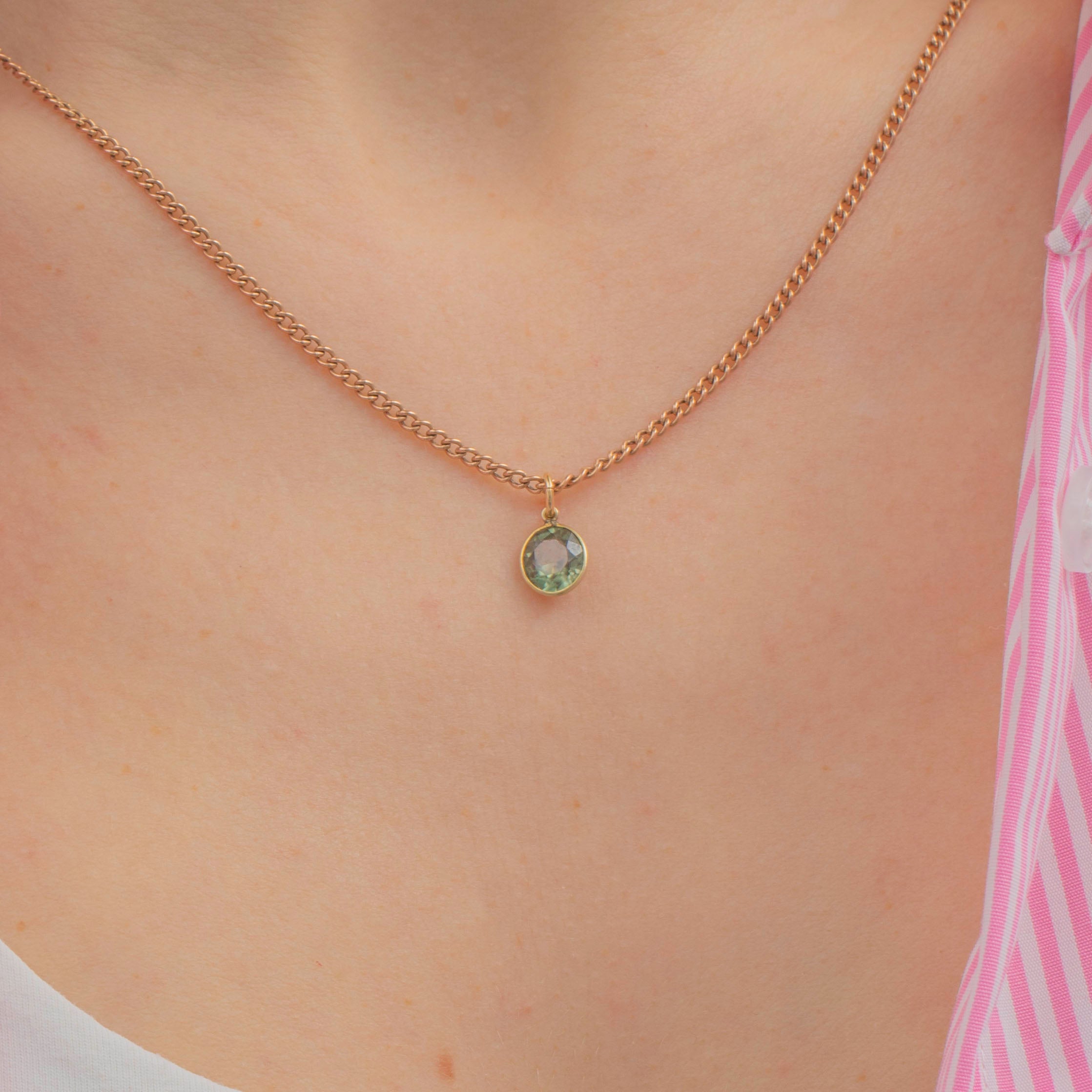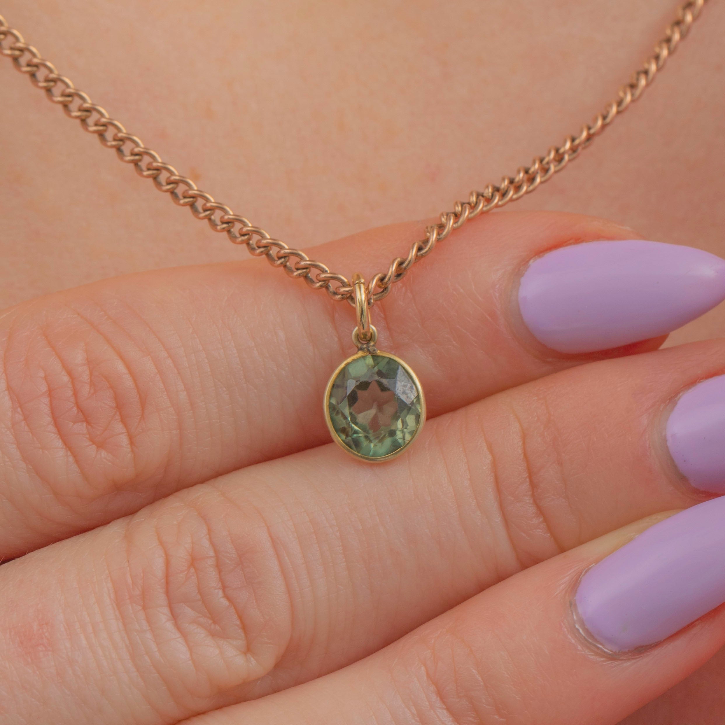 EXCELLENT. This 14ct Gold Green Zircon bezel-set charm is in excellent condition. The setting is smooth and buttery, and encases the Zircon beautifully. The Zircon has a gorgeous green hue and is free from any signs of wear! This antique Zircon charm will bring you much wearing pleasure.