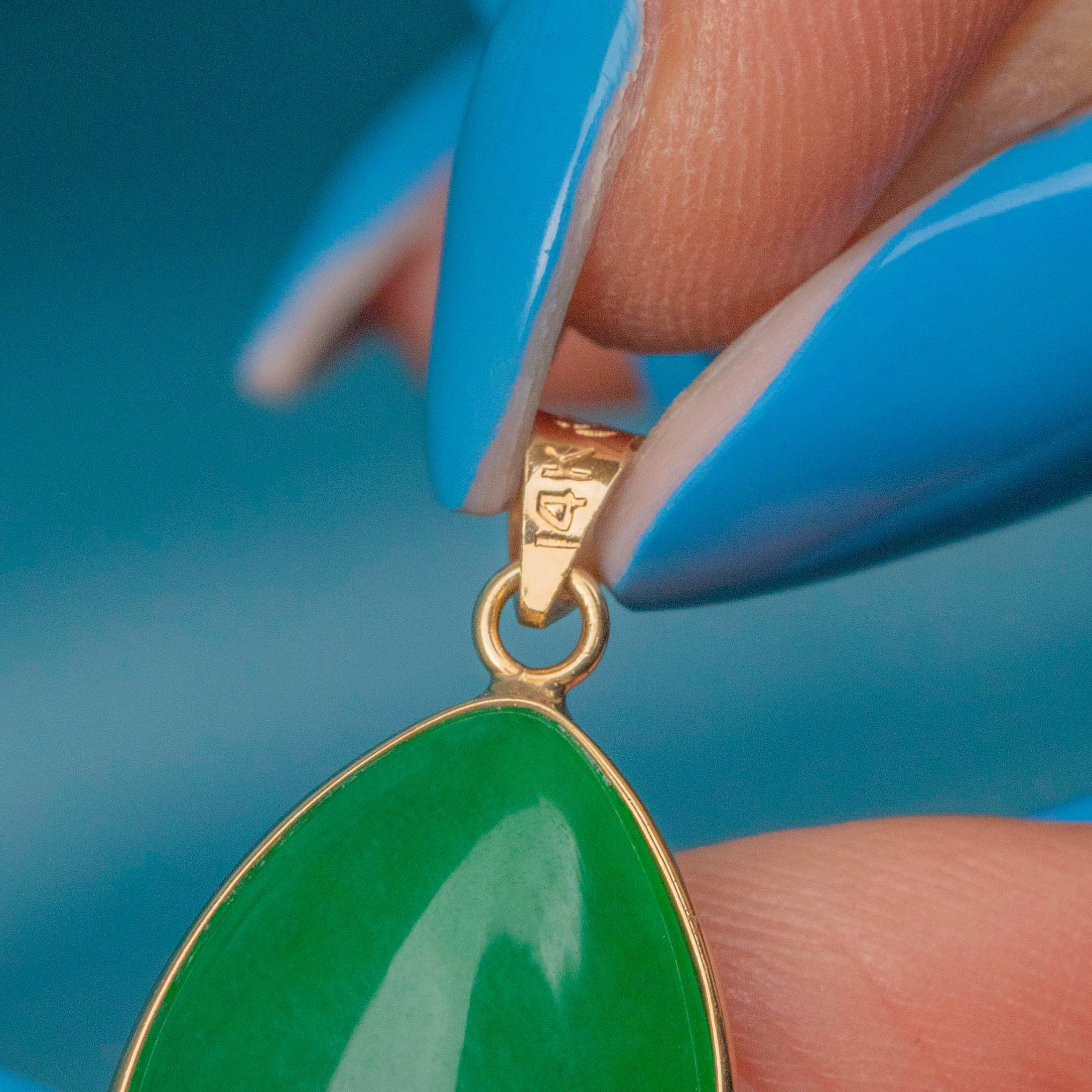Add a pop of colour to your neck stack with this 14ct Gold Jade Navette pendant!