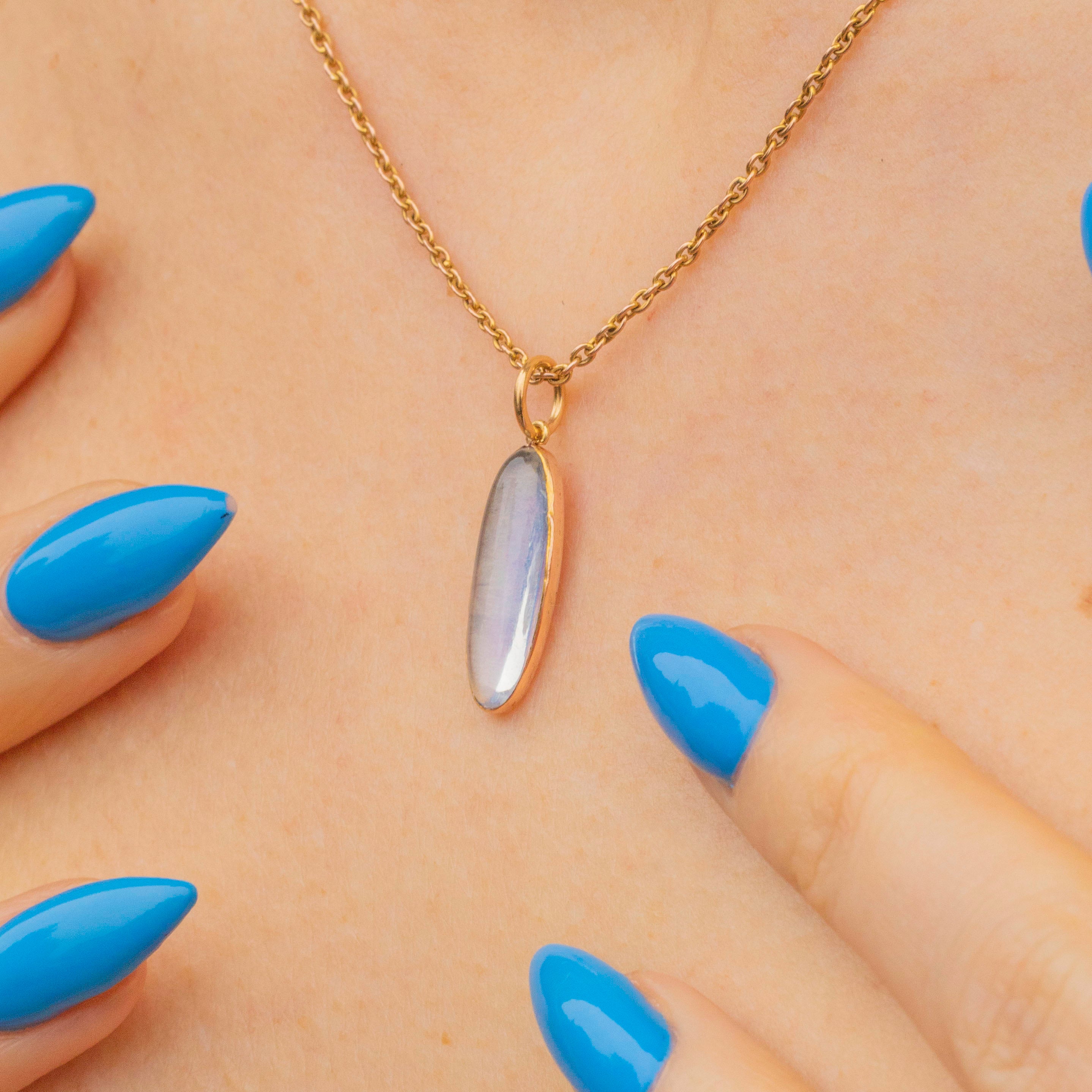 Add a hint of ethereal magic to your collection with this 14ct Gold Moonstone cabochon pendant!
