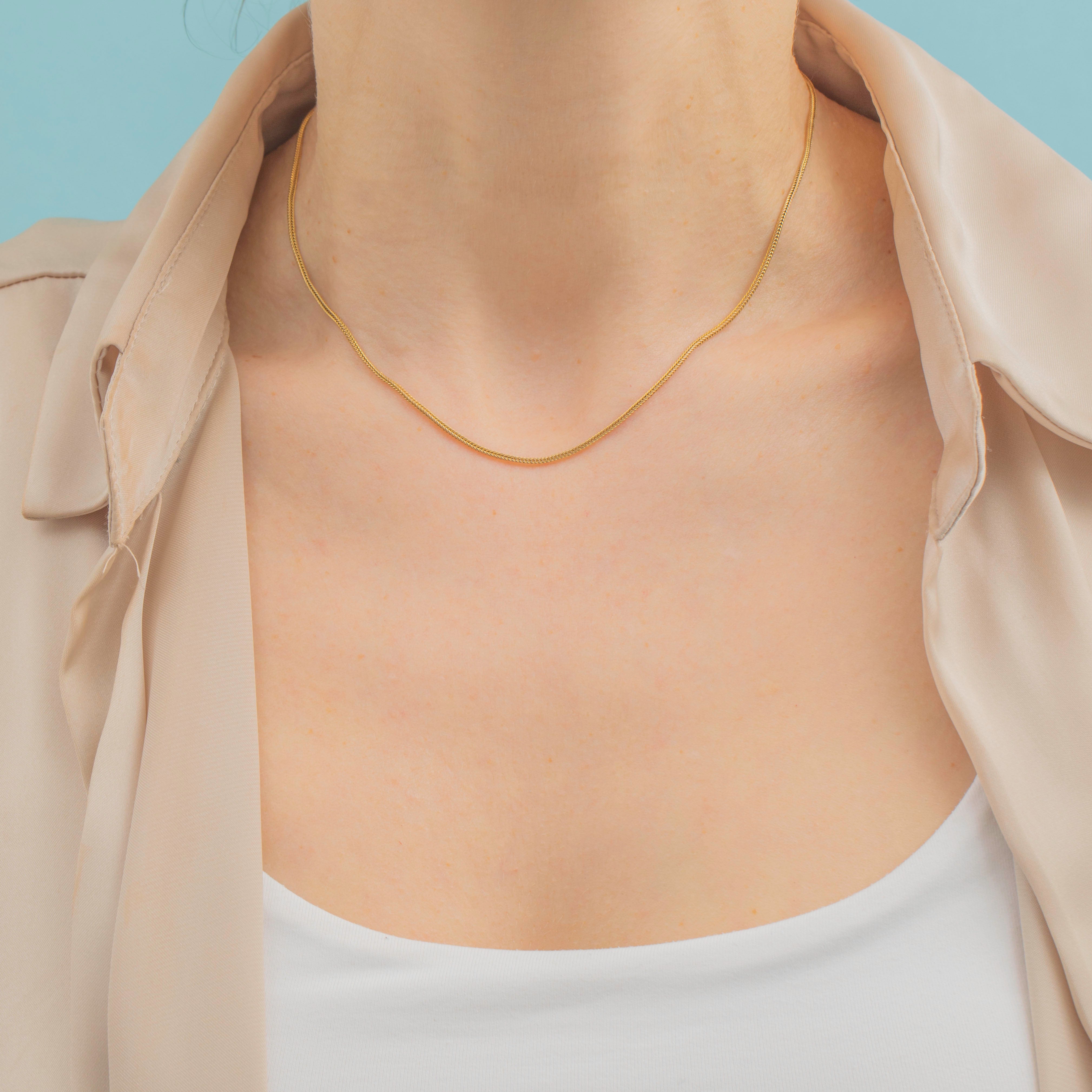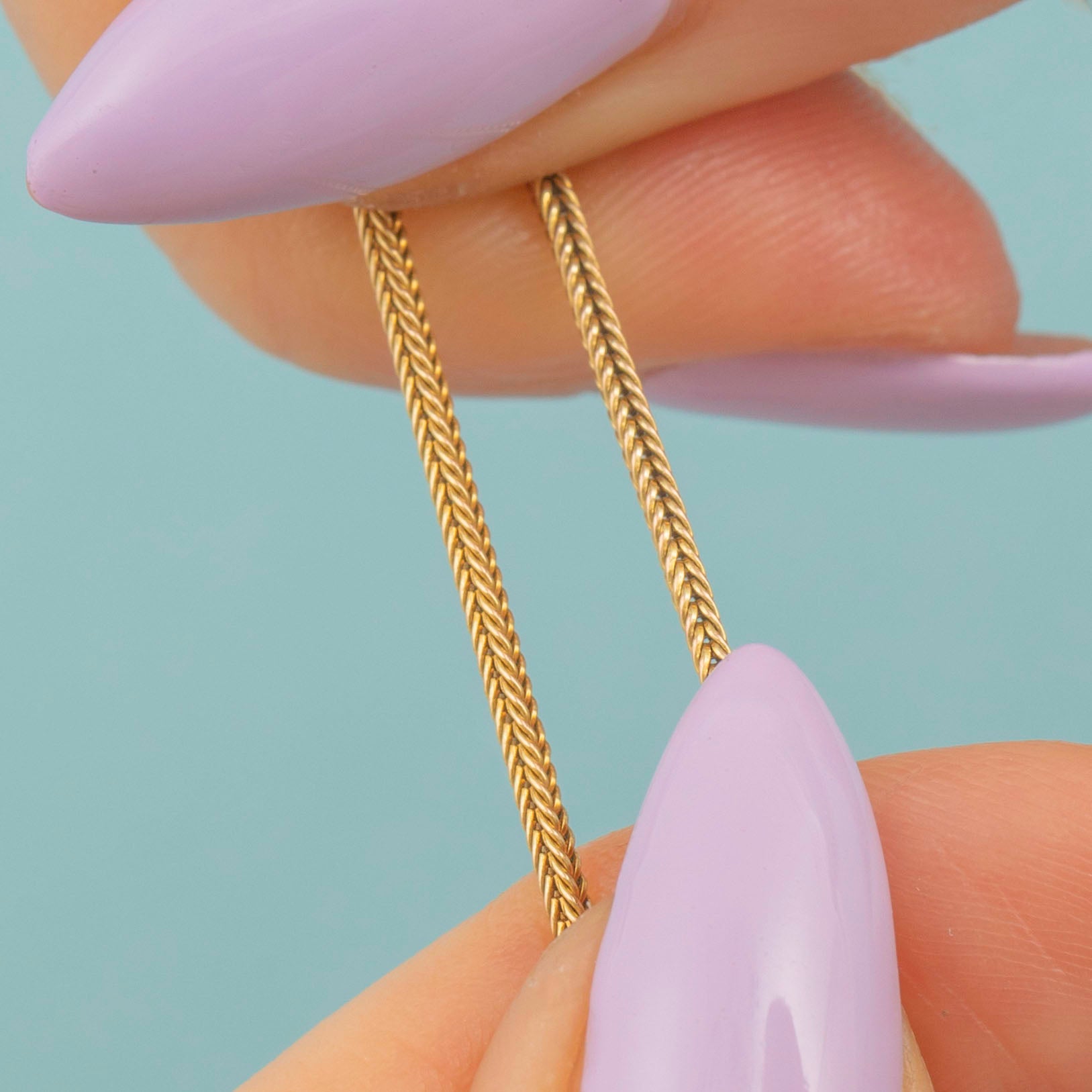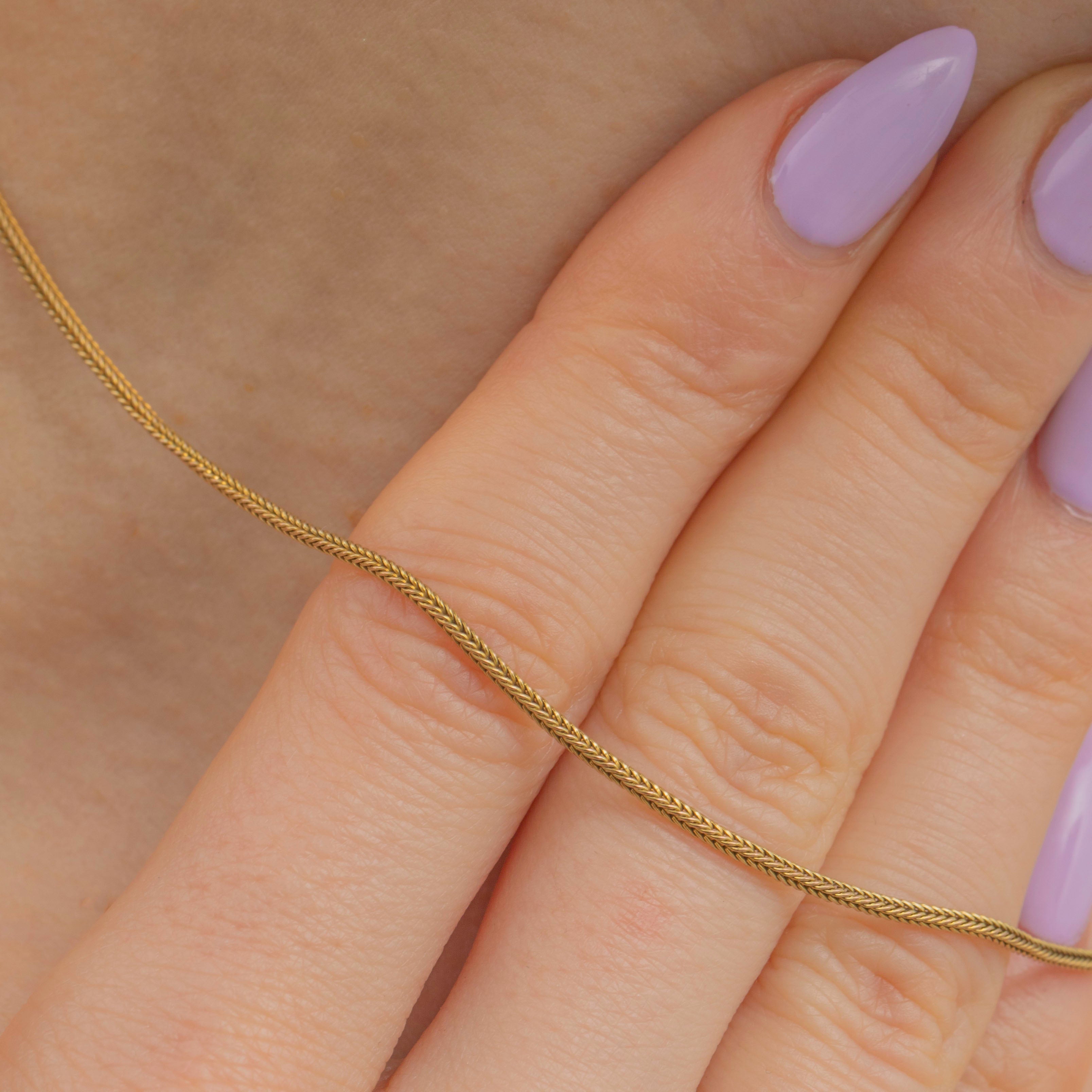 Made from sleek foxtail links, this 15" Gold chain is a slightly shorter length, so it will pair wonderfully with a high-neck shirt and stack amongst your other favourite chains effortlessly!