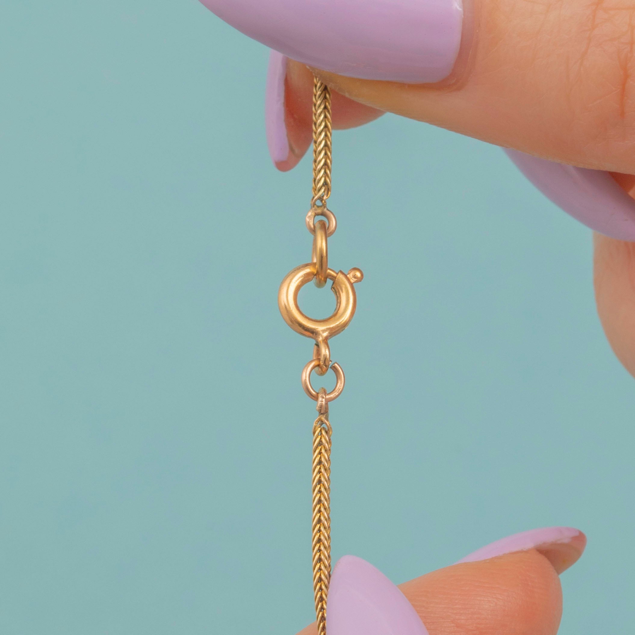 A stunning 15" antique 15ct Gold foxtail link chain, complete with a bolt-ring clasp! Whenever you're not sure what to wear, a Gold chain can always be your go-to, and this one would make a fantastic choice!