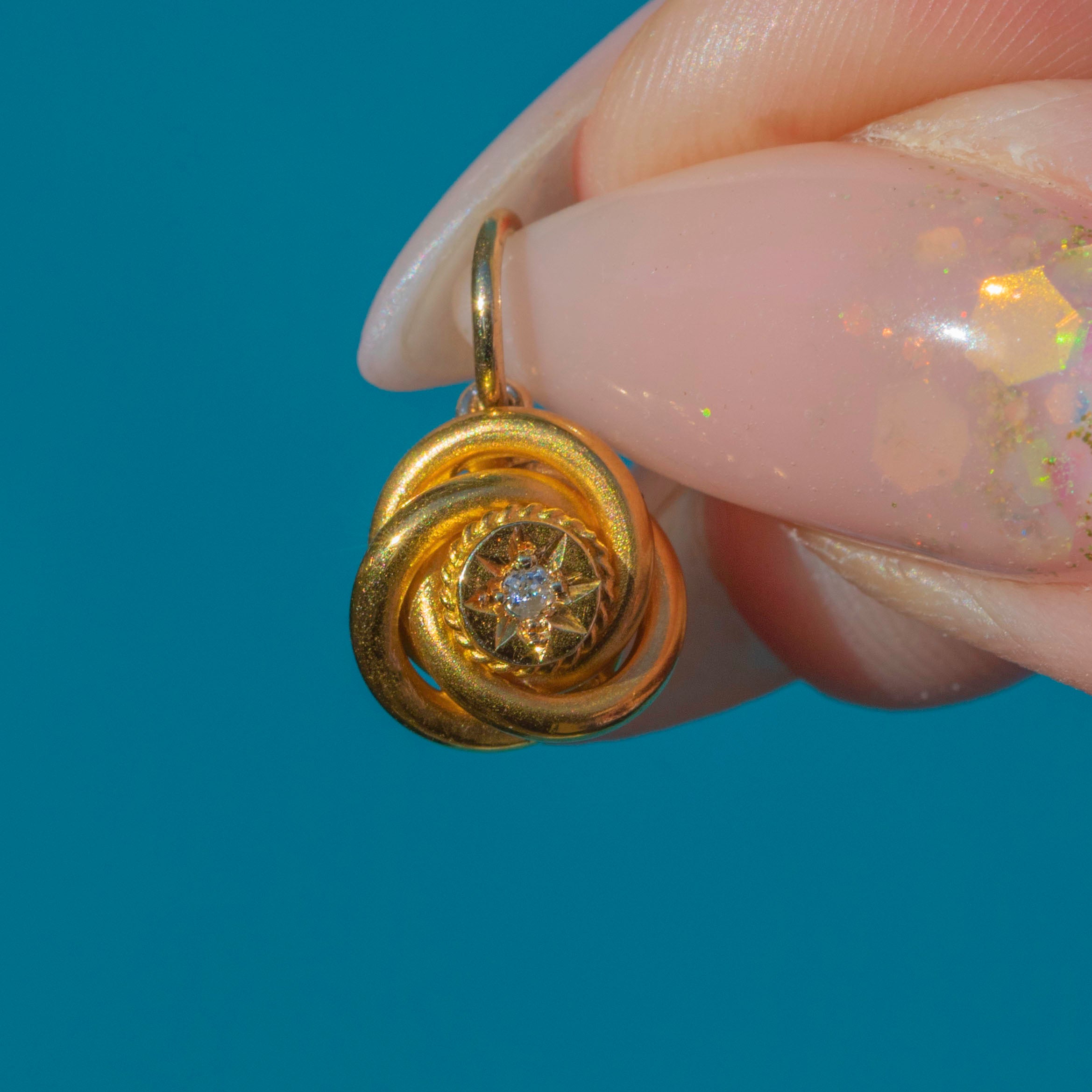 This dainty Edwardian pendant is crafted in rich 15ct Gold and set with a single sparkling Diamond. The bright Diamond adds a touch of fire and light to the smooth Gold setting, creating a timeless and elegant look.