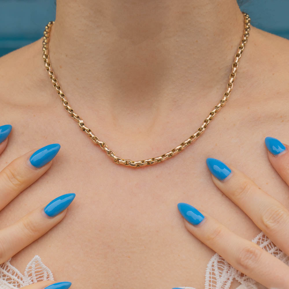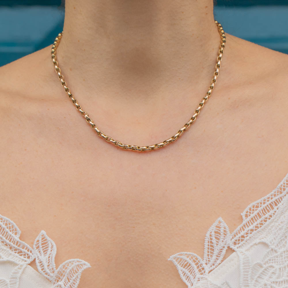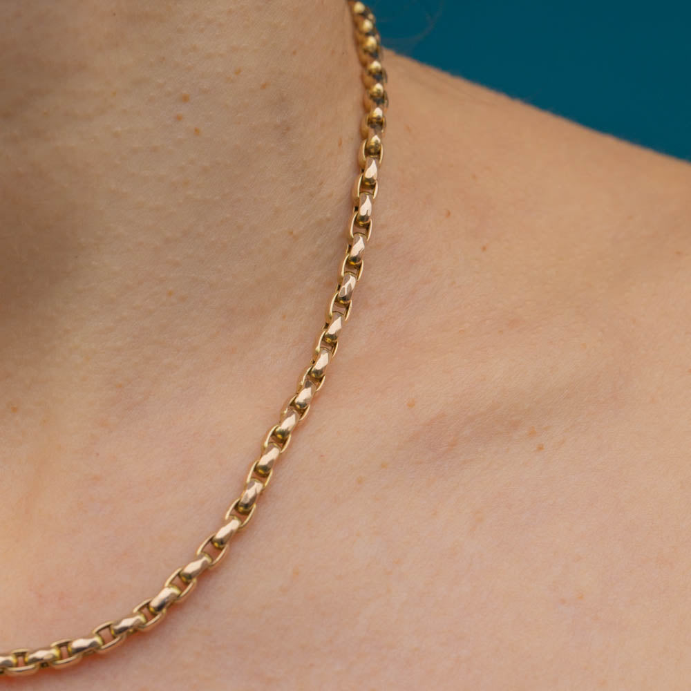 A splendid 16.5" antique 9ct Gold faceted belcher chain for your antique jewellery collection! This solid Gold chain has timeless appeal and will become your go-to piece.