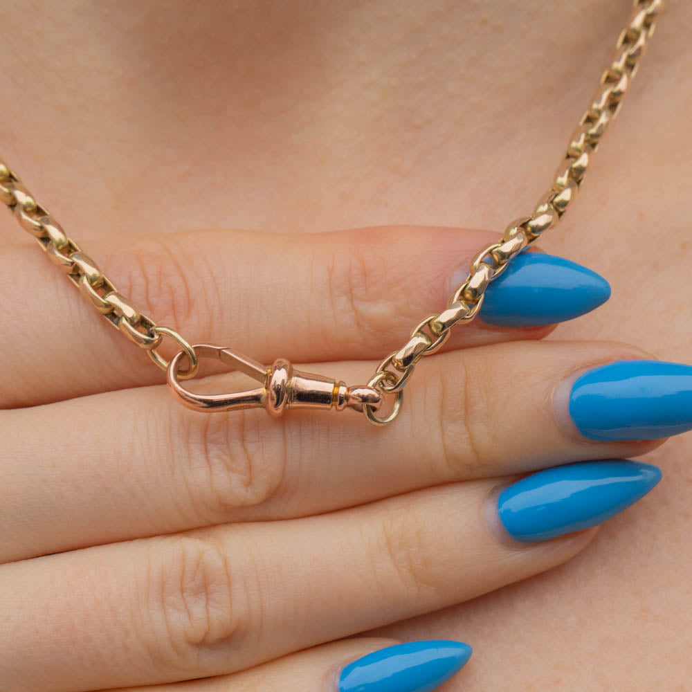 This antique belcher chain sits at a cool 16.5", so will look fabulous when worn alone, or add a pendant, split ring, or suspend a charm from her dog-clip- do not hesitate to browse our extensive collection for some inspiration!