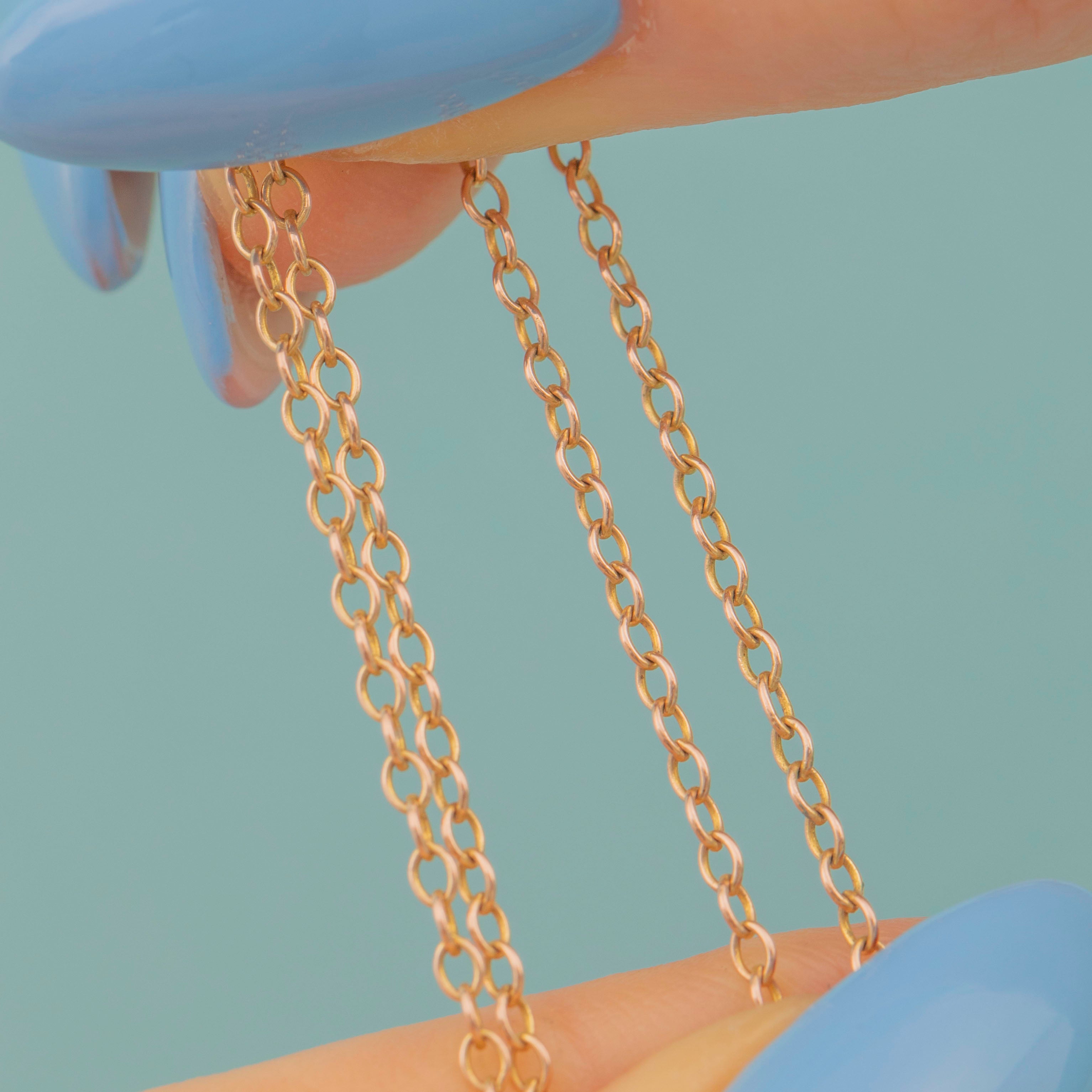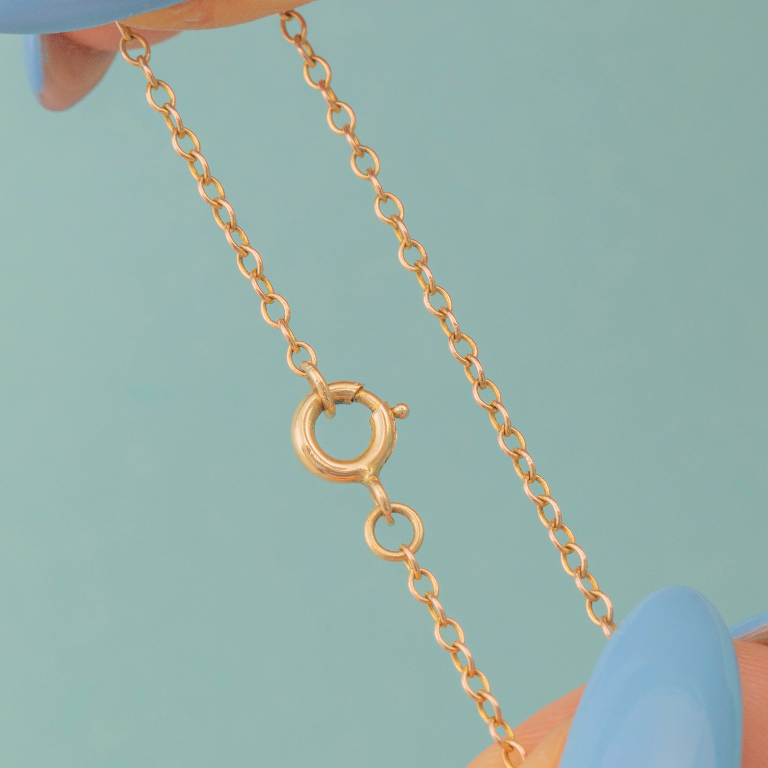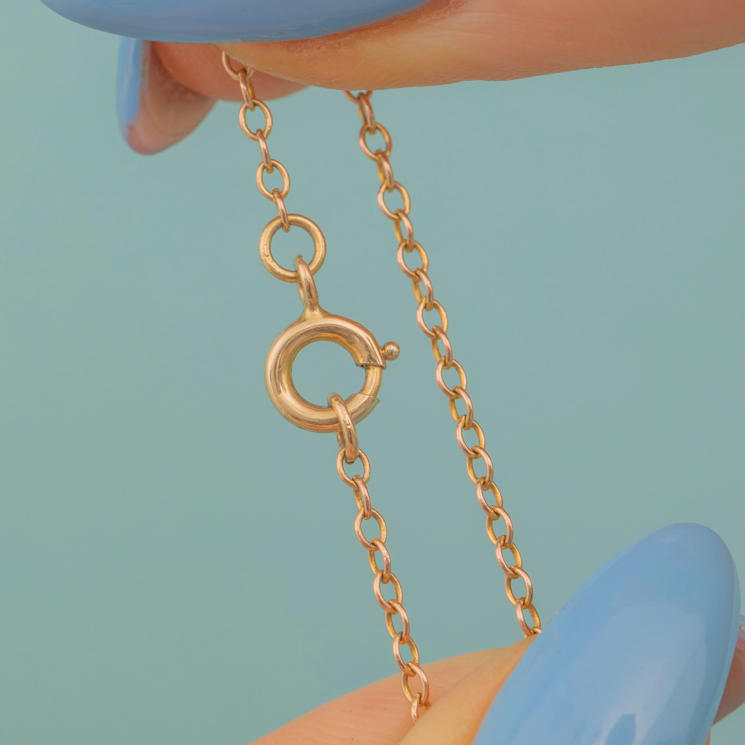 This 16.5" antique 9ct Gold skinny pendant chain is an easy-to-wear chain from the Victorian era. You can never go wrong with a solid Gold chain in your collection, providing the perfect touch of everyday decadence to your outfit.