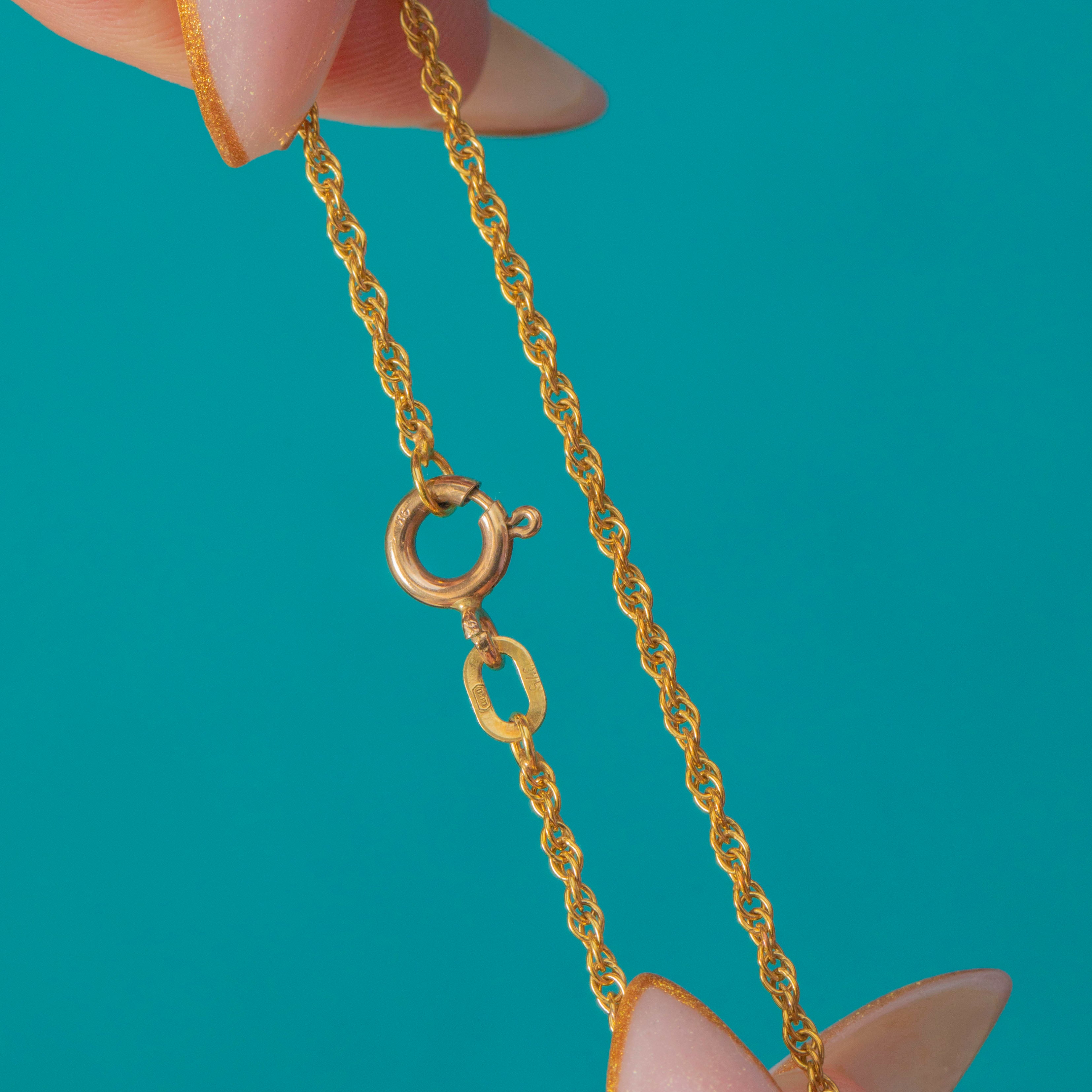 This Vintage 9ct Gold rope chain is a classic and versatile staple. The twisted links catch the light beautifully, giving it a bright, fluid sparkle that layers effortlessly with charms, pendants or other chains.