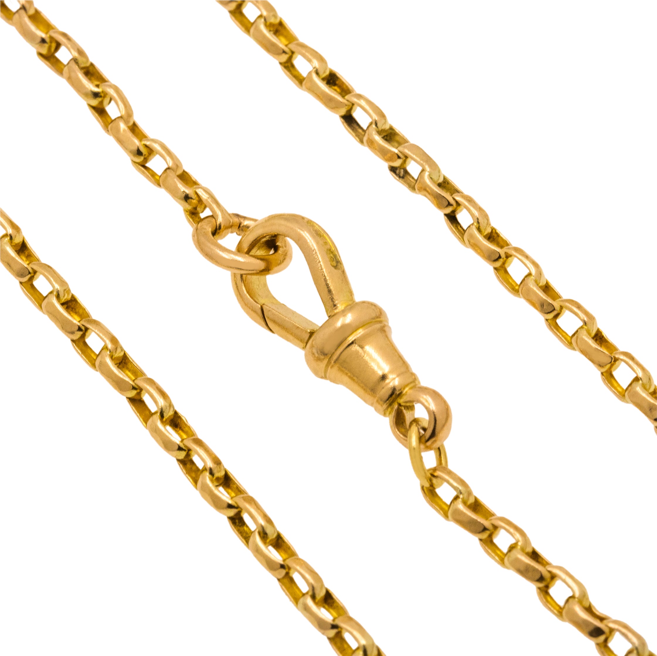 Antique Gold chains are an ideal piece to centre your look around; this piece's timeless and classic nature means that you will continually reach for her over the years. Complete with an antique dog clip attending to all your charm-holding needs, this Victorian belcher chain has a lot of wear potential!