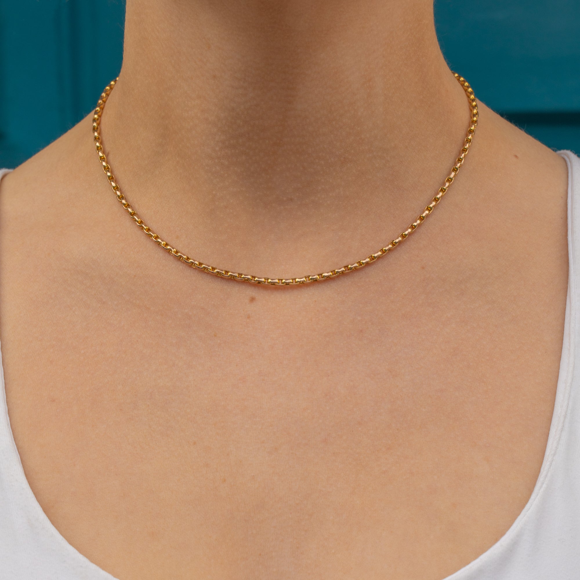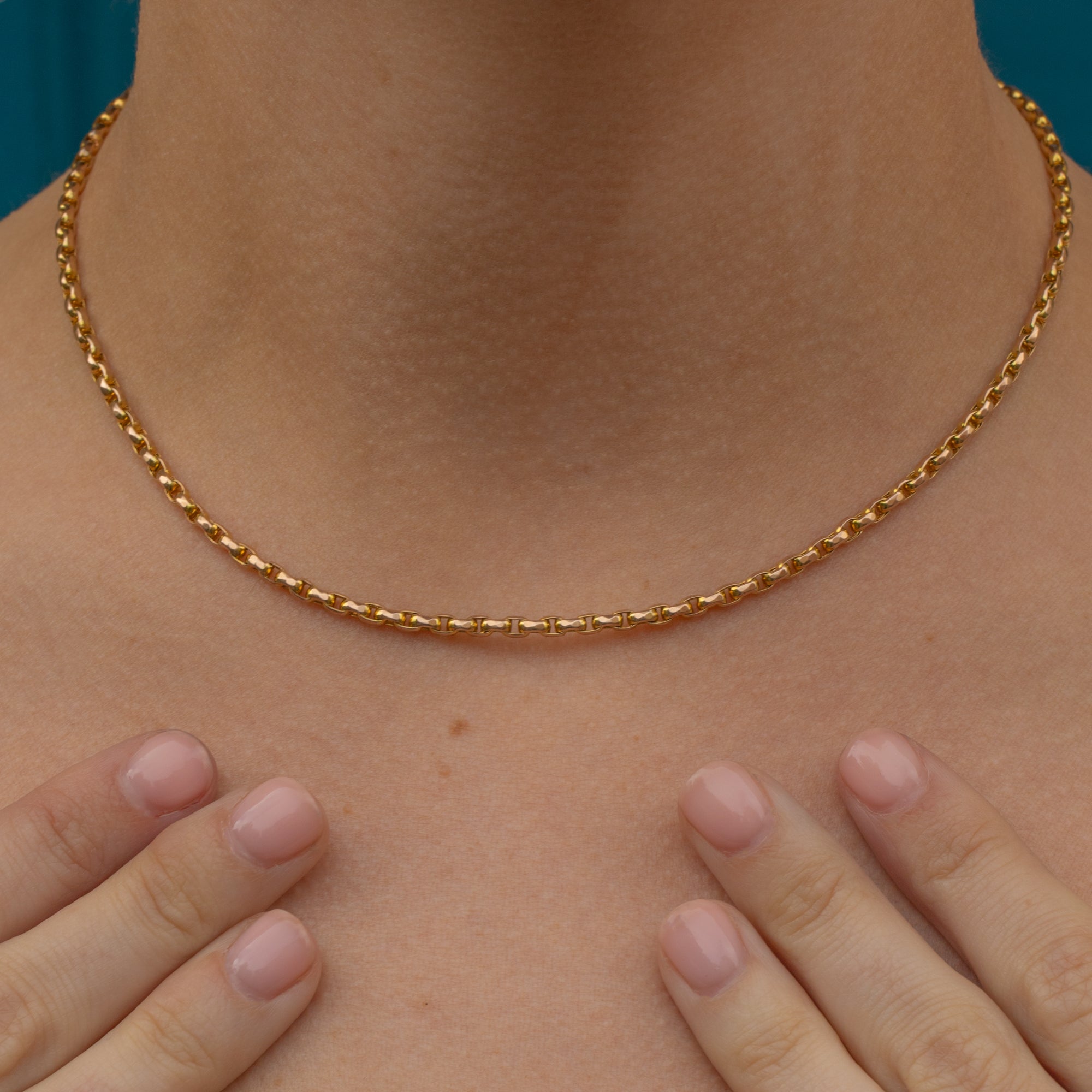 The beauty of a solid 9ct Gold chain is its endless styling potential - you can wear it alone, with a pendant, or incorporate it into a curated neck mess; however you choose to wear this 9ct Gold chain, she'll add undeniable antique charm to any outfit!