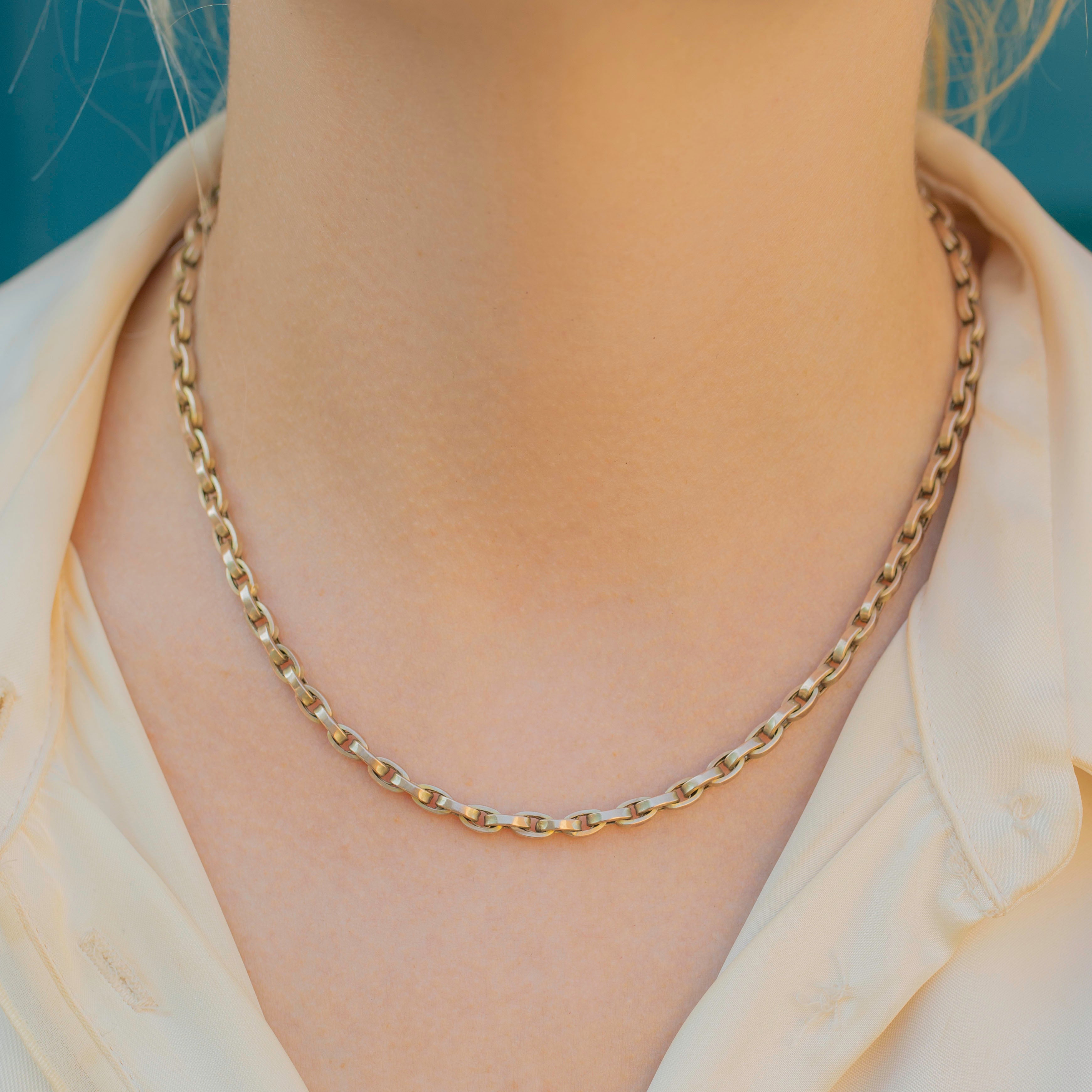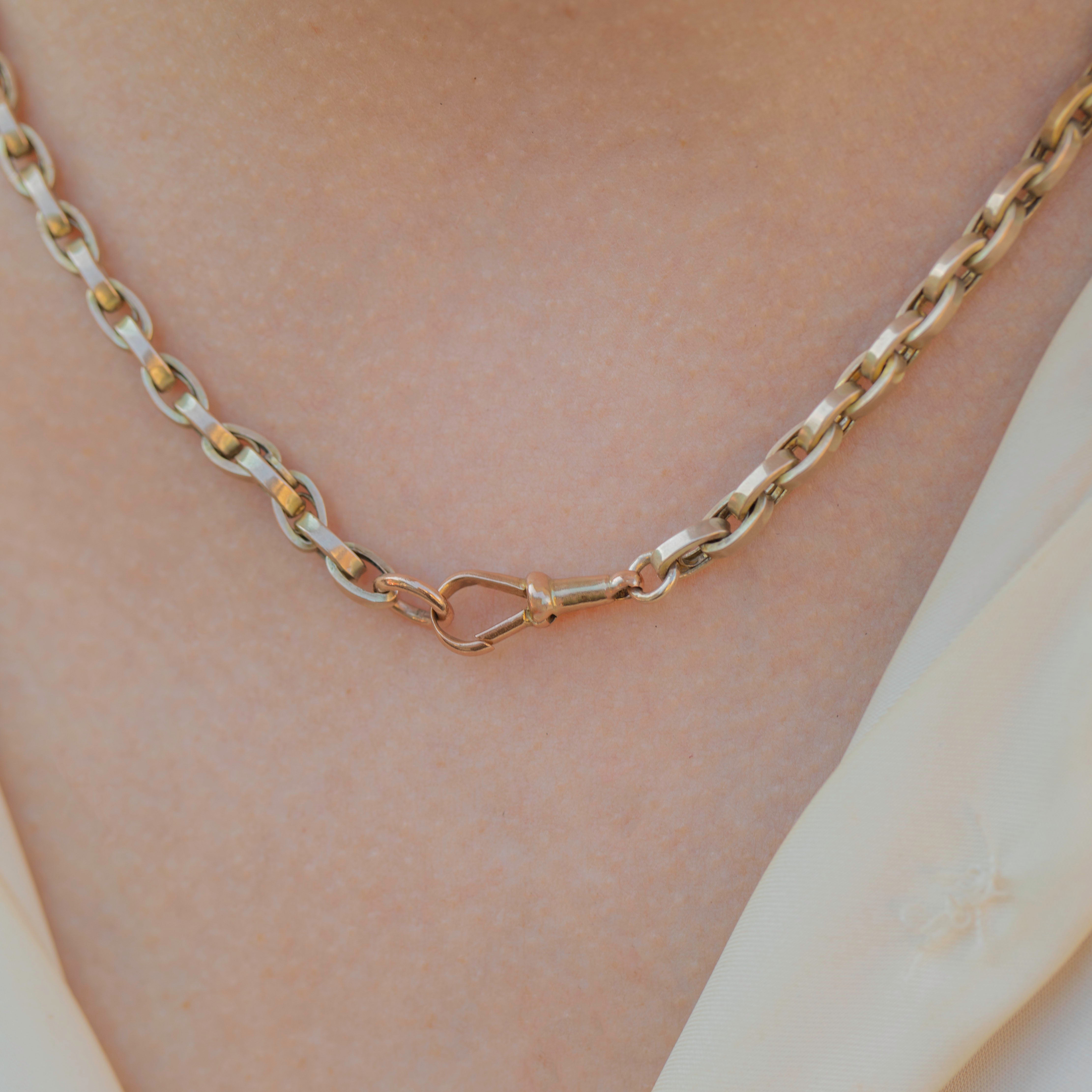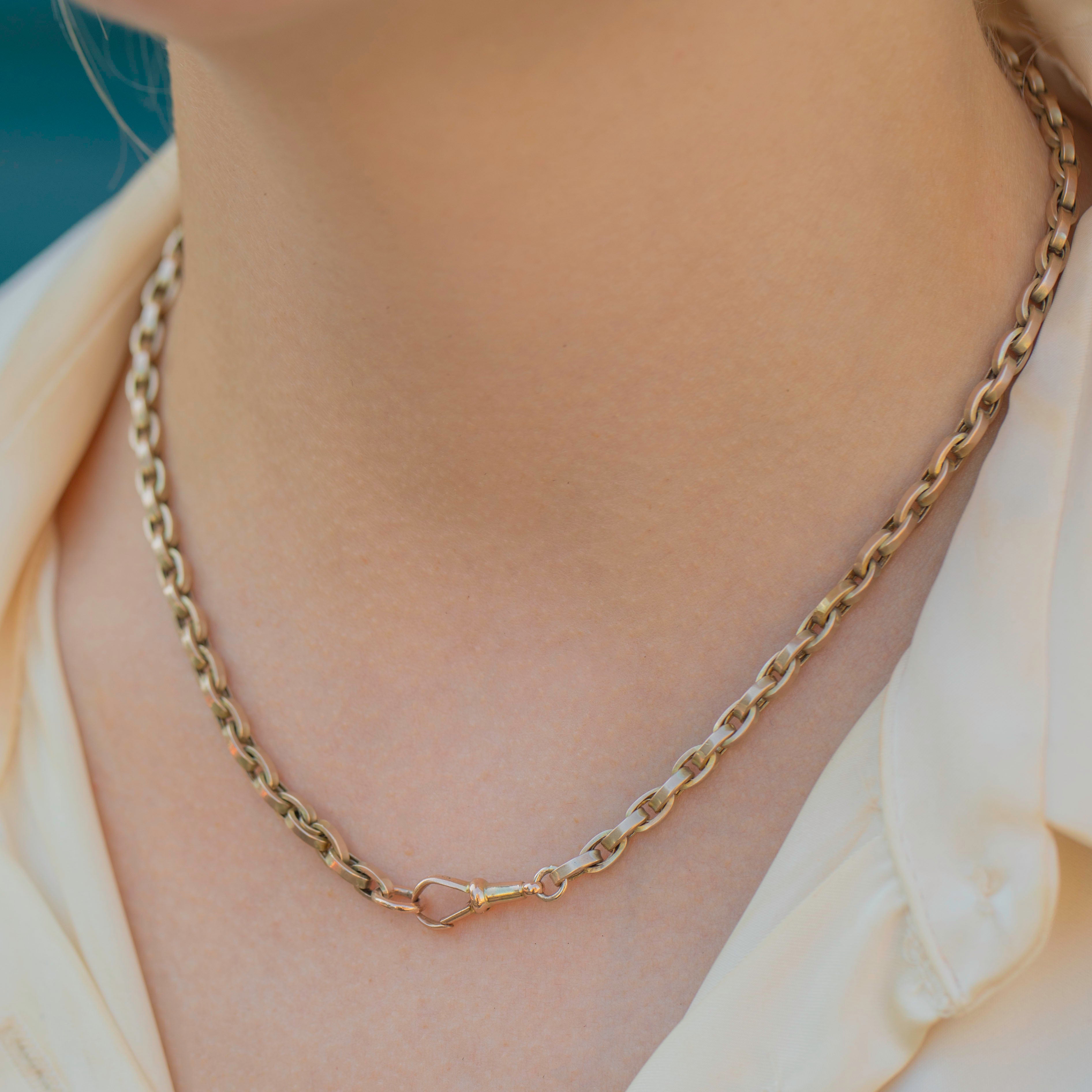 Crafted from buttery 9ct Gold, this antique Gold chain is fastened with a dog clip, which doubles up as a pendant or charm holder, or simply pair her with a simple white t-shirt for an elegant, modern look.