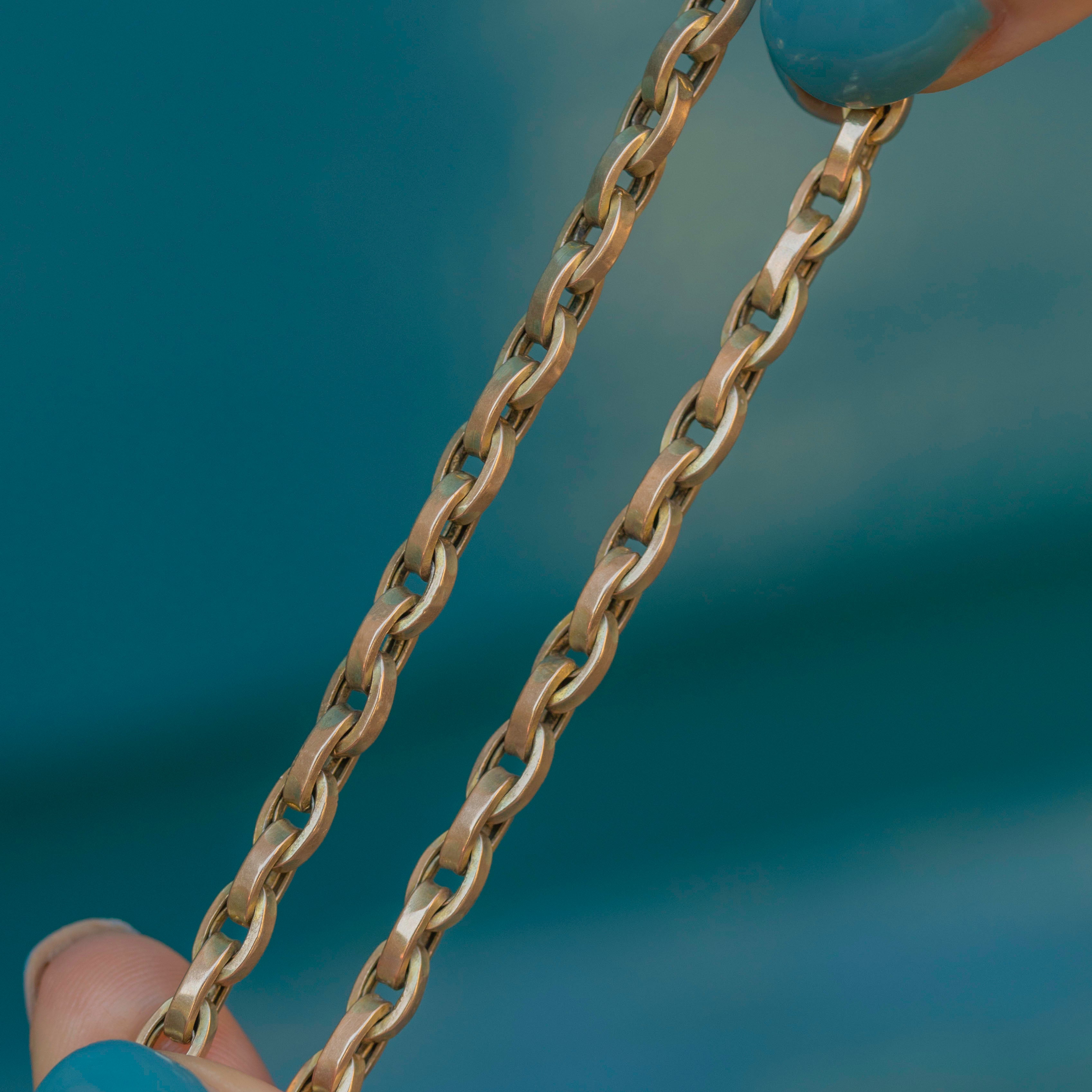 This bold 16" antique 9ct Gold chunky belcher chain is what you've been missing from your antique jewellery collection! With her rich Gold tones and thick oval-shaped belcher links, this Victorian necklace boasts prestige.
