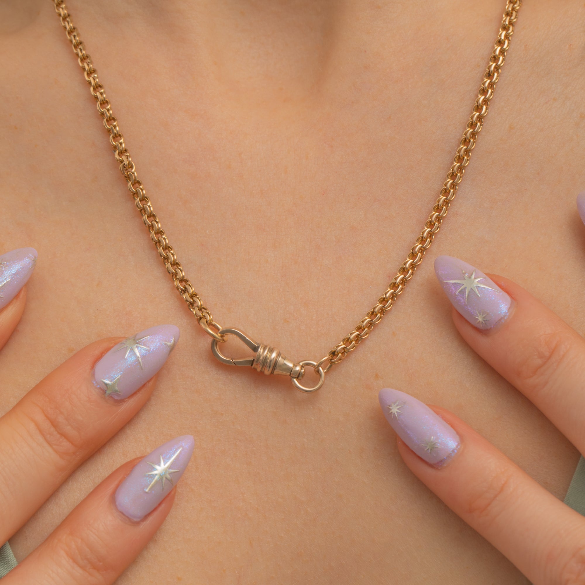 This Victorian Gold chain has a chunky expensive feel and can easily be worn as a standalone piece of stacked amongst your other favourite jewels. Complete with a large dog-clip to which you could add a charm or pendant for the ultimate antique look, this fancy Gold belcher chain is set to become a staple in your collection!