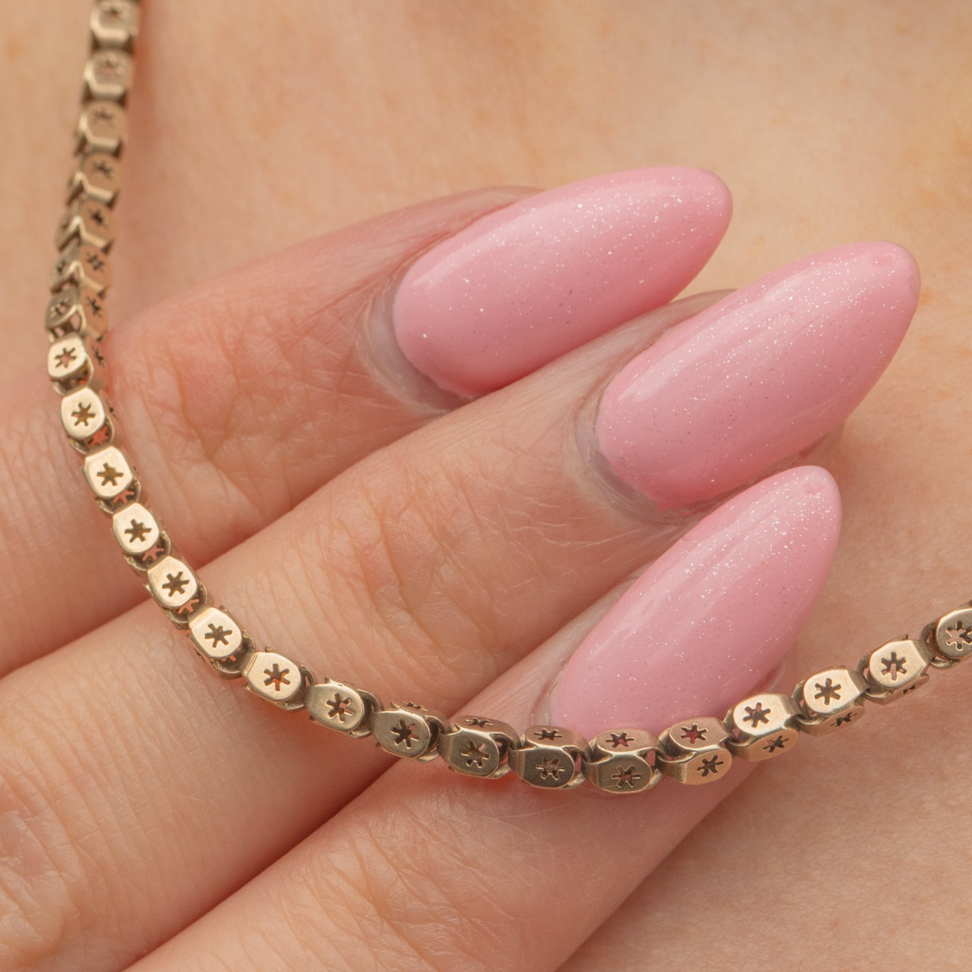 Pierced chains are one of the most sought-after styles of Victorian chains, and you can certainly see why! Promising texture, elegance and something a little different, this antique star pierced box chain will make an impressive addition to your necklace stack!