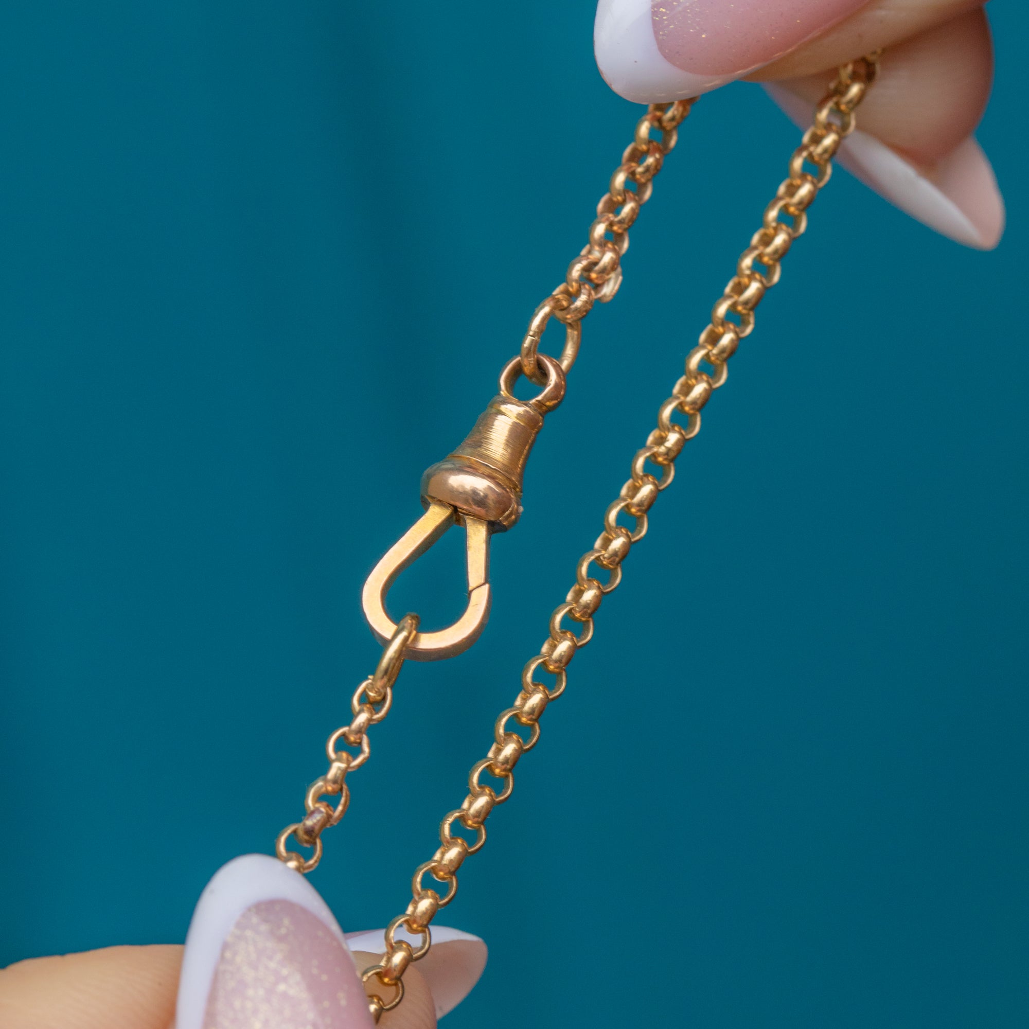 EXCELLENT: This 16" antique 9ct Gold skinny belcher chain is in excellent condition. The belcher links are uniform and secure, with little signs of wear. With her dog-clip in perfect working order, this 9ct Gold chain is a must-have!
