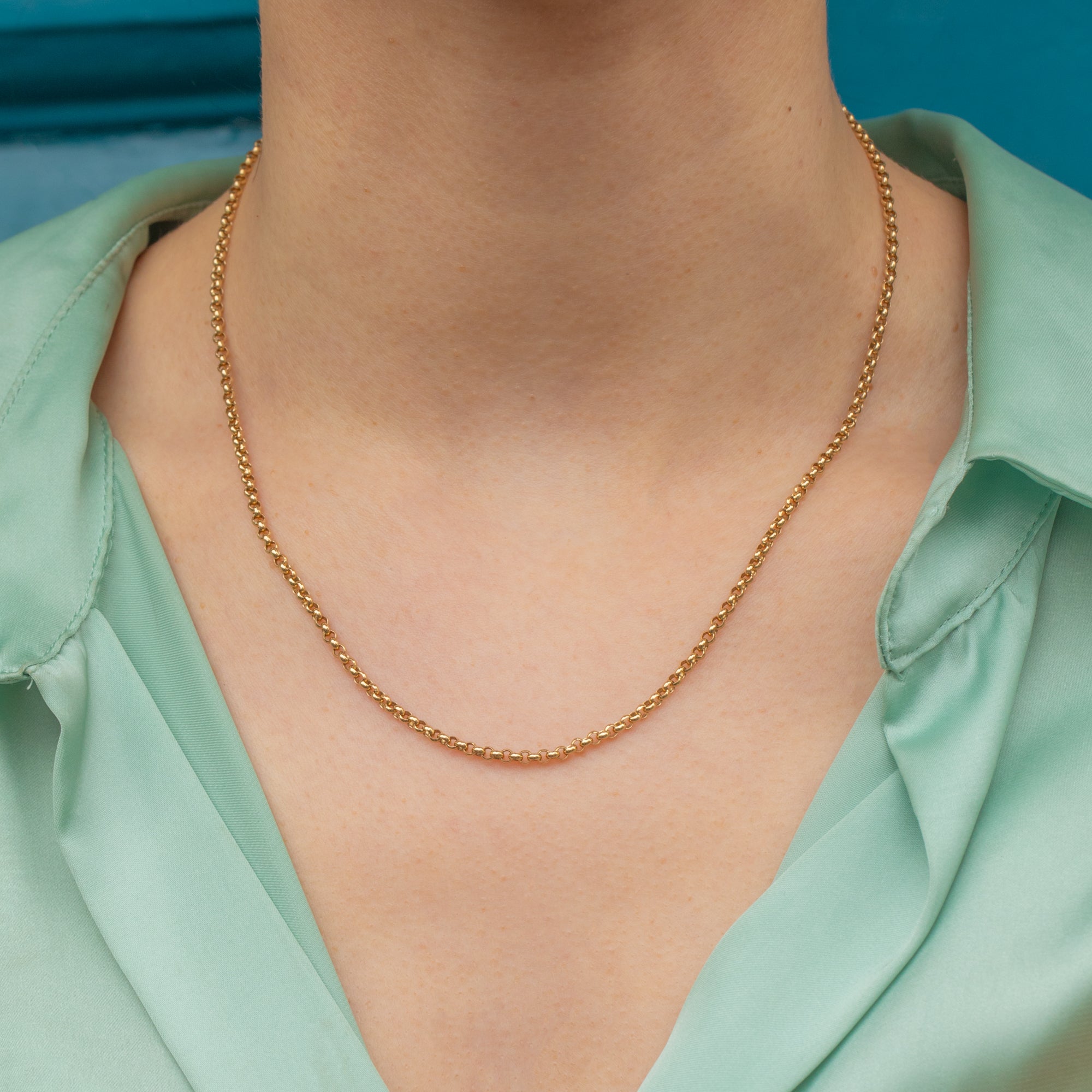 Crafted from buttery 9ct yellow Gold, this skinny chain features gorgeous belcher links, providing a lovely texture. Victorian Gold chains are known for their versatile nature, and she has just that. Great for suspending an array of charms and chains, for layering or to be worn alone, the options are endless!