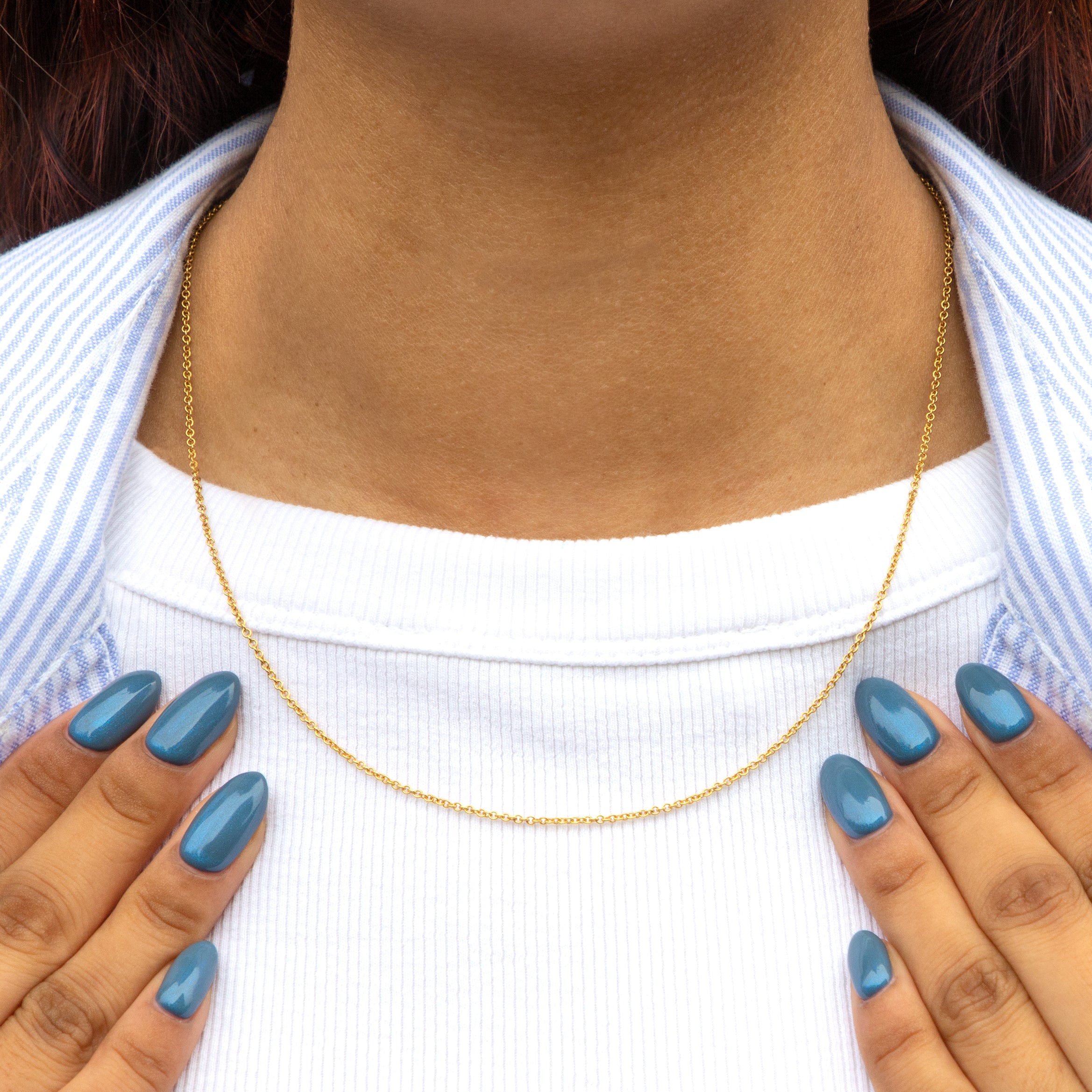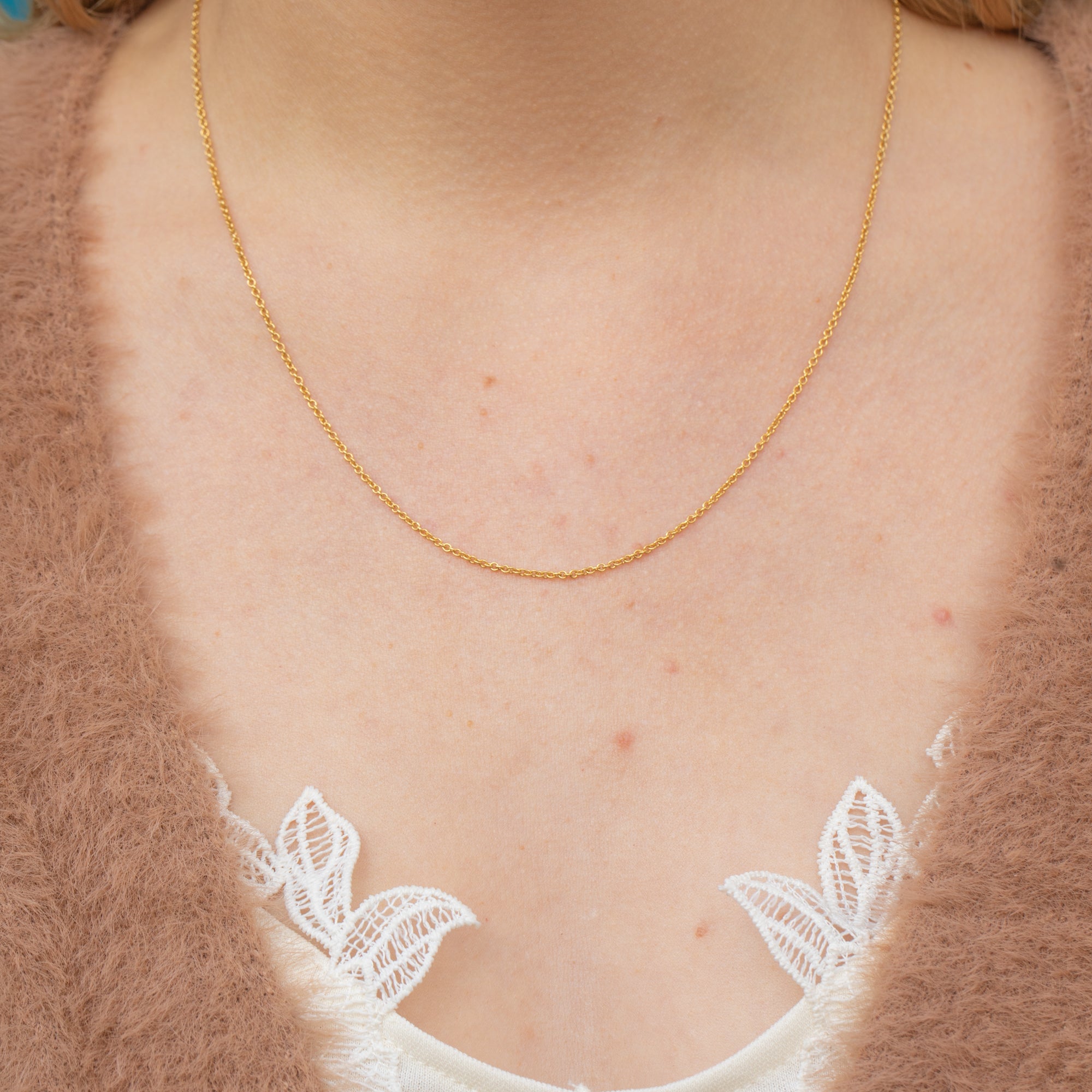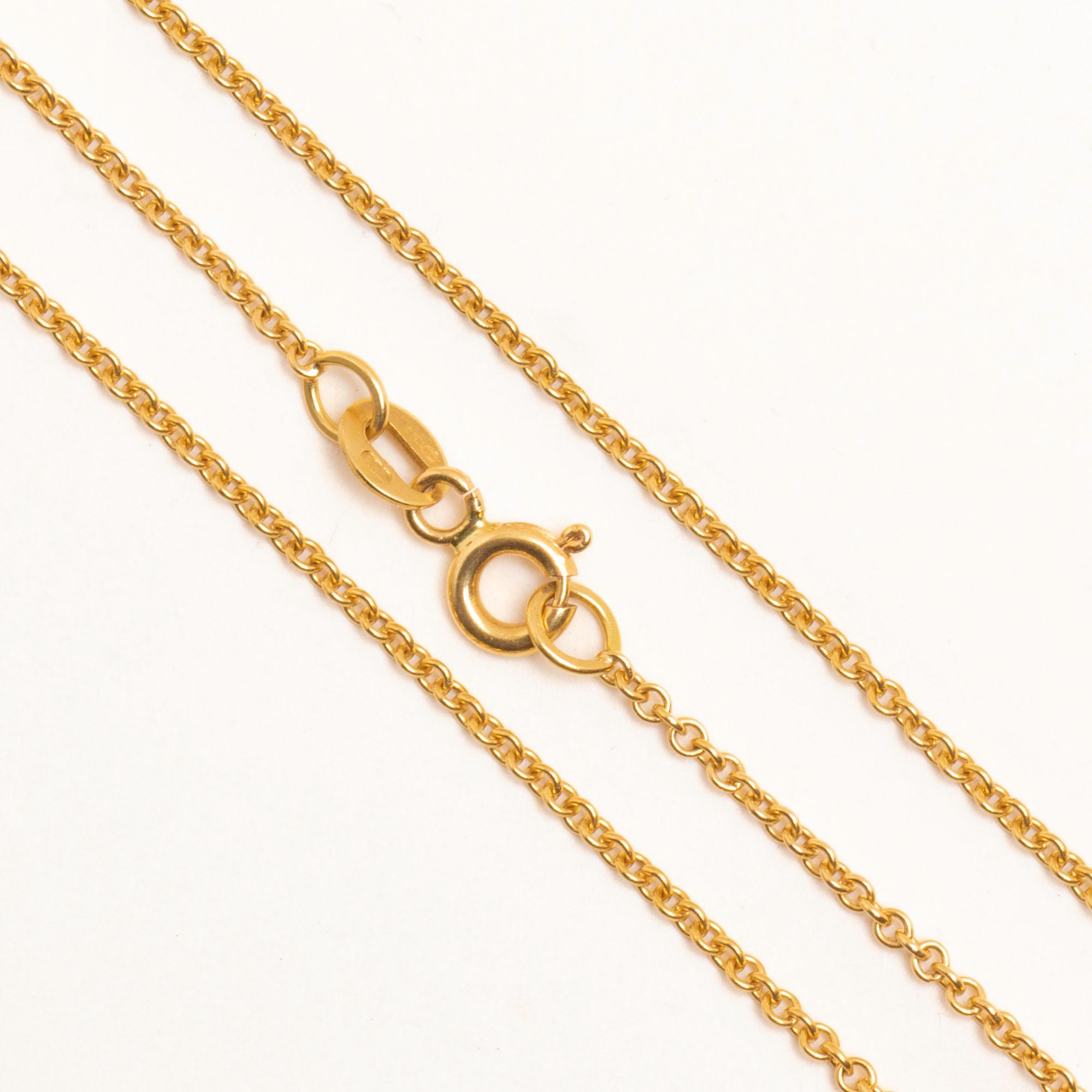 EXCELLENT.  This 18" antique 18ct Gold pendant chain is offered in excellent condition. Each link is firmly connected, glowing with a buttery hue. The later added bolt-ring is in perfect working order so you can wear it confidently, making this chain a perfect addition to any jewellery lover's collection!