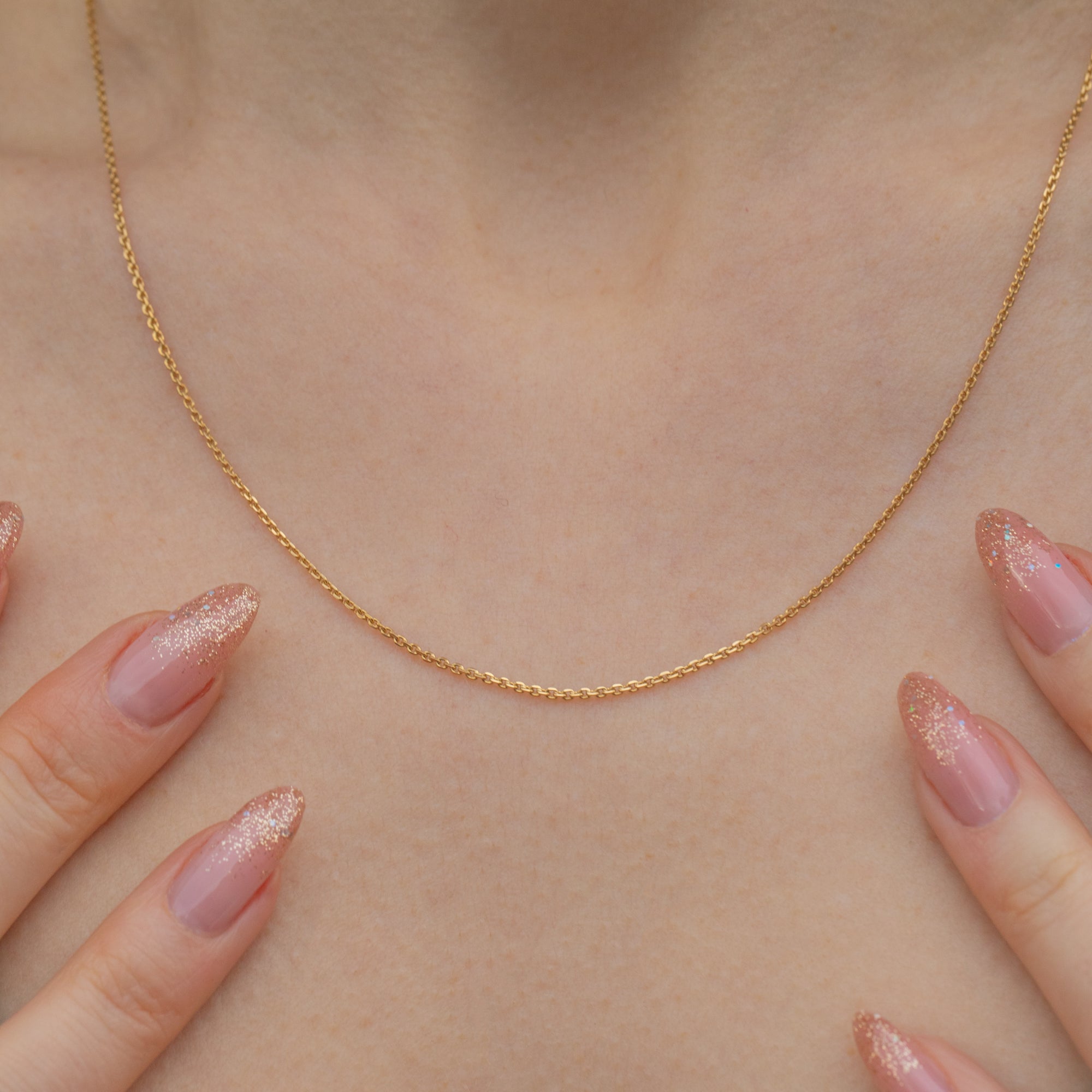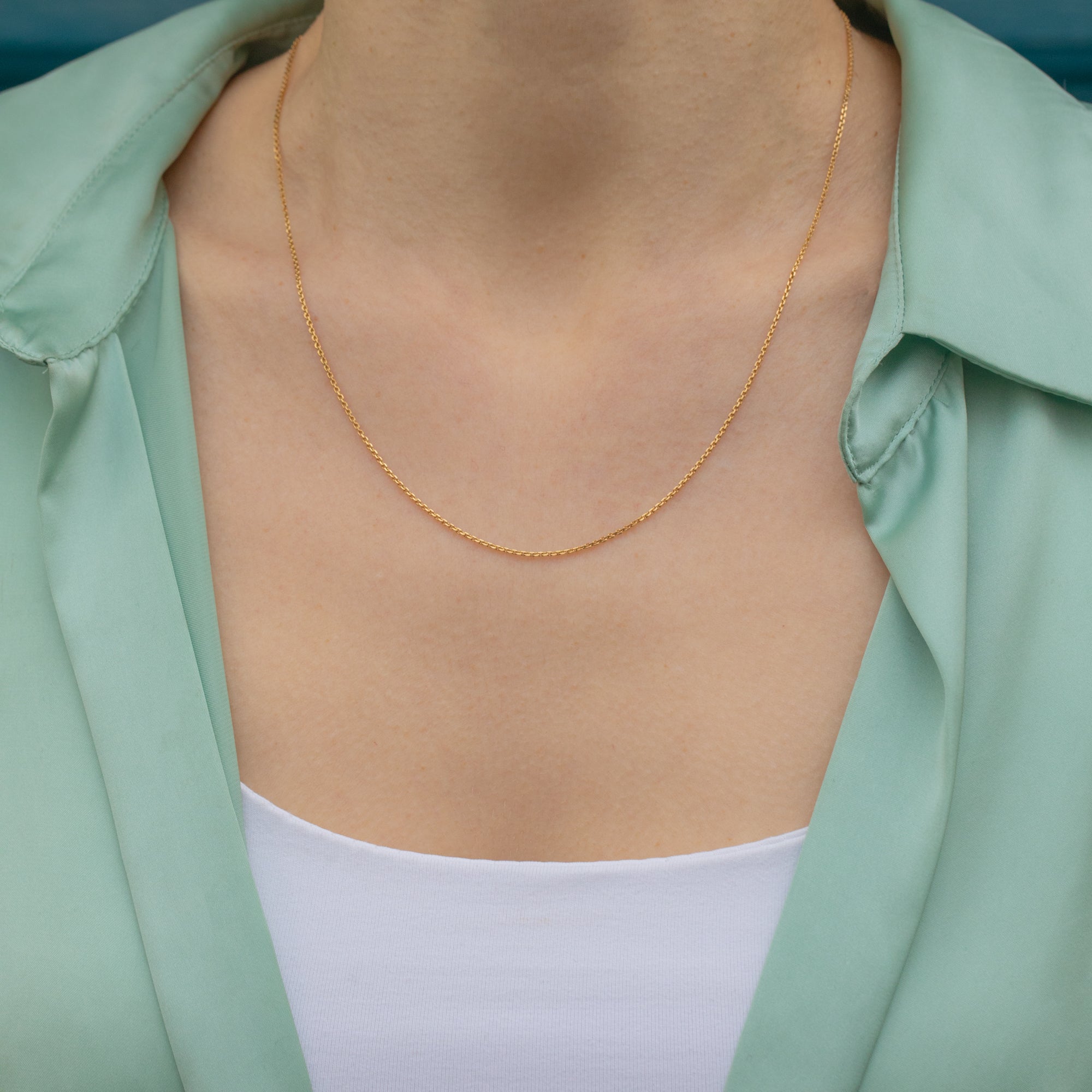 EXCELLENT: This 18ct Gold skinny pendant chain is in excellent condition! Each of the links are securely connected, and the necklace is complete with a bolt ring so you can wear her with confidence. The Gold has a rich intensity and is ideal for everyday wear.