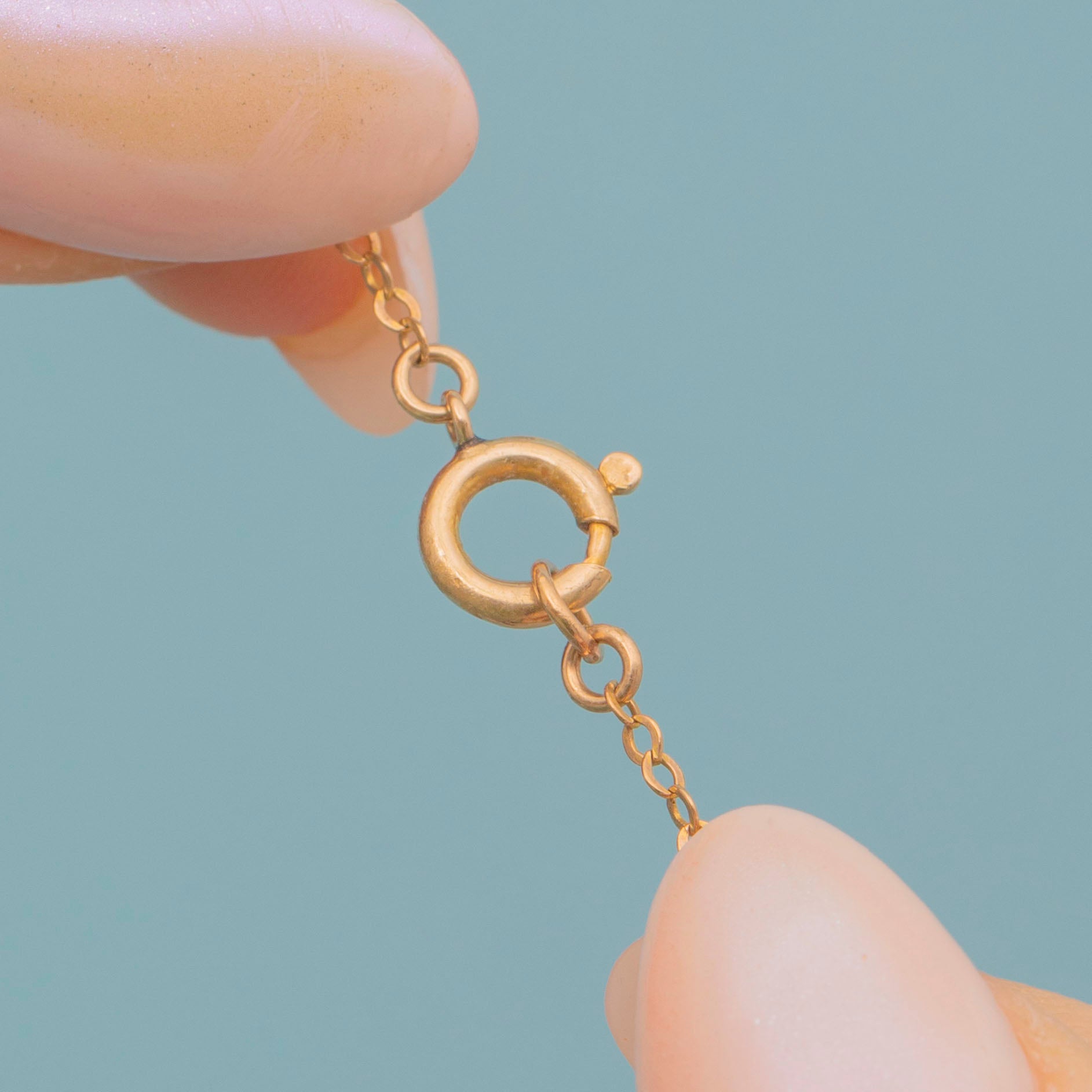 EXCELLENT. This 18" 9ct Gold pendant chain is in excellent condition. There is little to say about this chain; each link is securely connected, the Gold is buttery, and the bolt ring is in perfect working condition. This Victorian pendant chain will make a timeless addition to any collection!