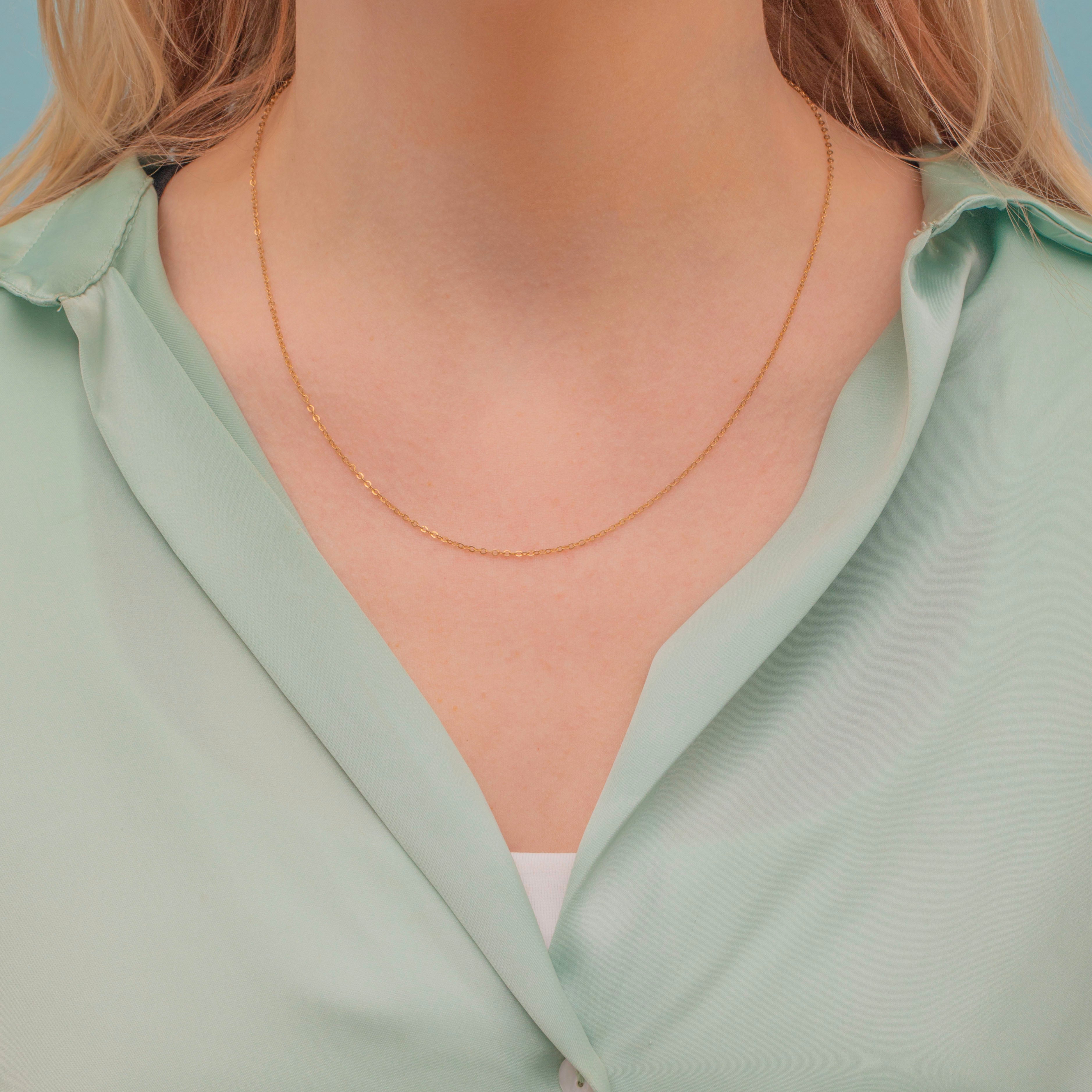 This Victorian Gold chain is a desirable length of 18", draping over your collarbones and complimenting any dainty charm. A piece that easily brings the past into the 21st century.