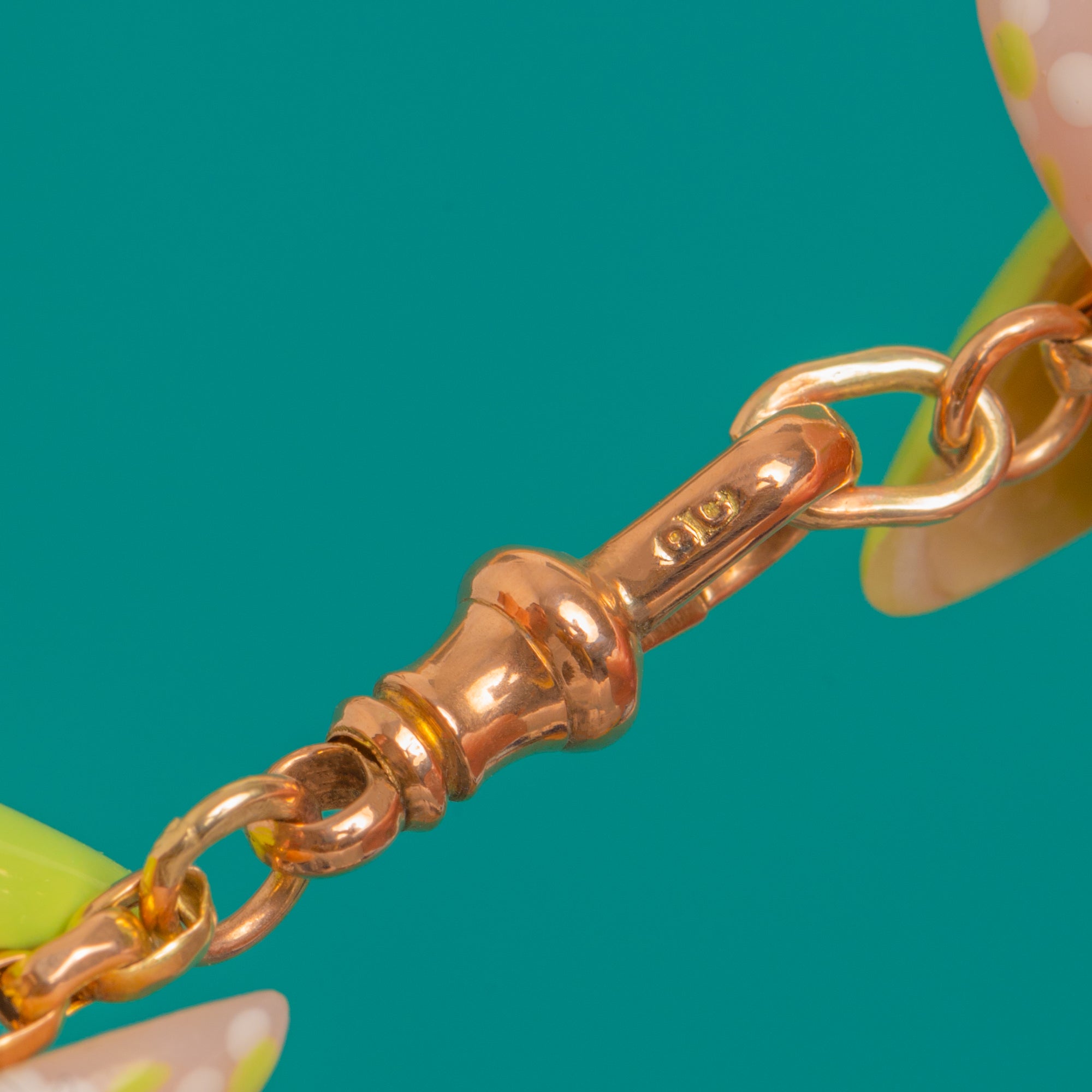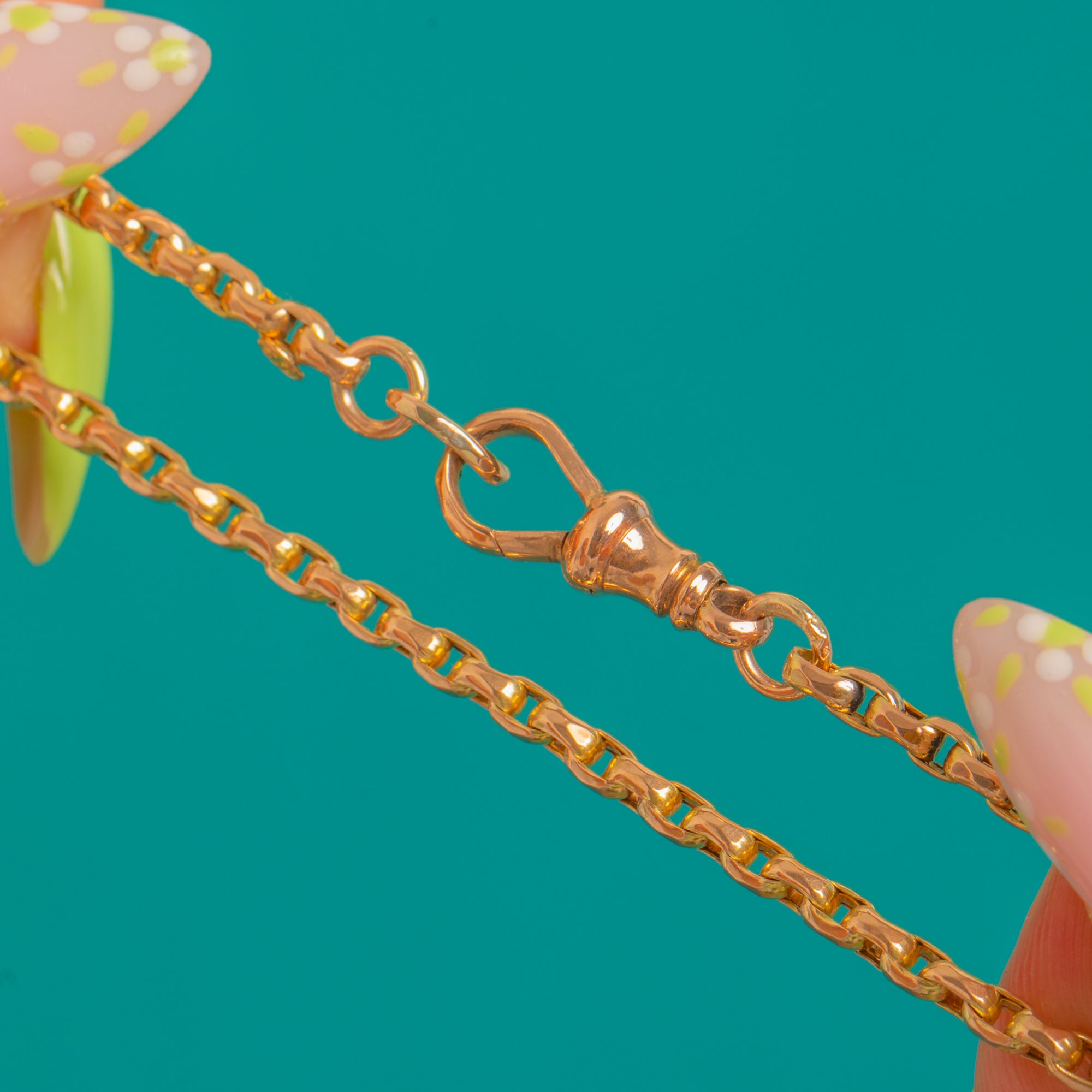 EXCELLENT: The high-polish links show only light surface wear consistent with age and retain a bright, even lustre. The dog clip fastens securely and the chain lies smoothly with no distorted or stretched links. No visible repairs or alterations.