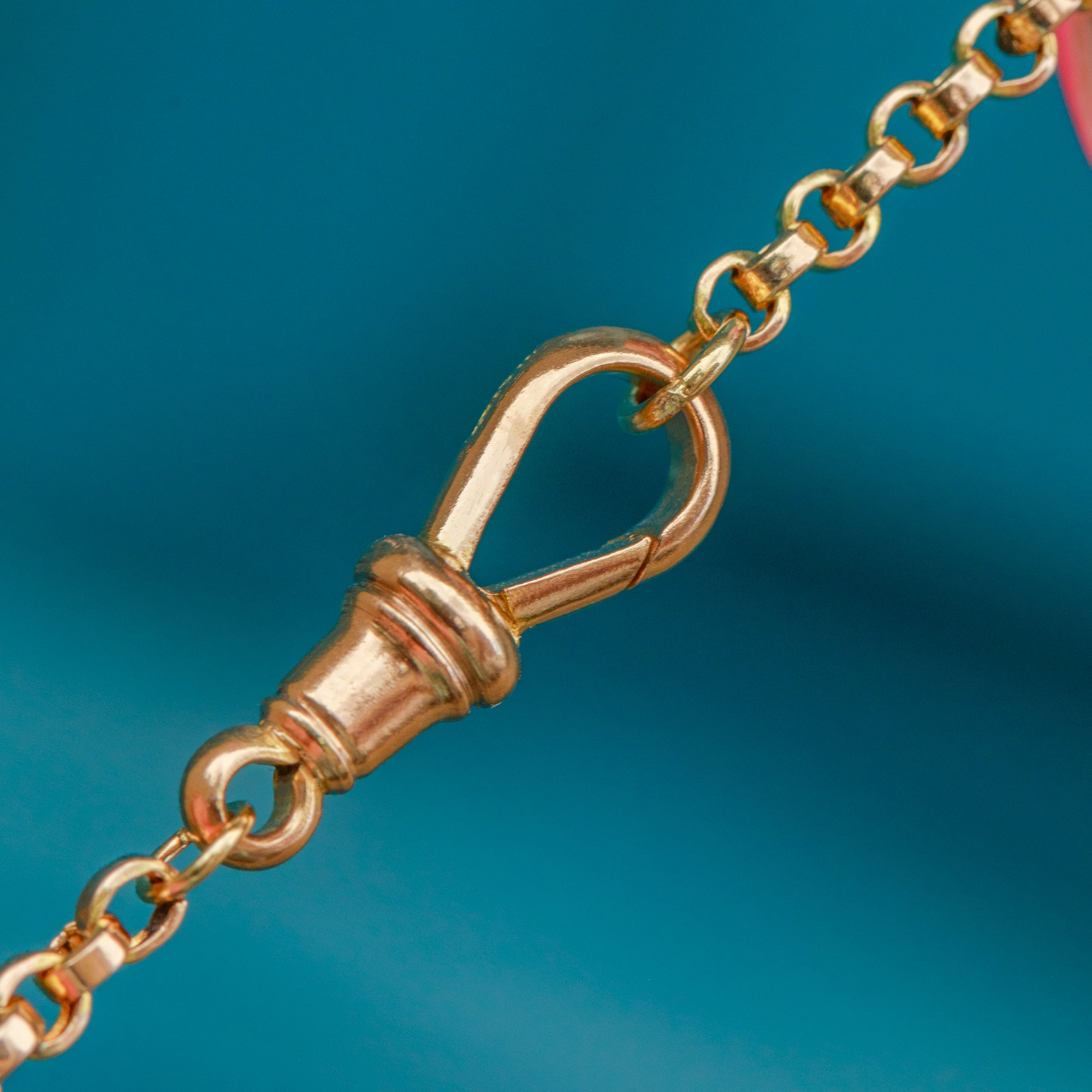 EXCELLENT: This 18" antique 9ct Gold belcher chain is in stellar condition throughout. The links feel strong and sturdy, and the dog clip has excellent spring back, allowing you to wear this versatile Victorian Gold chain with confidence!