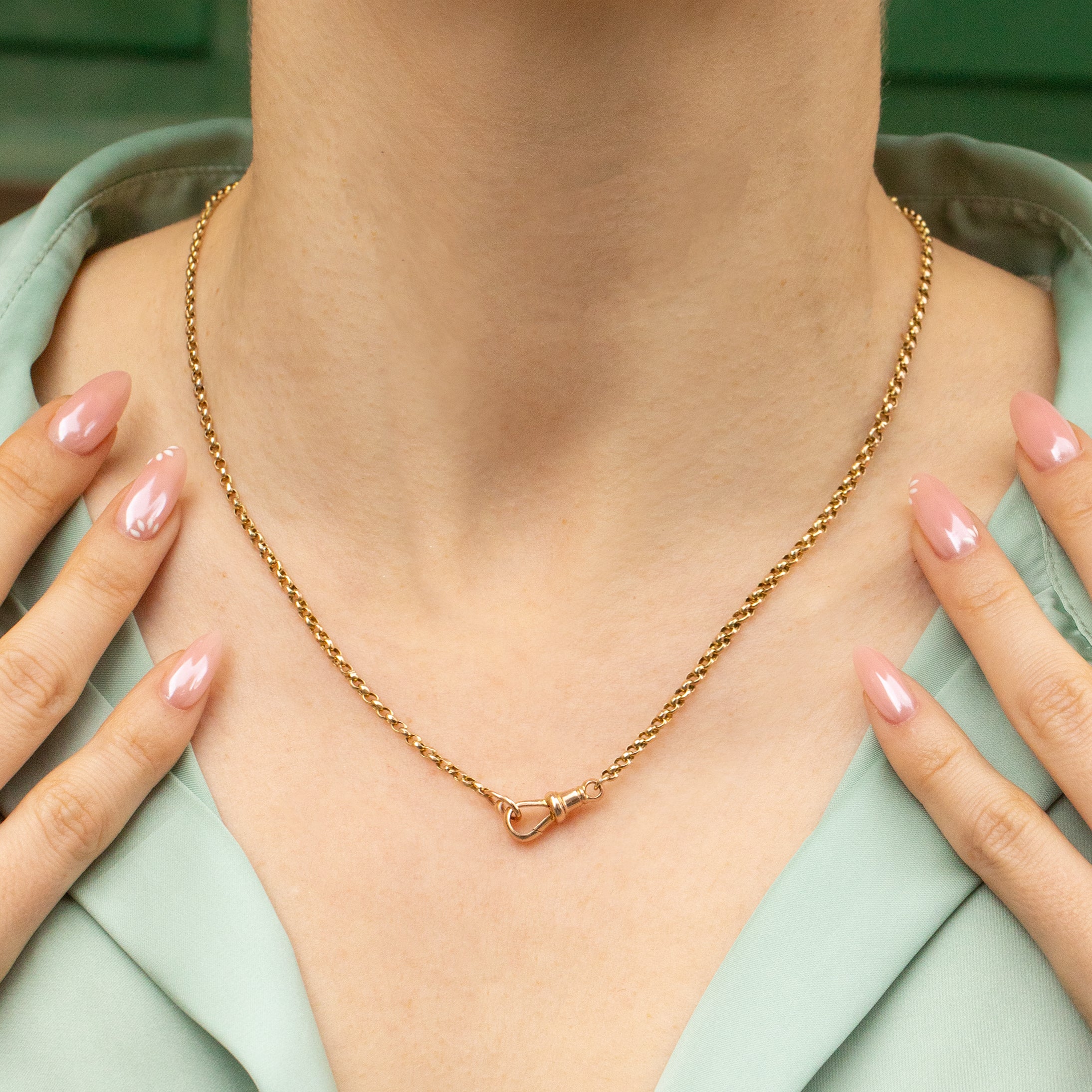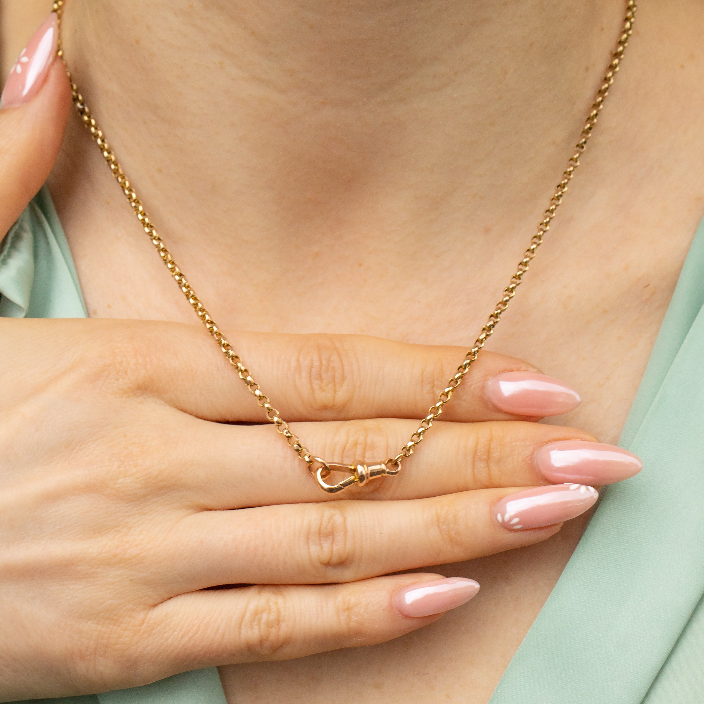 This 18" antique 9ct Gold skinny belcher chain is simply stunning and makes for the perfect staple piece to add to your jewellery collection! Measuring 18”, she will sit elegantly just below your collarbones; with her delicate chain links and stunning lustrous shine, she can be worn with any outfit.