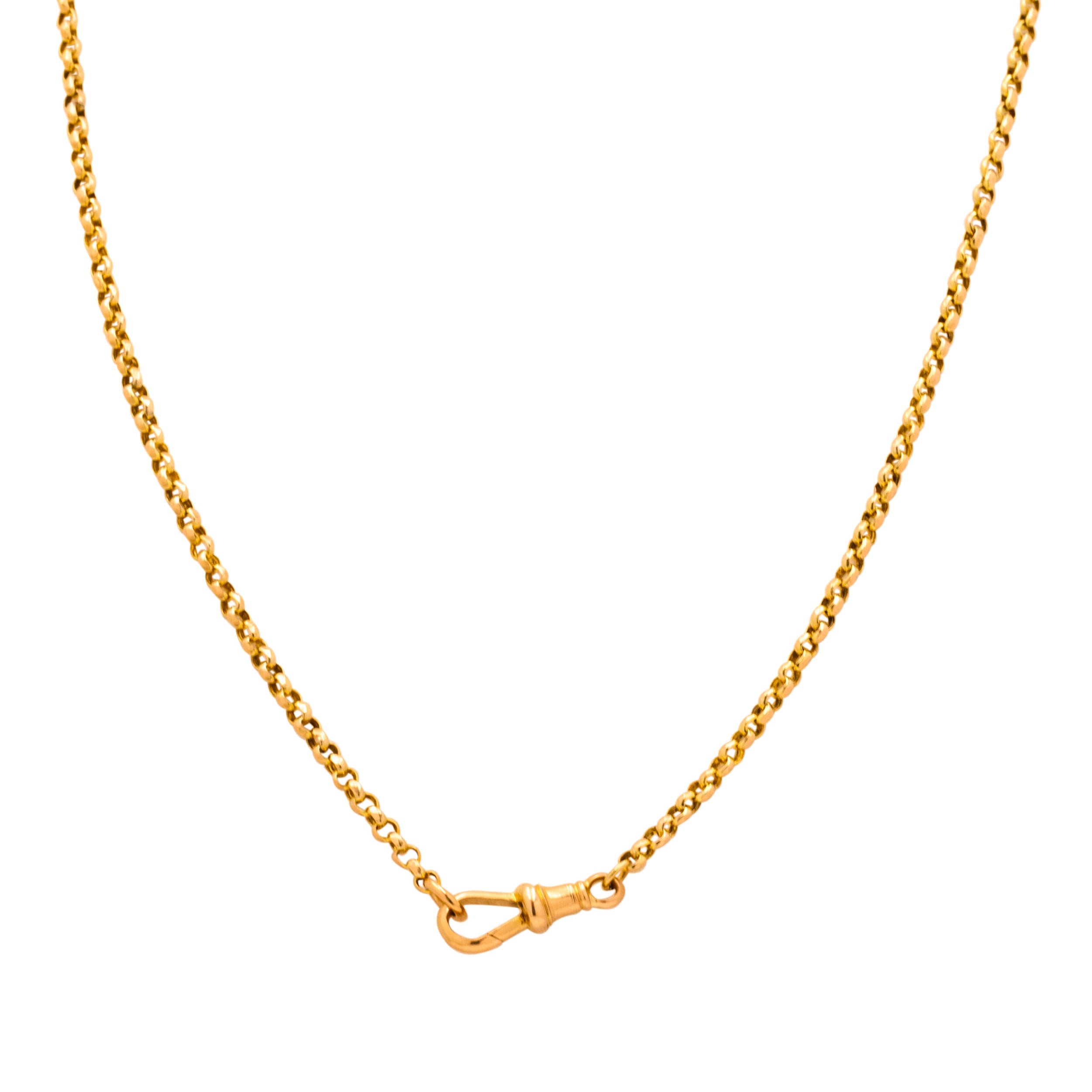 18" Antique 9ct Gold Skinny Belcher Chain, with Dog-clip (5.8g)