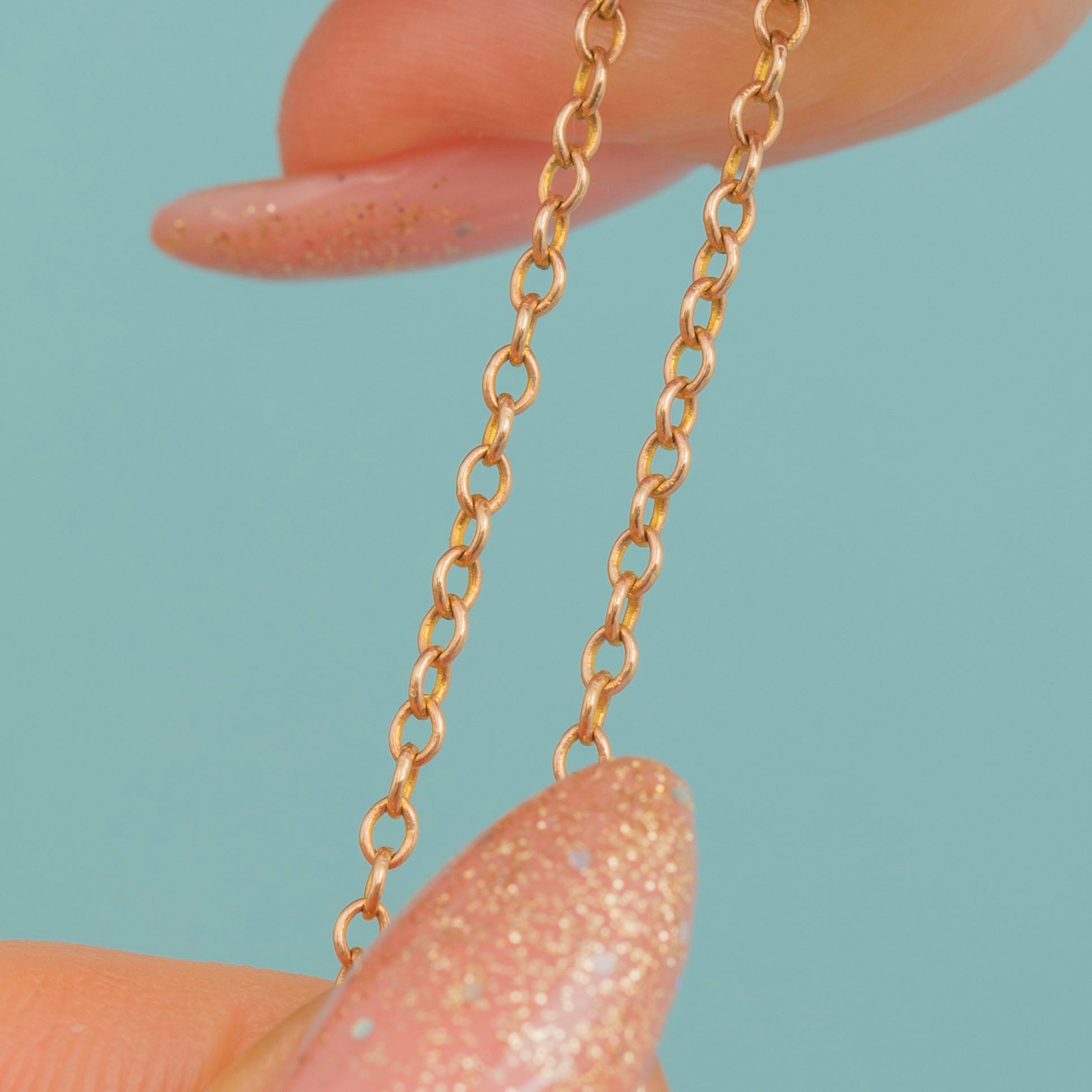This 18" antique 9ct Gold skinny pendant chain is wonderfully versatile piece to add to your antique collection. You can never go wrong with having a fine pendant chain in your collection - she the perfect way to enjoy a little decadence every day.