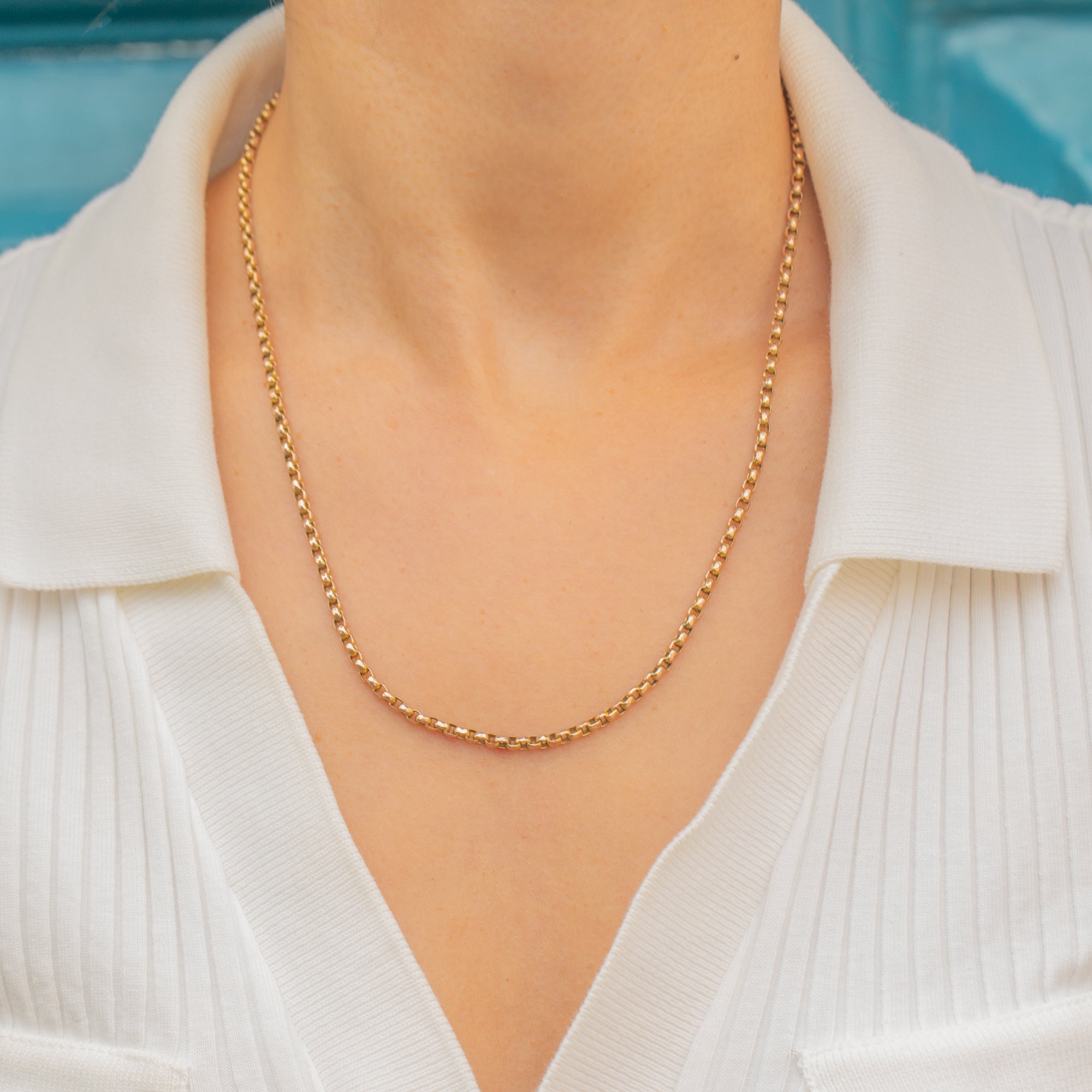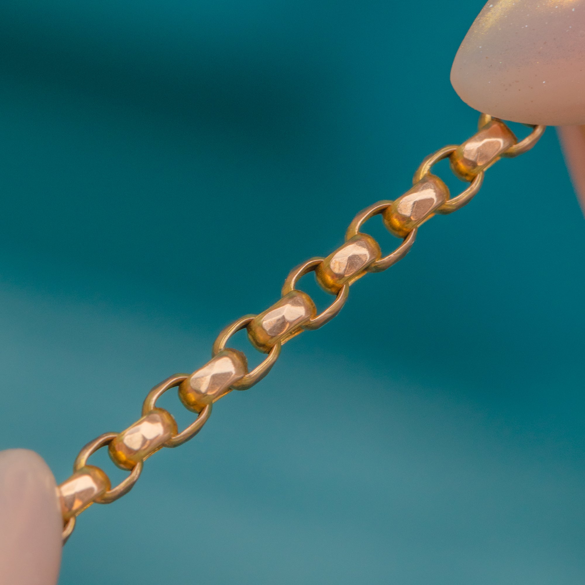 A fine Antique 9ct Gold Belcher chain from the Victorian era, complete with its original dog-clip fastening. This classic chain has a wonderful weight and presence, its rounded links beautifully crafted in rich, buttery Gold.