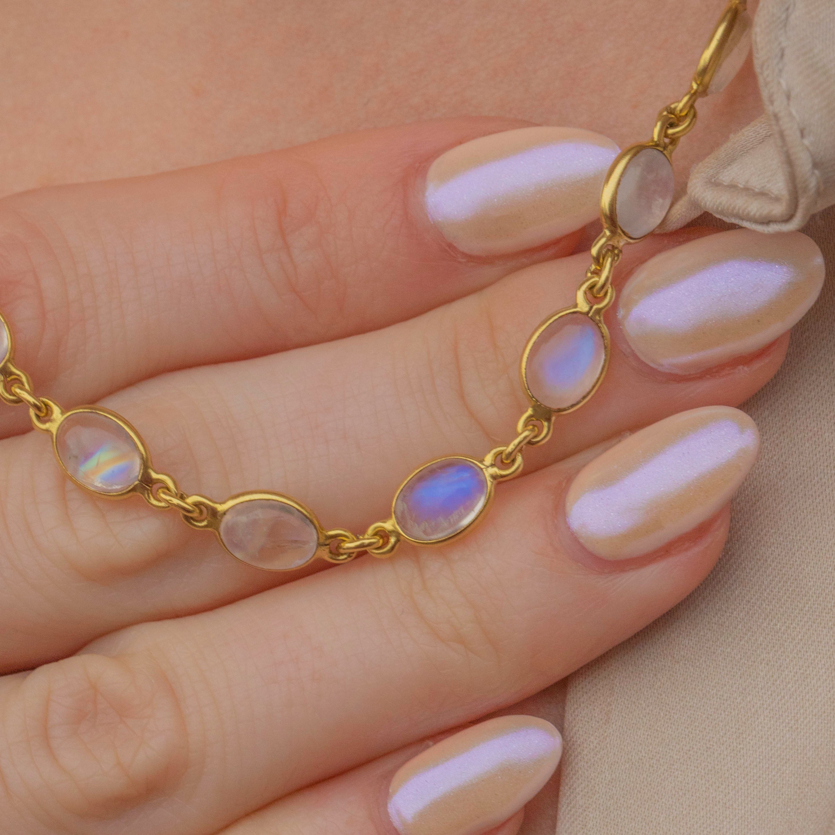 The 18-inch length will elegantly drape across your collarbones, sending blue and green adularescence cascading across your decolletagé as the smooth-cut Labradorite cabochons catch the light. A superb piece of mid-century jewellery, this necklace will instantly add vintage charm to your outfit!
