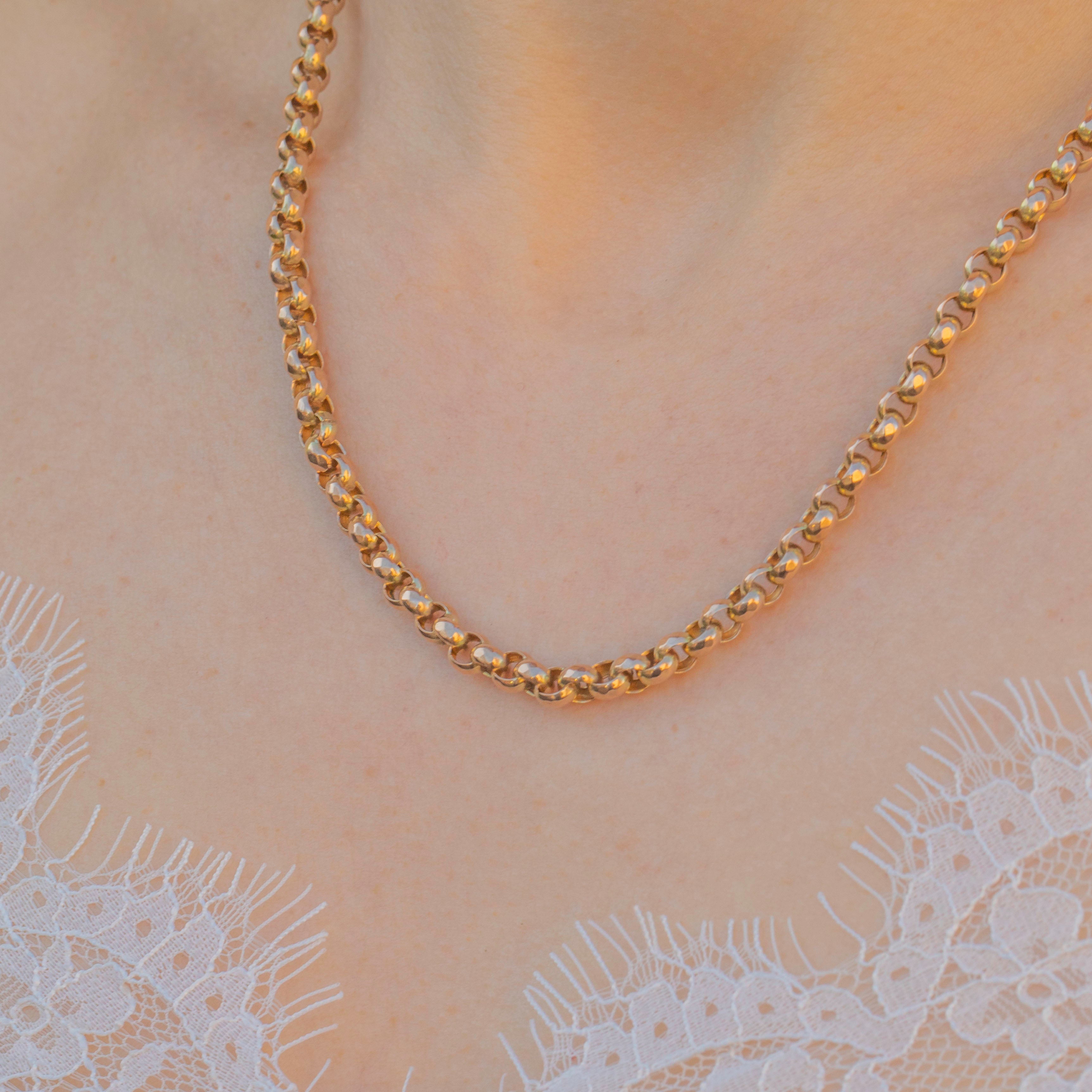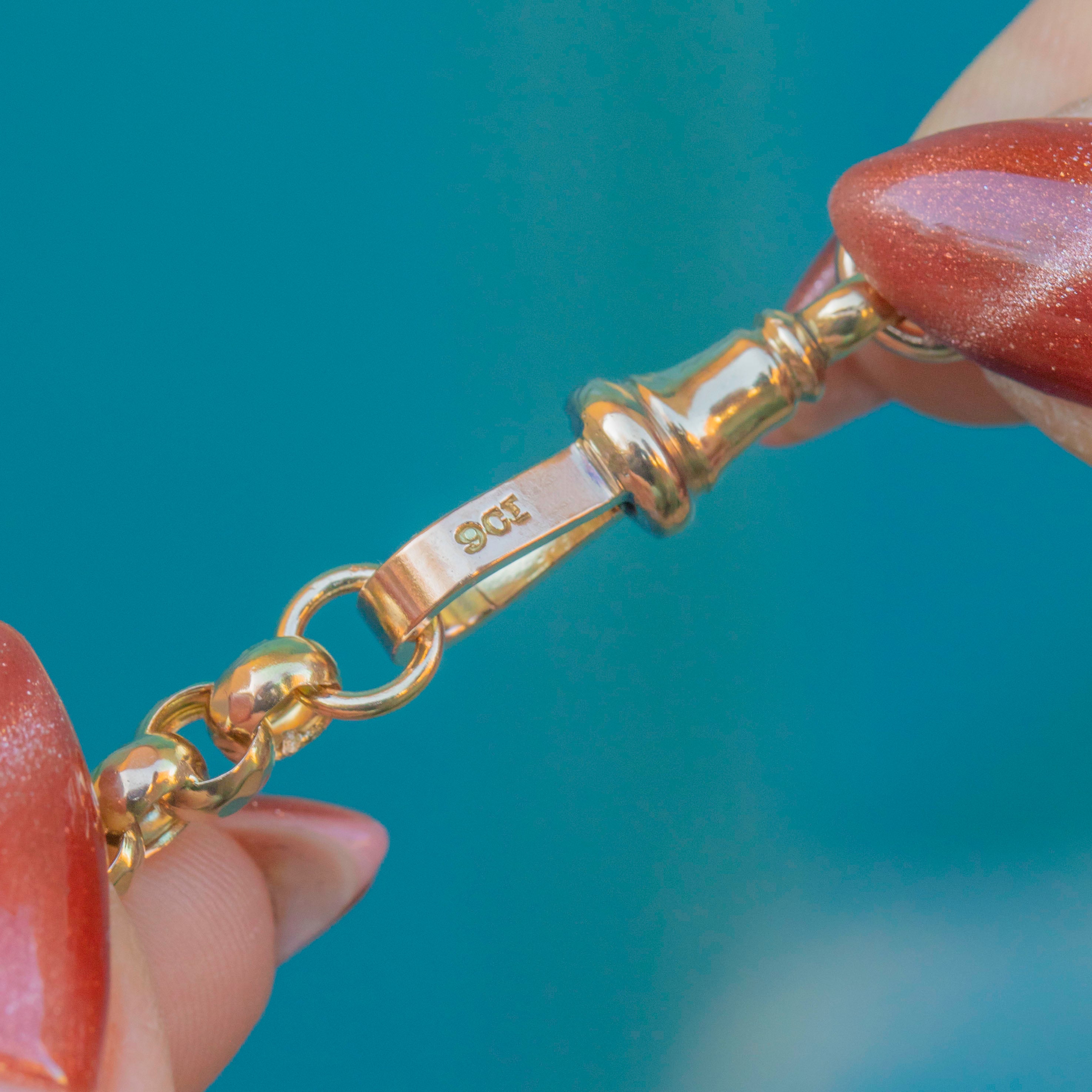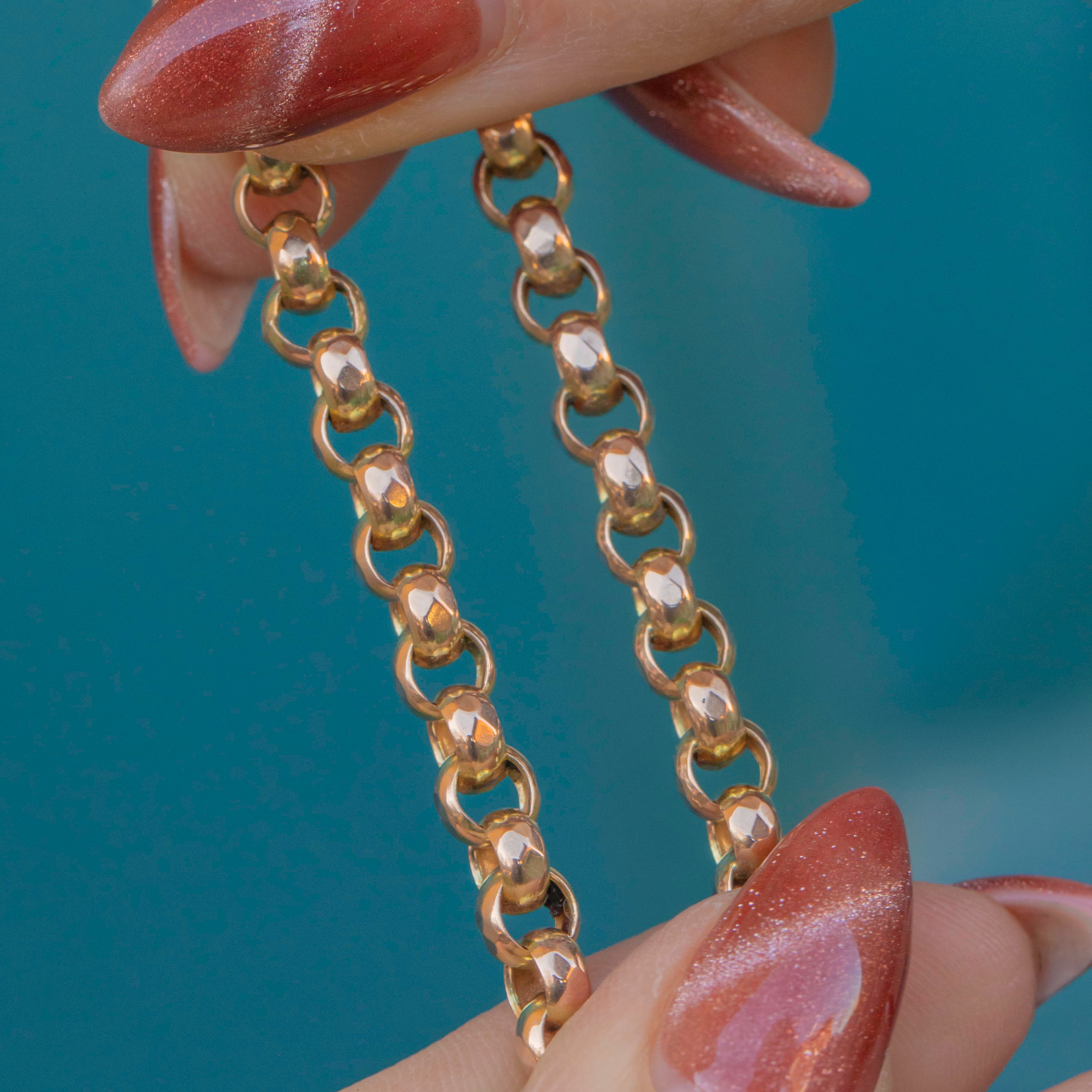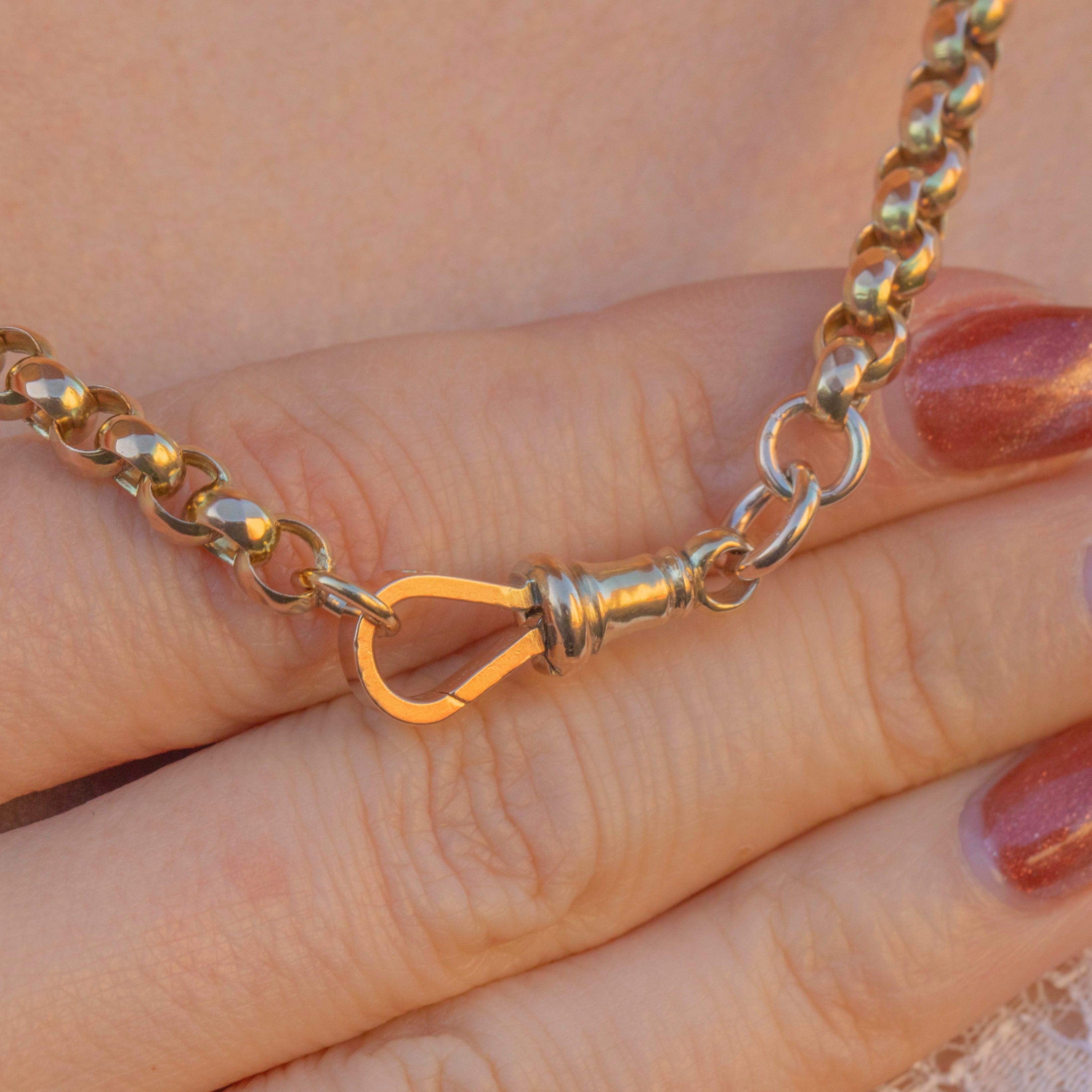 Crafted from over 21 grams of solid Gold, this Victorian belcher chain has a lovely weight, giving it an opulent feel. Complete with an authentic antique dog-clip, to which you could add a charm for a personal touch, this is a coveted piece of Victorian jewellery that will be cherished for generations to come!