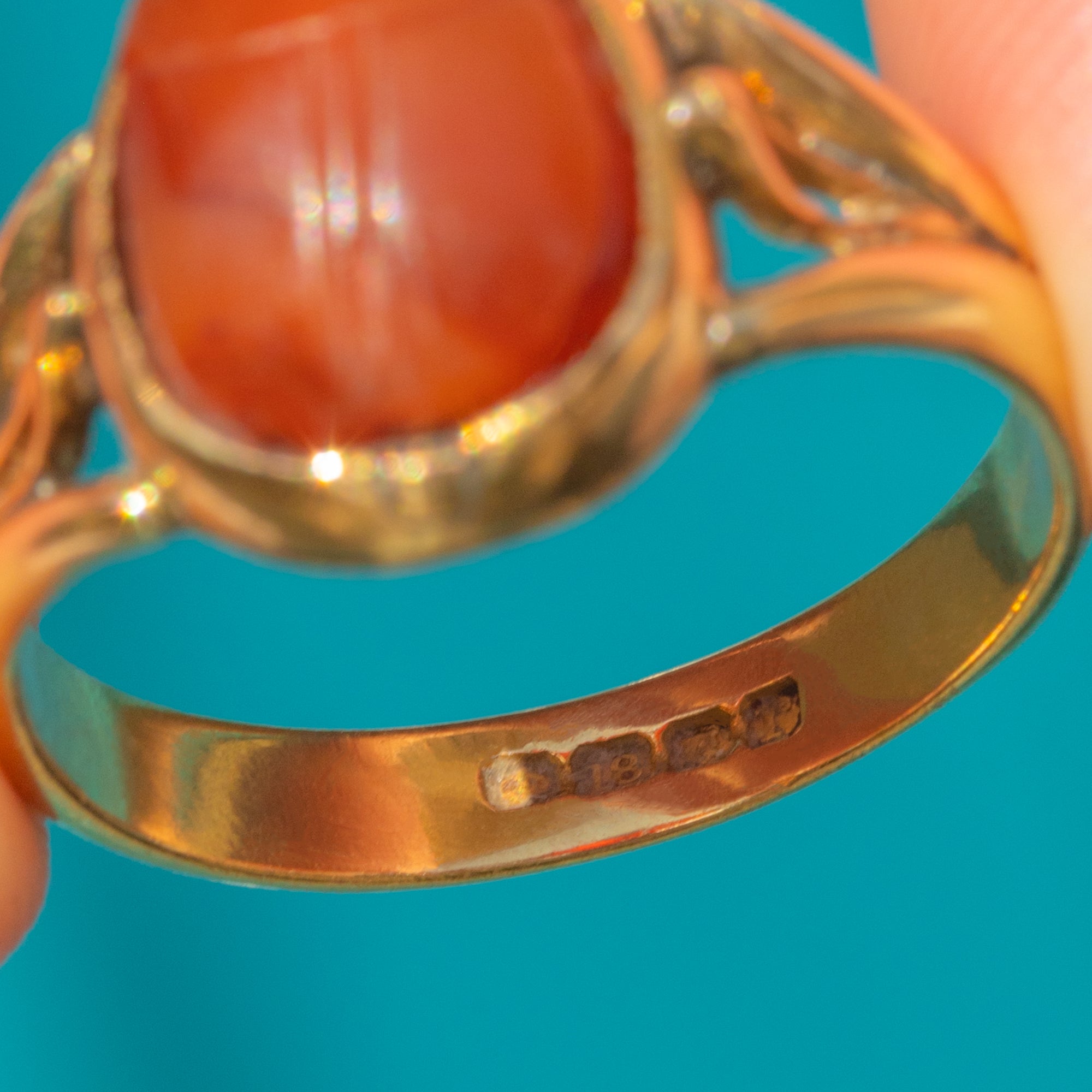 18ct Gold Archaelogical Revival Agate Scarab Ring