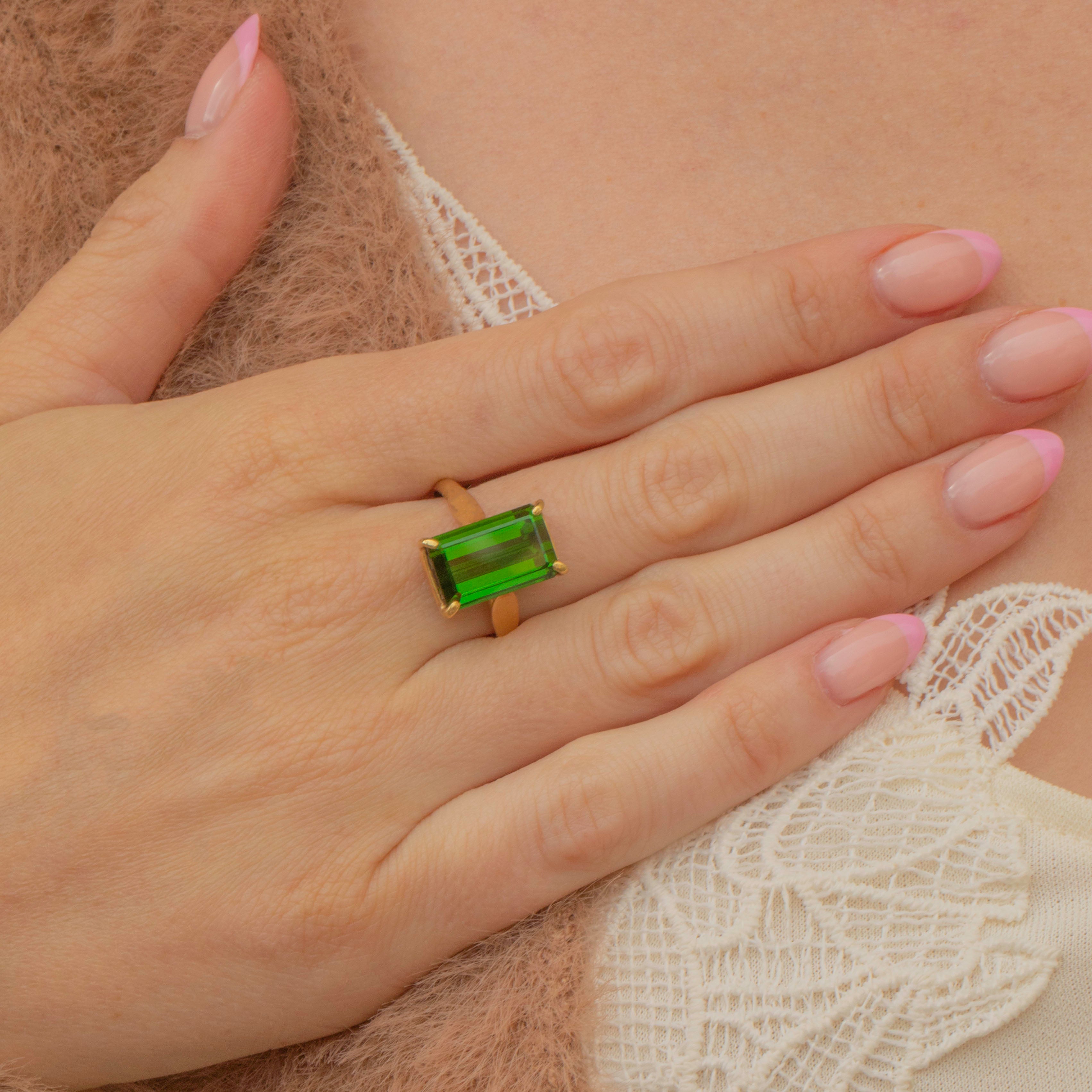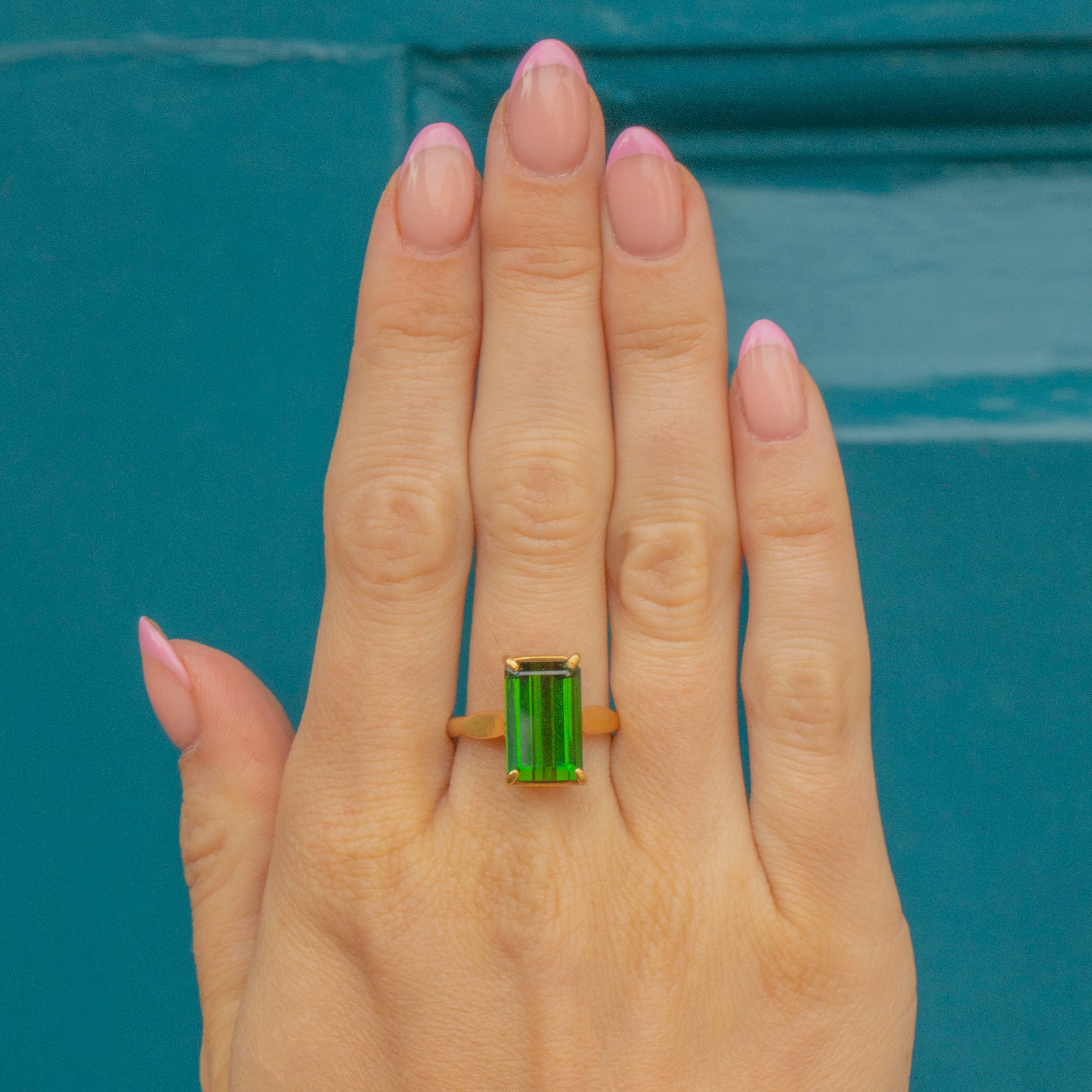 EXCELLENT. This 18ct Gold chrome green Tourmaline ring is in perfect condition. The gemstone is scratch free and held tightly in her high carat Gold! Not only that but she is an incredible colour and she is waiting to be worn!