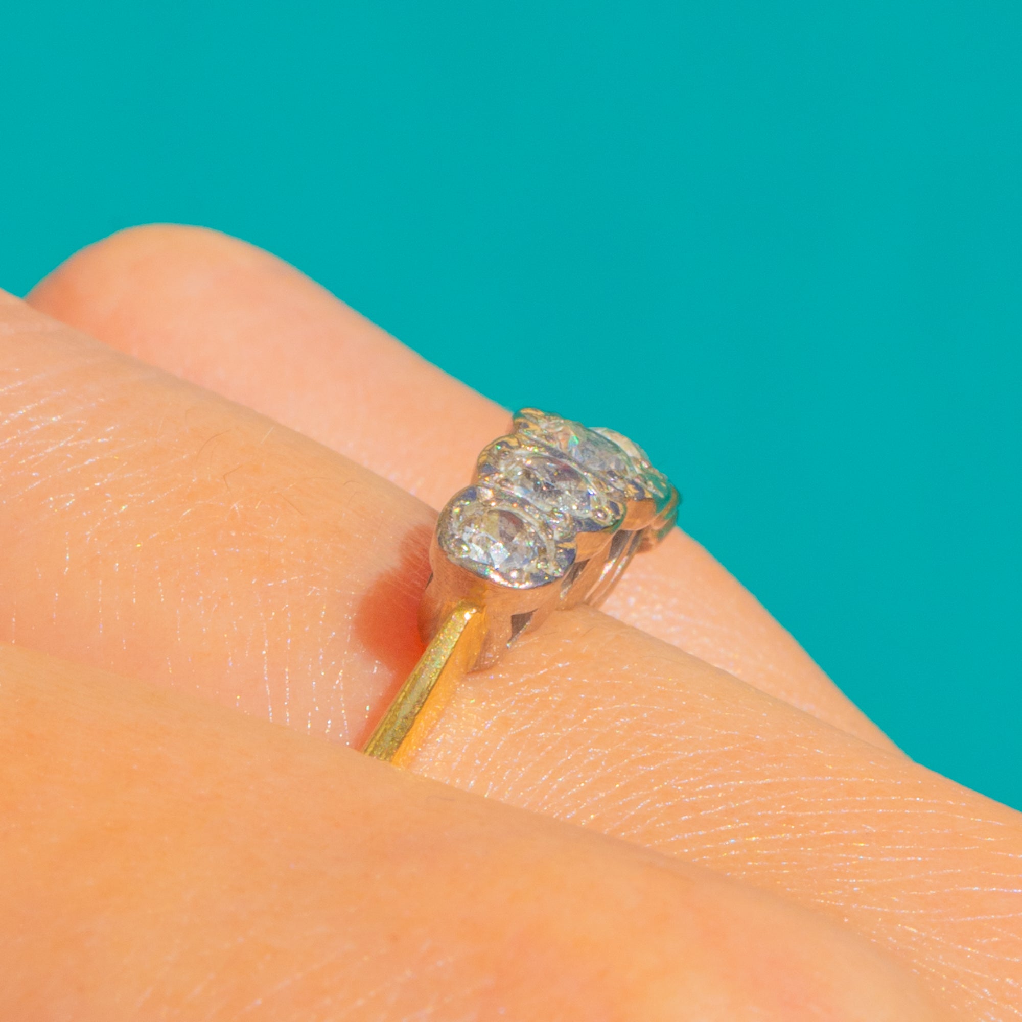 3 x Diamonds measure approx. 3mm in diameter, weighing approx 0.30ct combined.