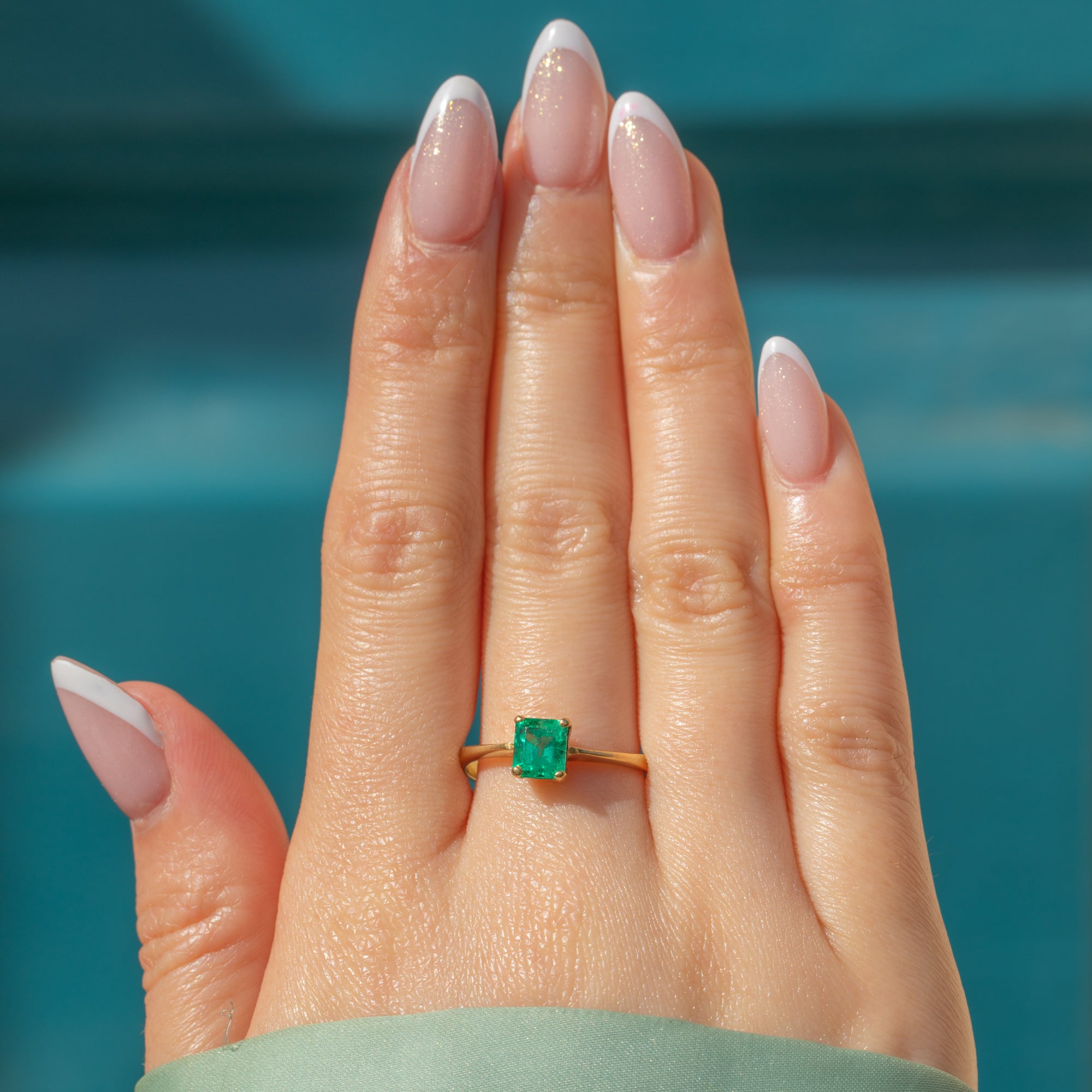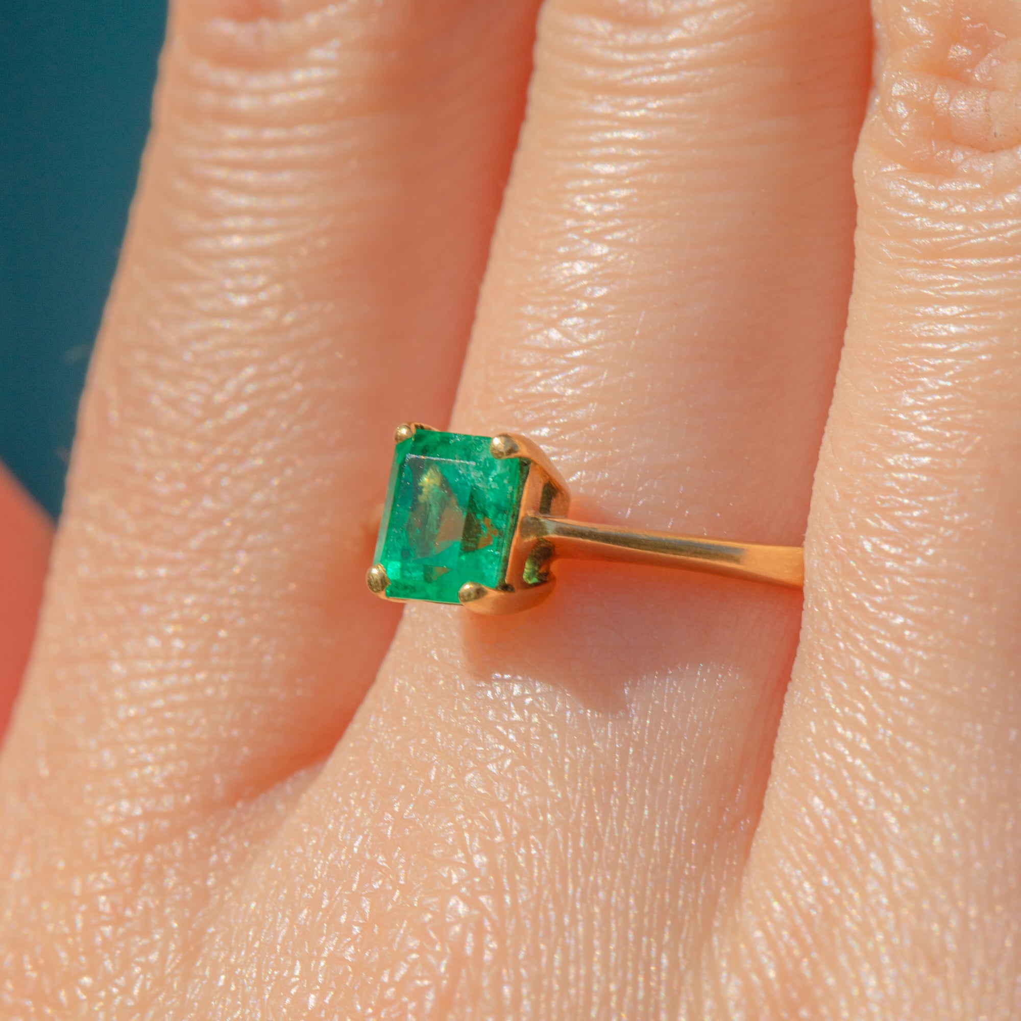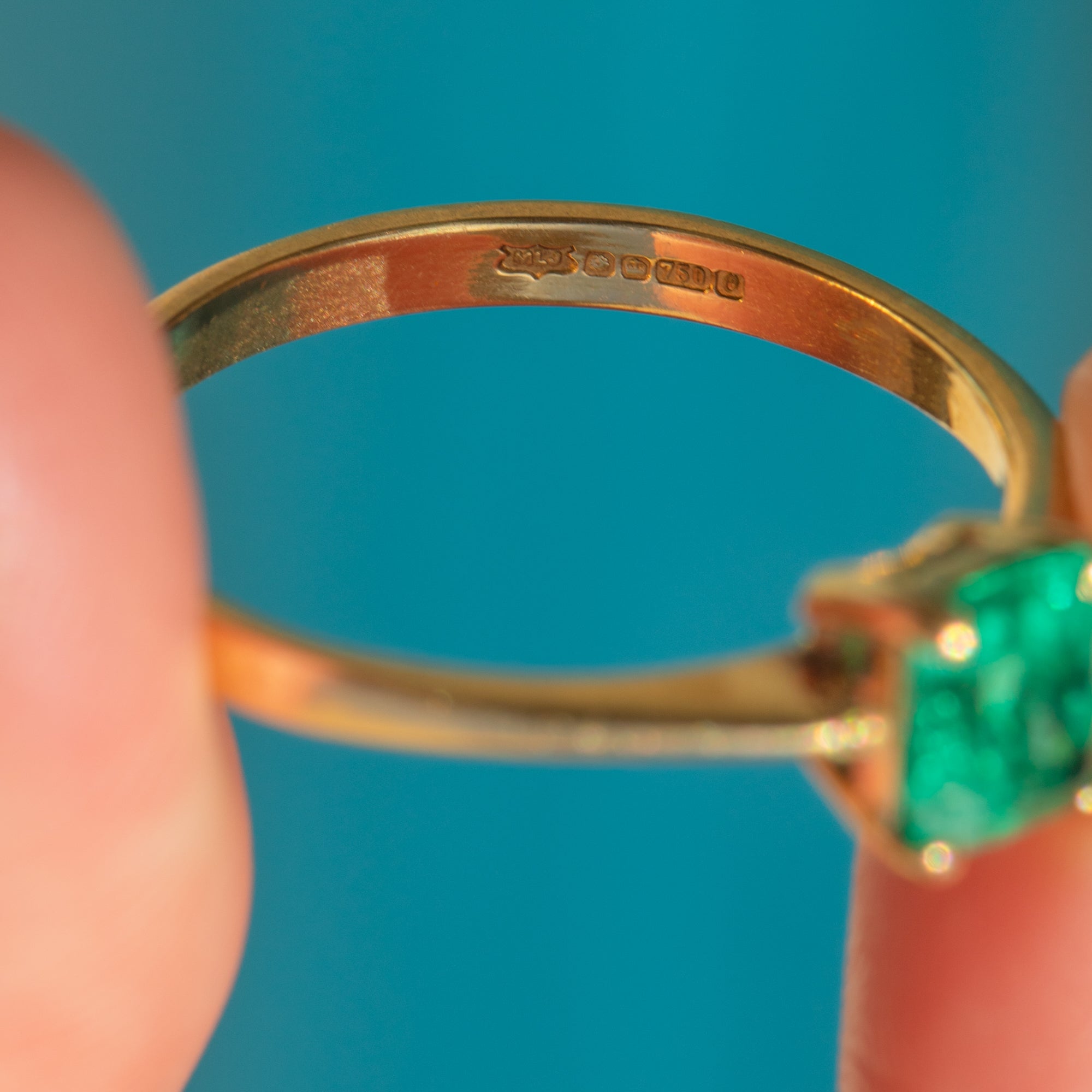 This elegant 18ct Gold Emerald solitaire ring is a classic example of the striking craftsmanship of the modern vintage era, and would make the most wonderful choice for a unique engagement ring!