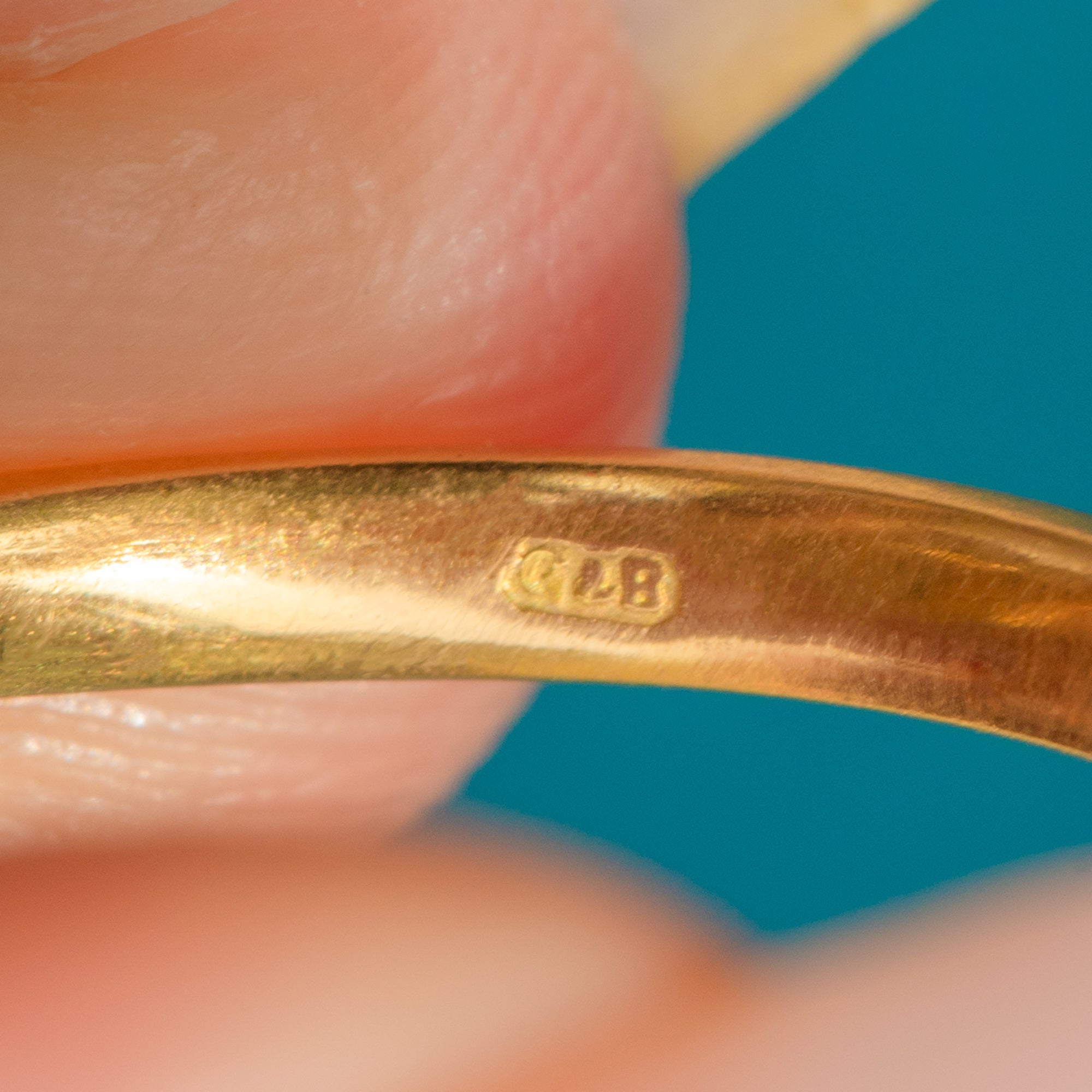 MATERIALS: Tests as 18ct Yellow Gold, Platinum settings, Diamond (0.65ct).