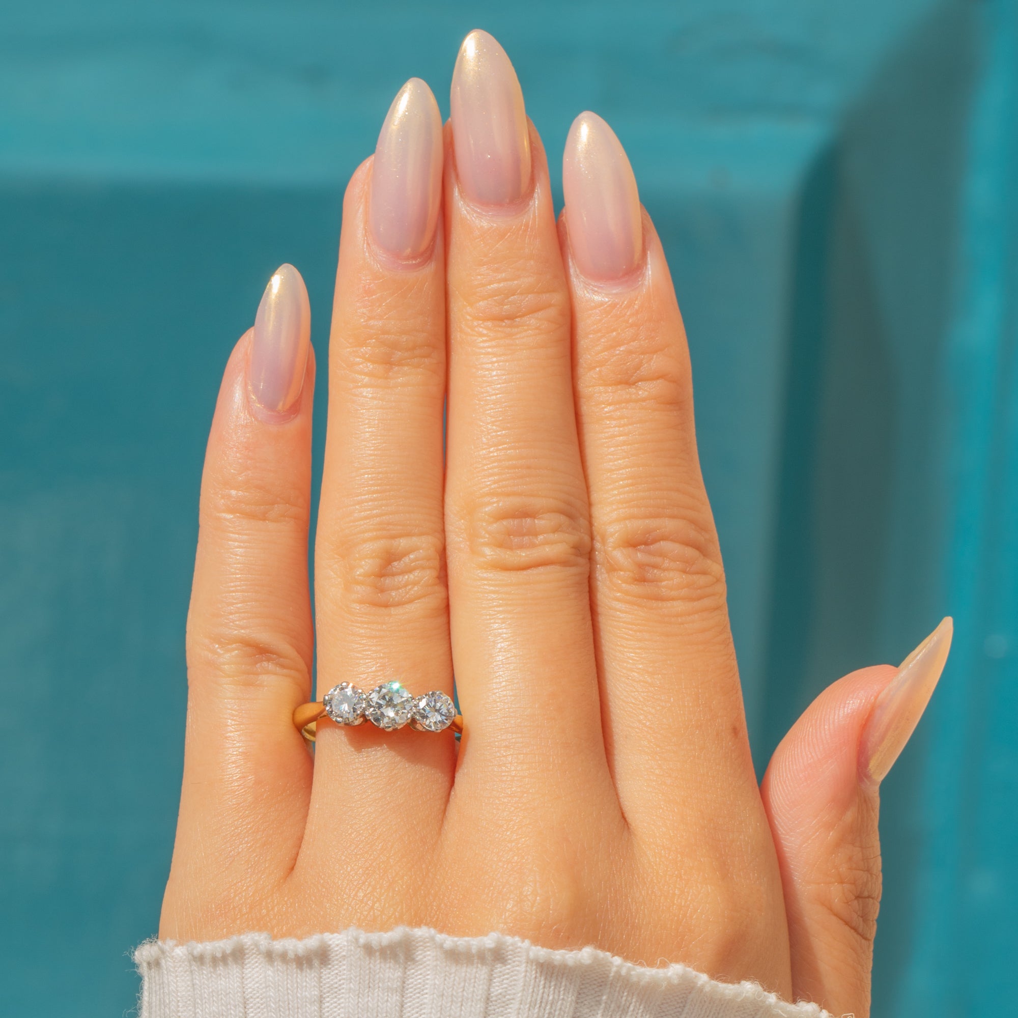 18ct Gold & Platinum Art Deco Diamond Trilogy Ring, 0.65ct