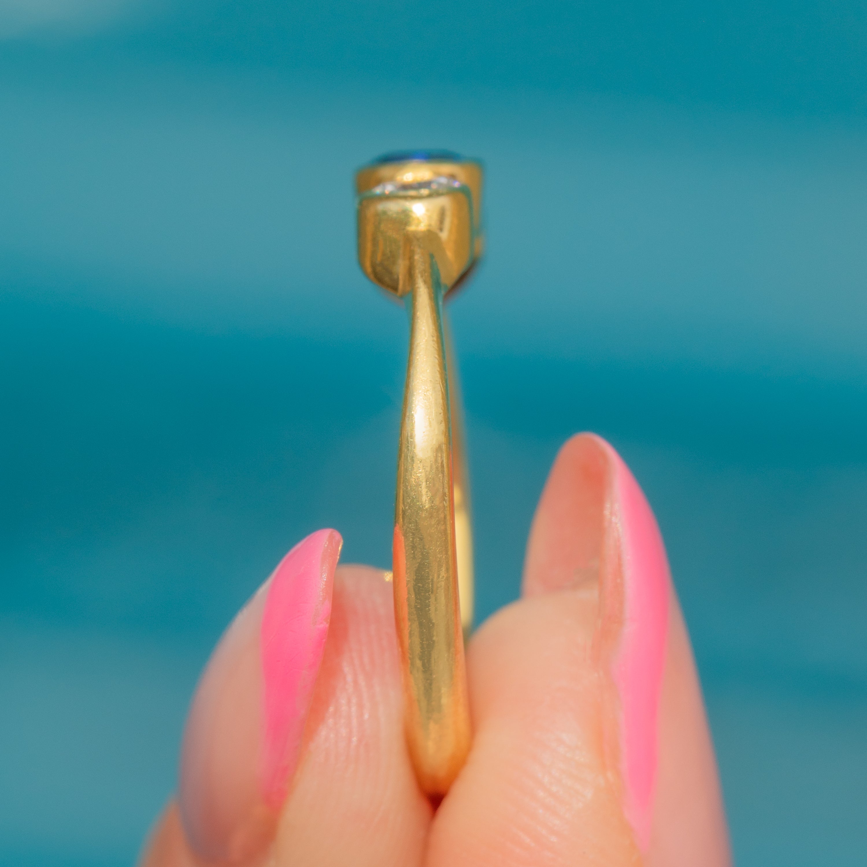 MATERIALS: 18ct Gold, Sapphire (0.15ct), Diamonds (0.15ct).