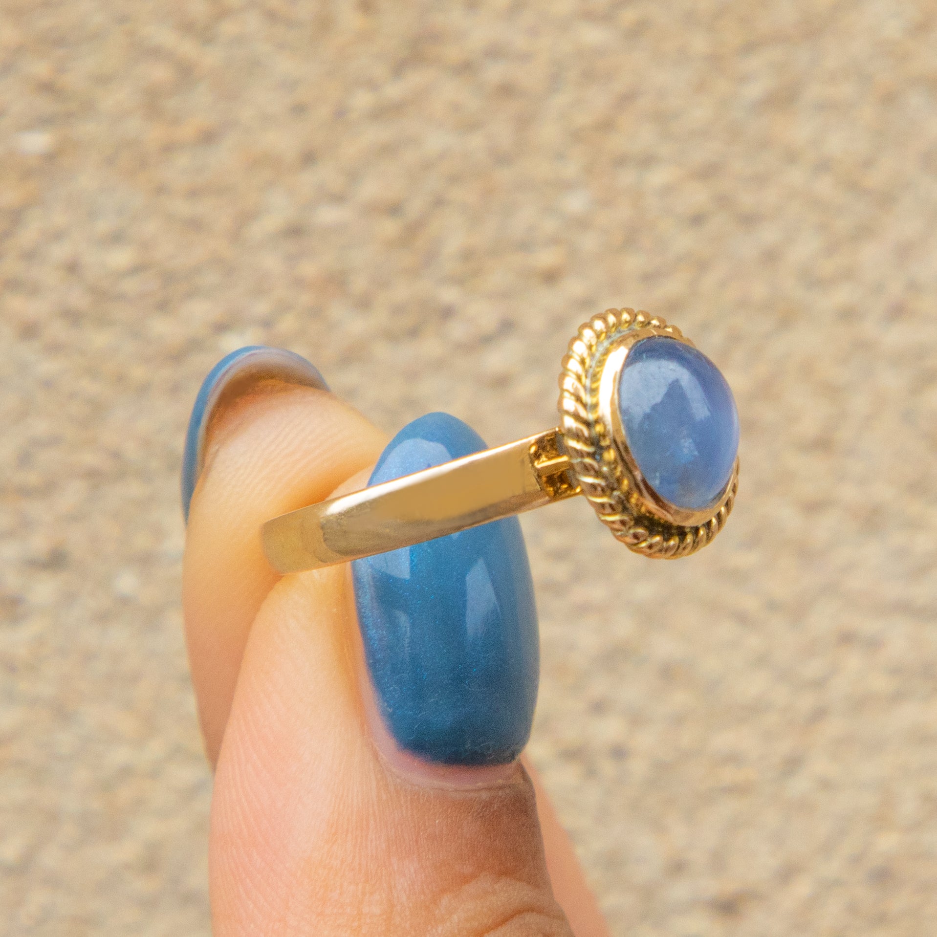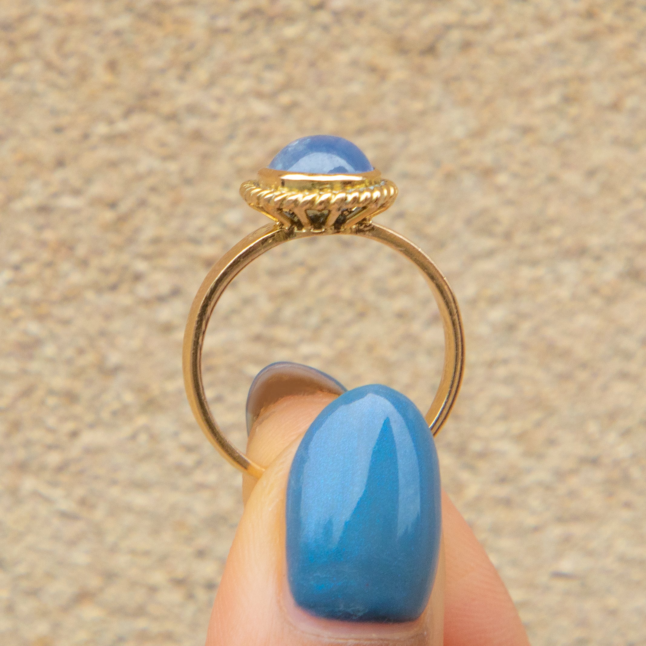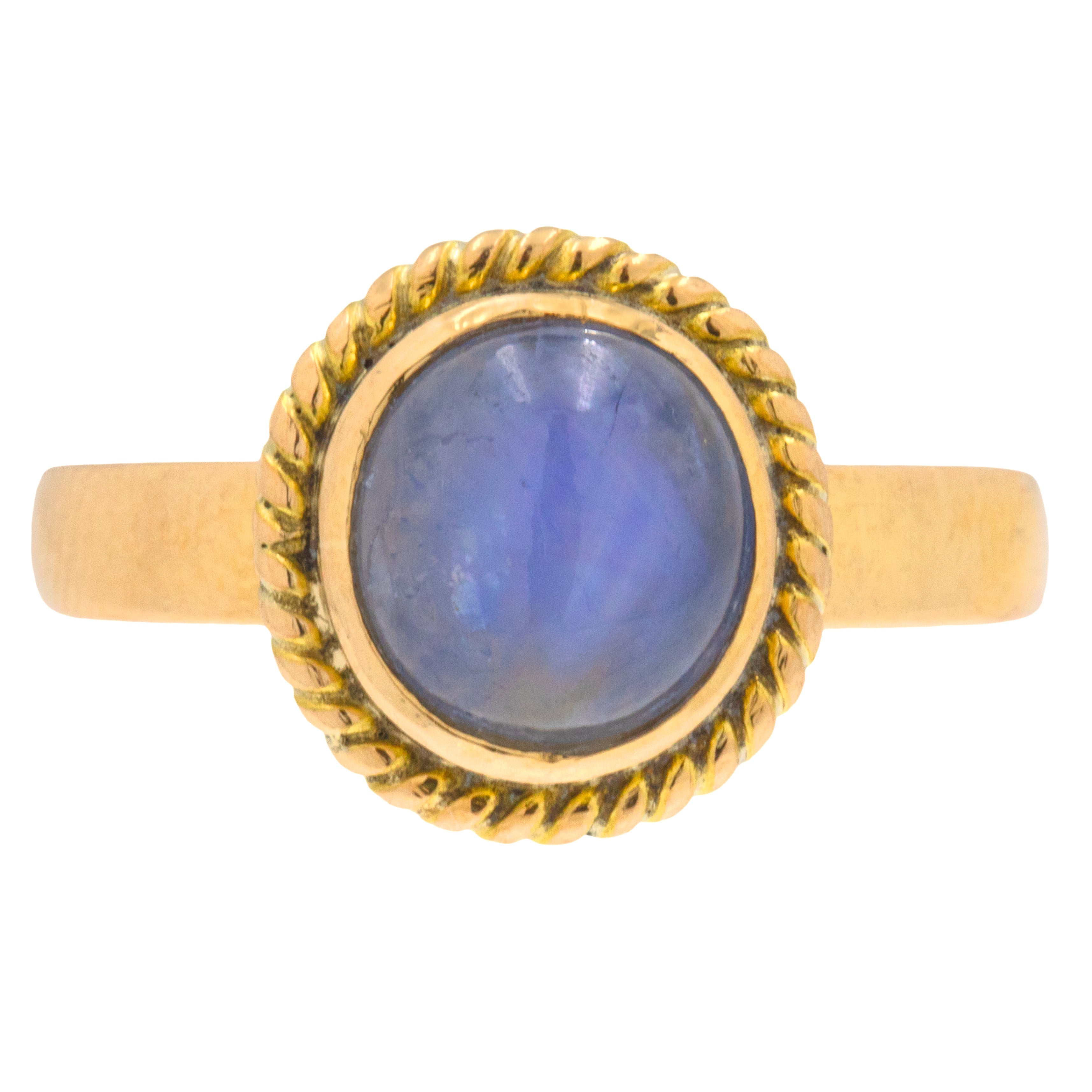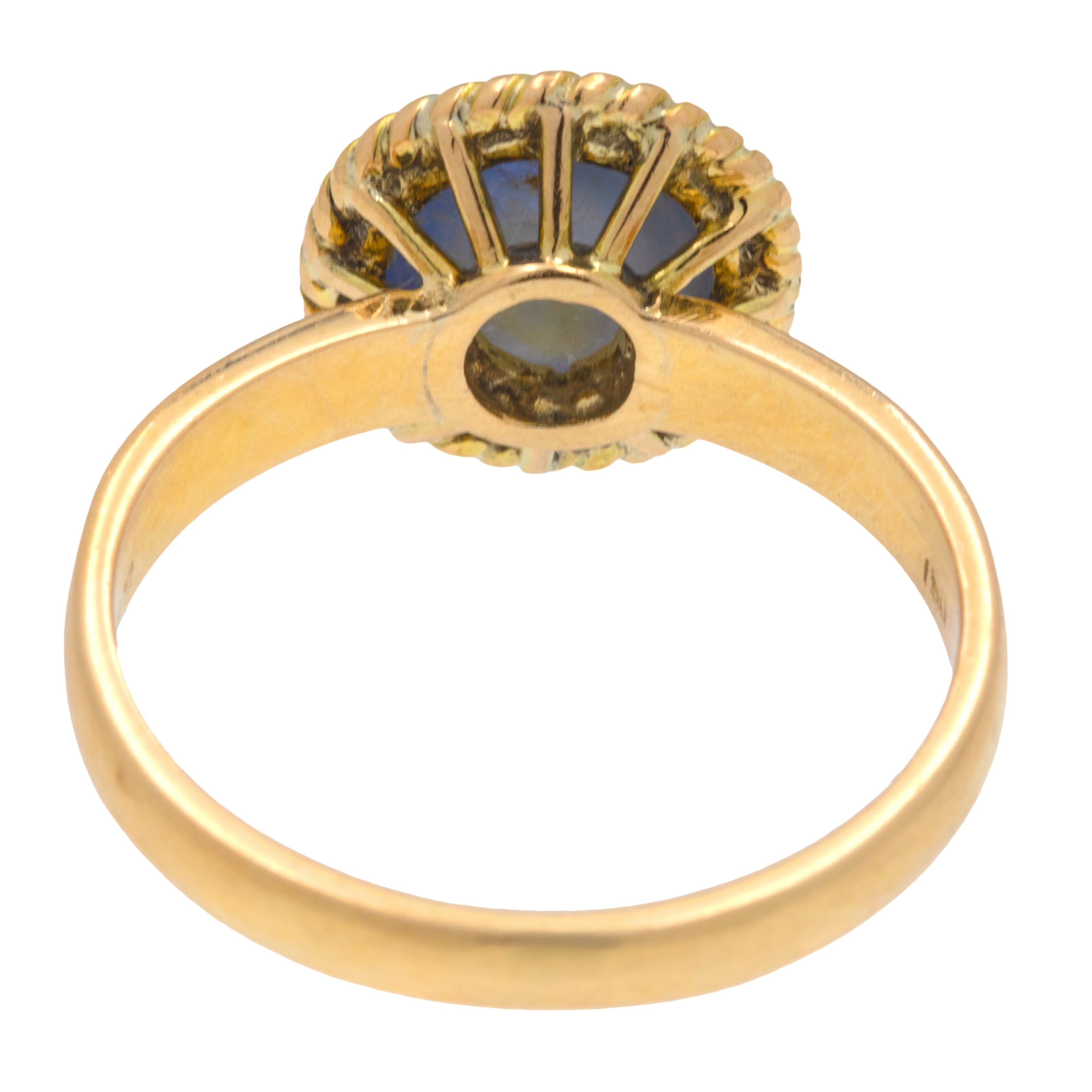 VERY GOOD TO EXCELLENT. This 18ct Gold Star Sapphire ring is in fabulous condition. The Star Sapphire is smoothly domed and securely held within its bezel setting. There is a minor nibble on the Sapphire, but this is barely noticeable and can easily forgiven when considering her grand age. The 18ct Gold is saturated and smooth throughout and the rope detailing has remained crisp and securely soldered. With proper care, this vintage Sapphire ring can be cherished for generations to come!