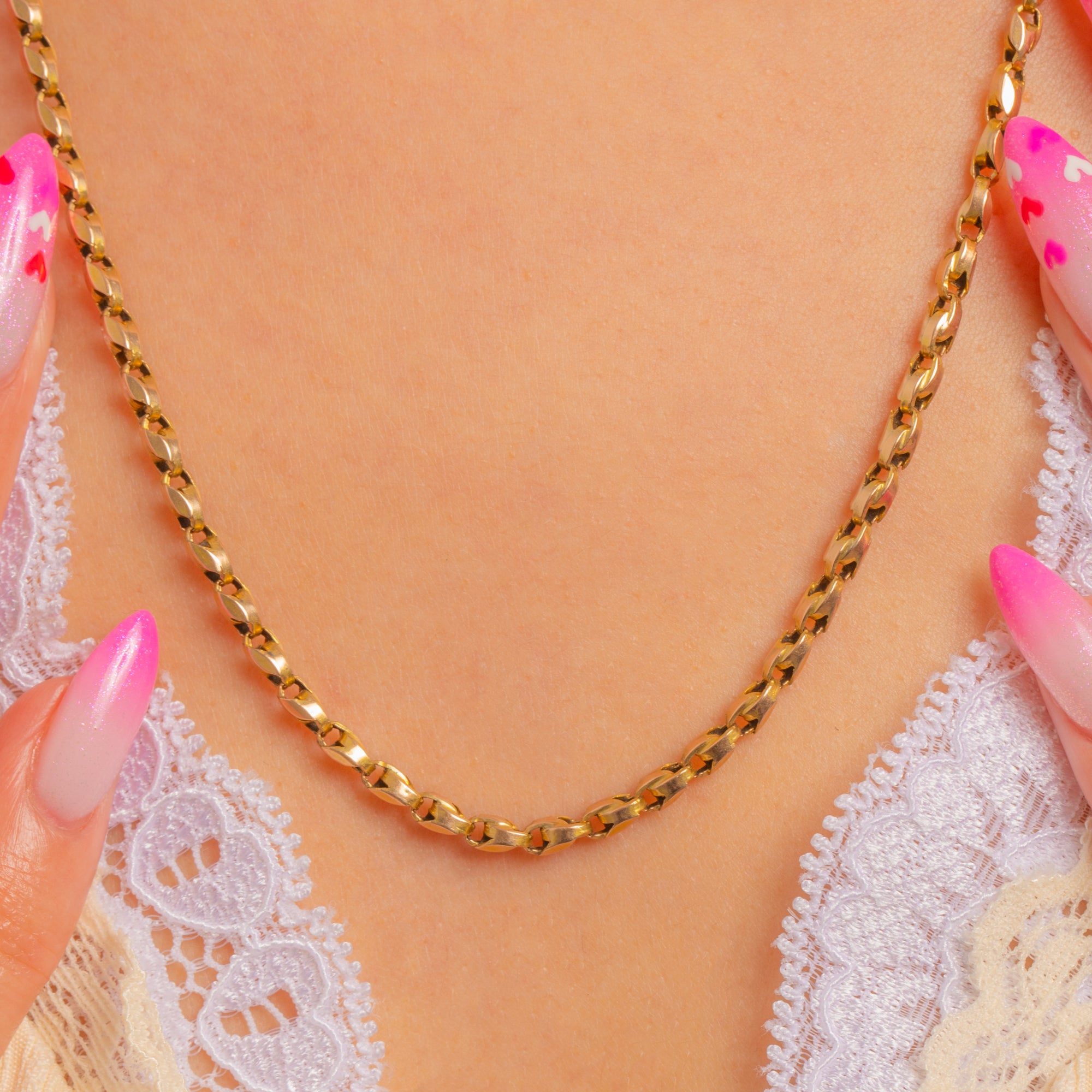 Elegant and effortlessly wearable, this Victorian 9ct Gold Tulip chain shimmers with crisp, faceted links that catch the light beautifully. Its refined, minimalist profile makes it a chic standalone piece and a flawless foundation for layering.