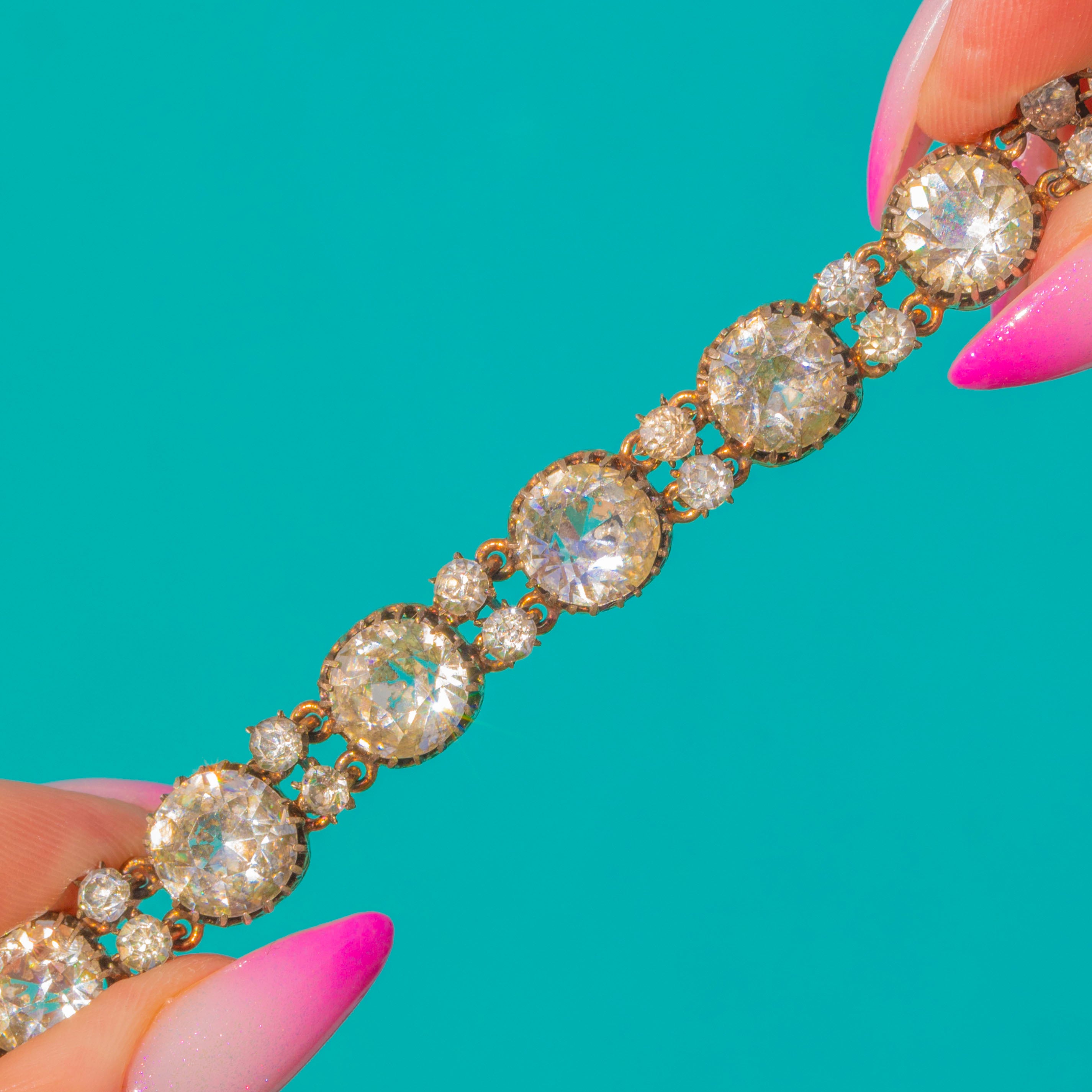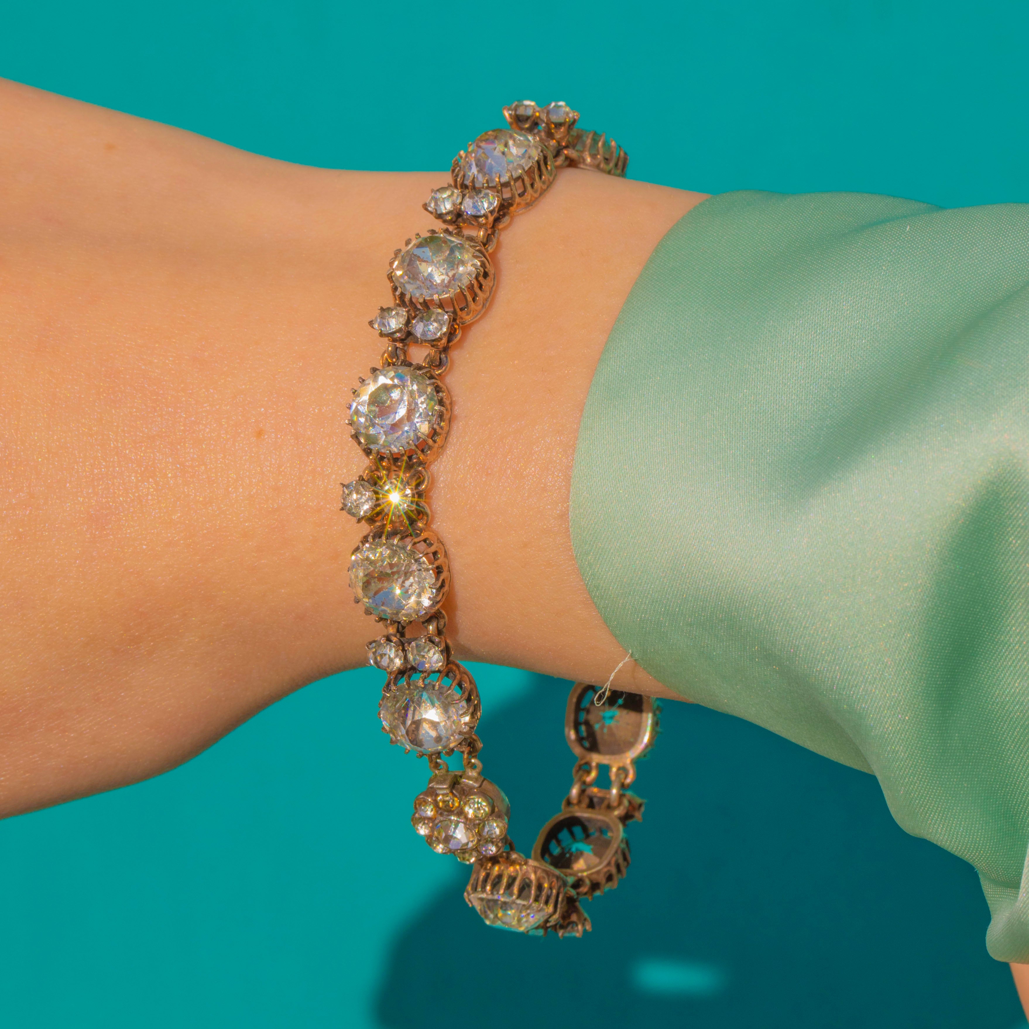 Classic and beautifully wearable, this 19th-century treasure embodies the effortless glamour of the period. Its graduated design flatters the wrist and transitions seamlessly from day to evening—an exquisite piece for lovers of antique elegance.