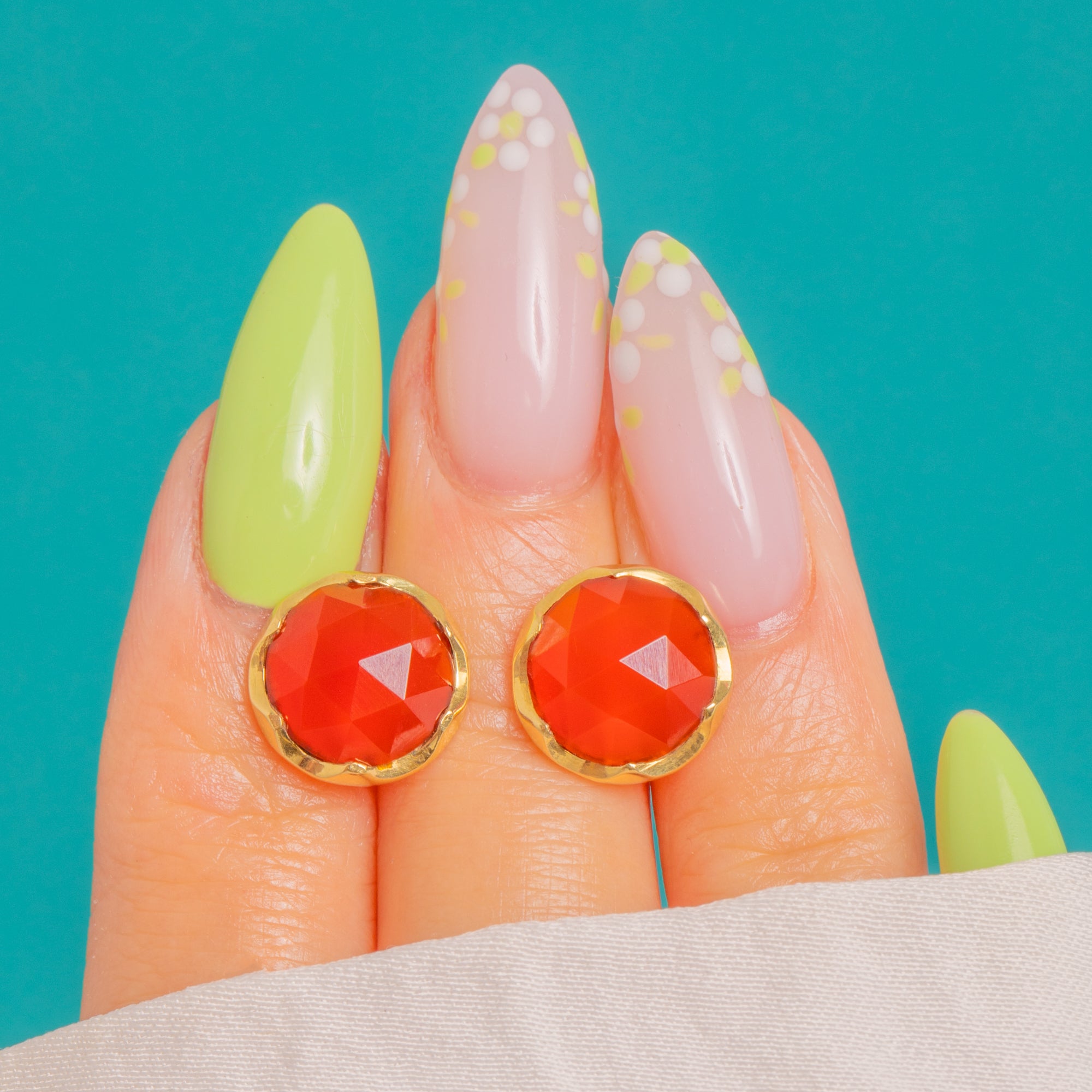 Glowing with rich, sun‑warmed colour, these late 20th‑century Dutch Carnelian earrings are a chic little pop of joy in 15ct Gold. Each earring centres a vivid, faceted Carnelian whose juicy orange‑red hue sings against the buttery Gold, framed by a subtle scalloped bezel for a soft, petalled finish.