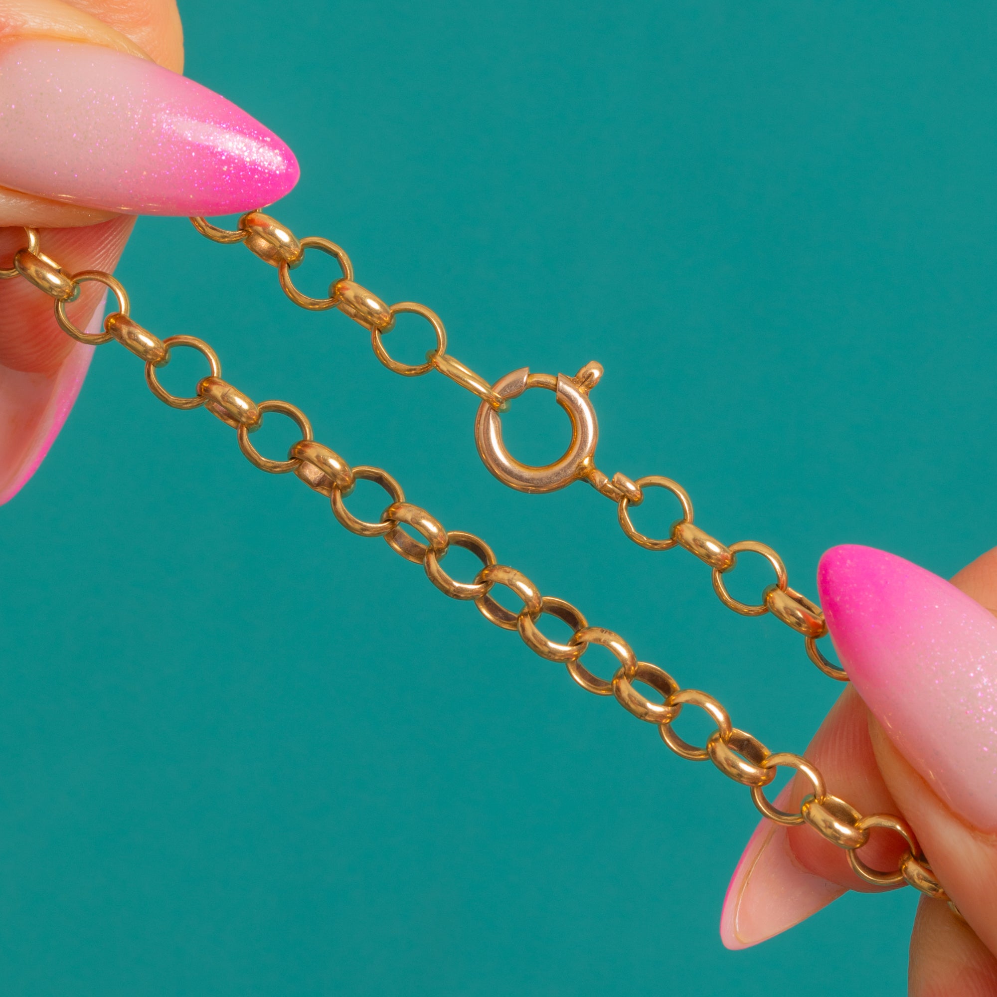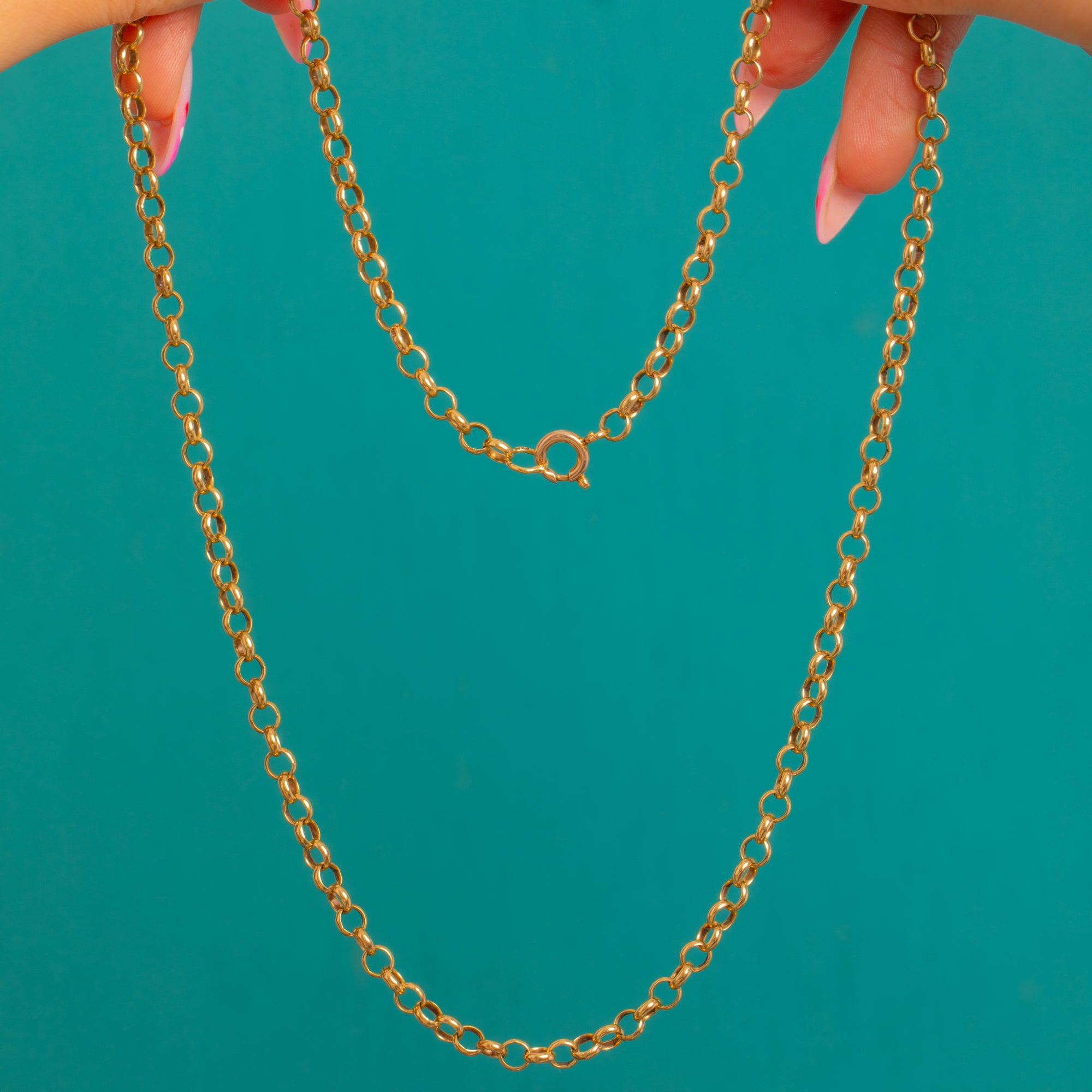 A timeless Victorian belcher chain in rich 9ct Gold, crafted with rounded rolo links that gleam with a bright, polished finish. Its classic geometry and glowing hue make it an elegant essential, ideal worn alone for understated luxury or paired with a favourite pendant.