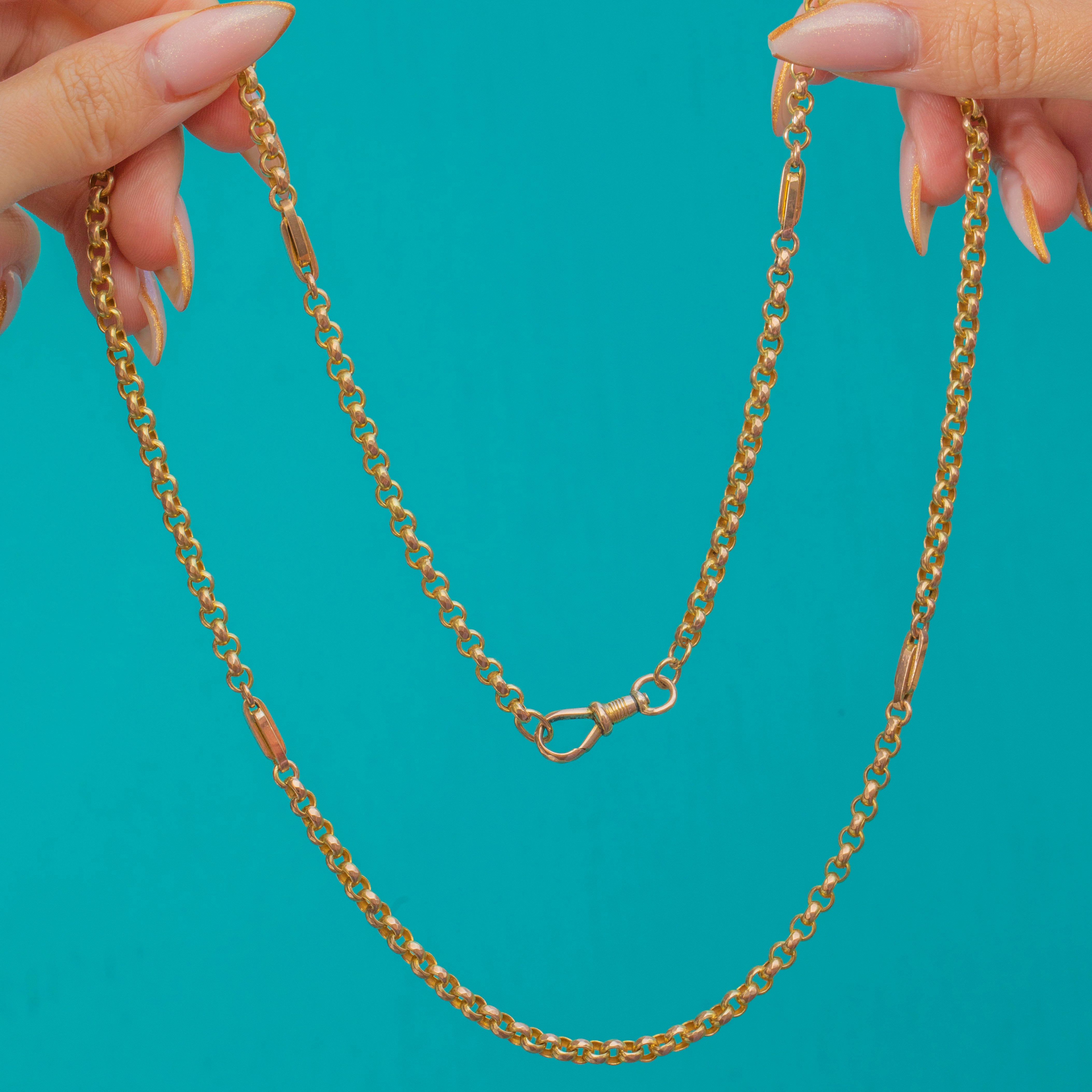 Finished with its original 9ct Gold dog clip, it offers versatility and effortless antique charm. A gorgeous everyday Gold chain with that distinctive Victorian character collectors adore.