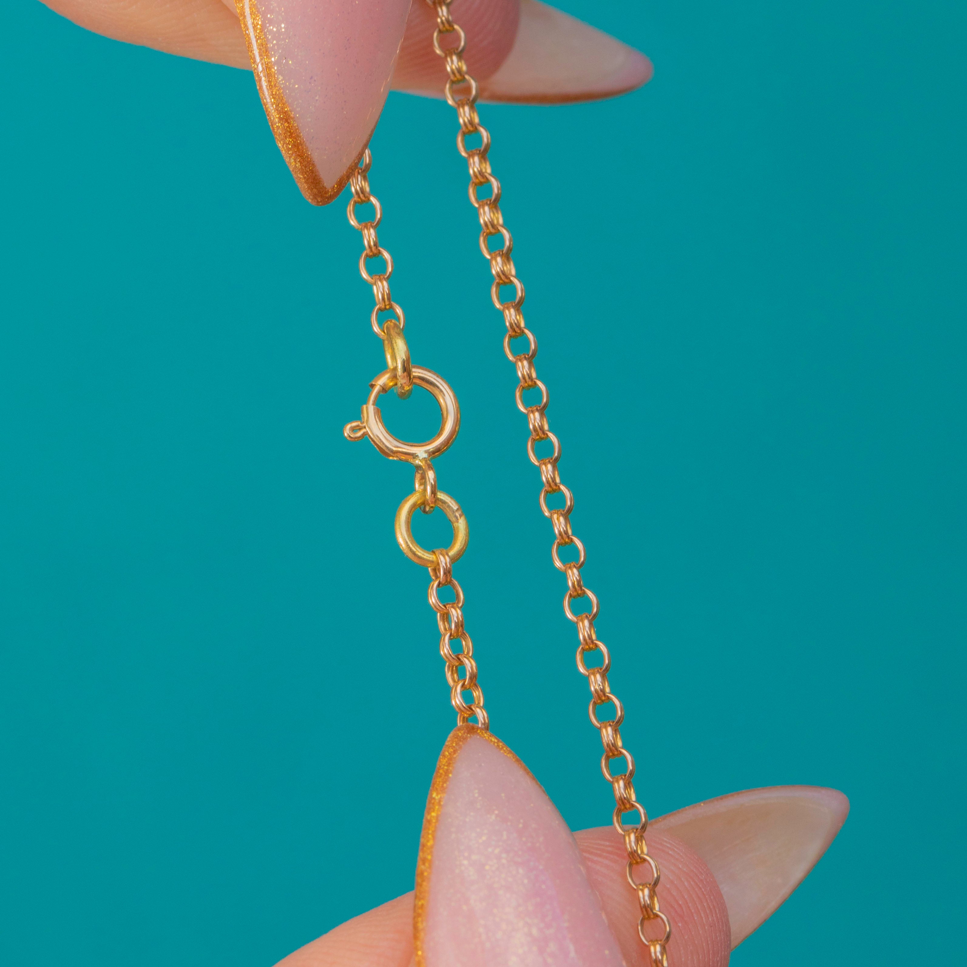 A classic Victorian 15ct Gold chain, beautifully long at 27" and perfect for pendants, lockets, or layering. It's fine 1.5mm links have that soft antique glow unique to true 15ct Gold, giving it an elegant, timeless look that complements any collection.