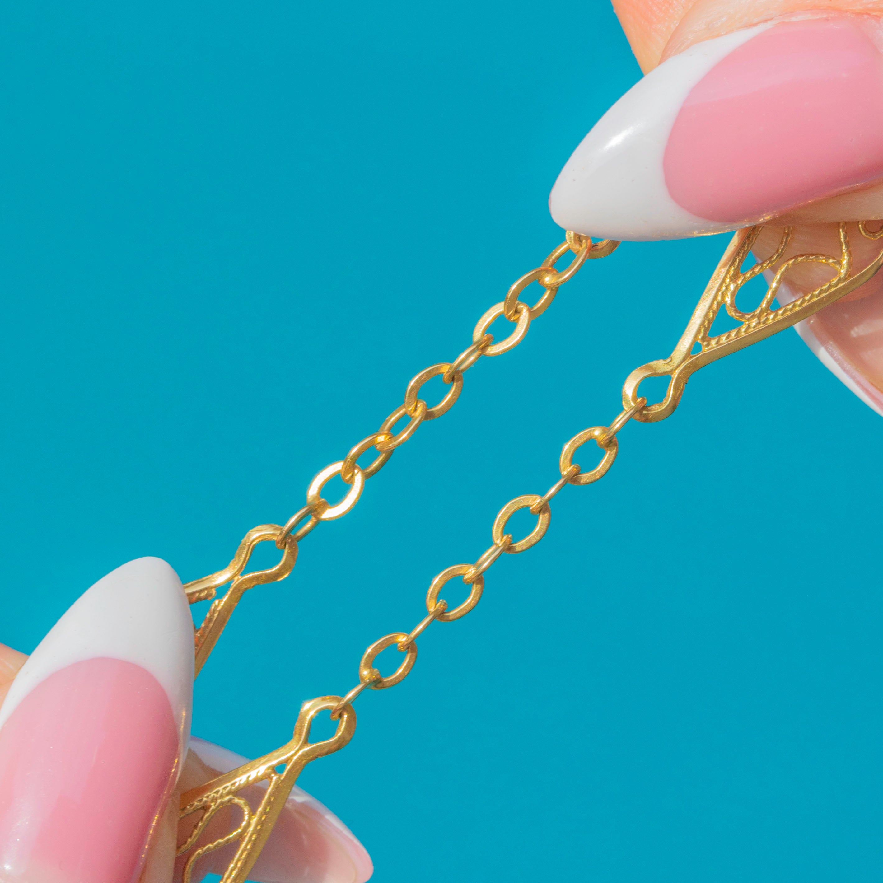 The fancy links are wonderfully bold, measuring 9mm at their widest. At an impressive 30 inches long, it can be worn as a statement chain or layered effortlessly with other necklaces for a luxurious, timeless look.