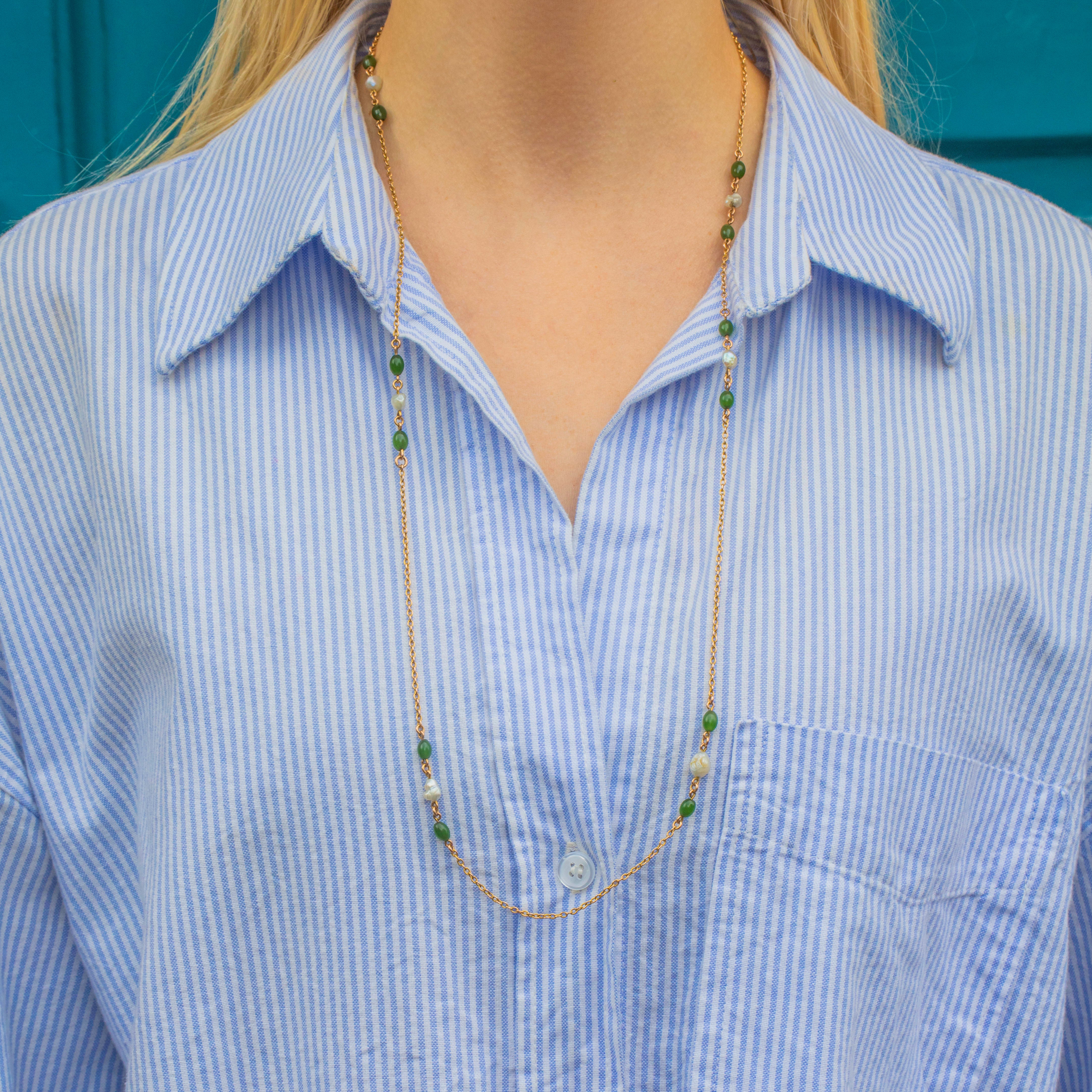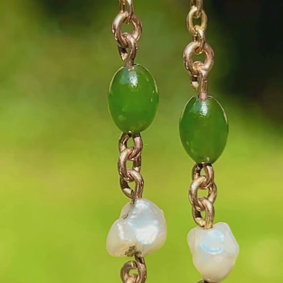31" Antique 9ct Gold Jade & Baroque Pearl Necklace