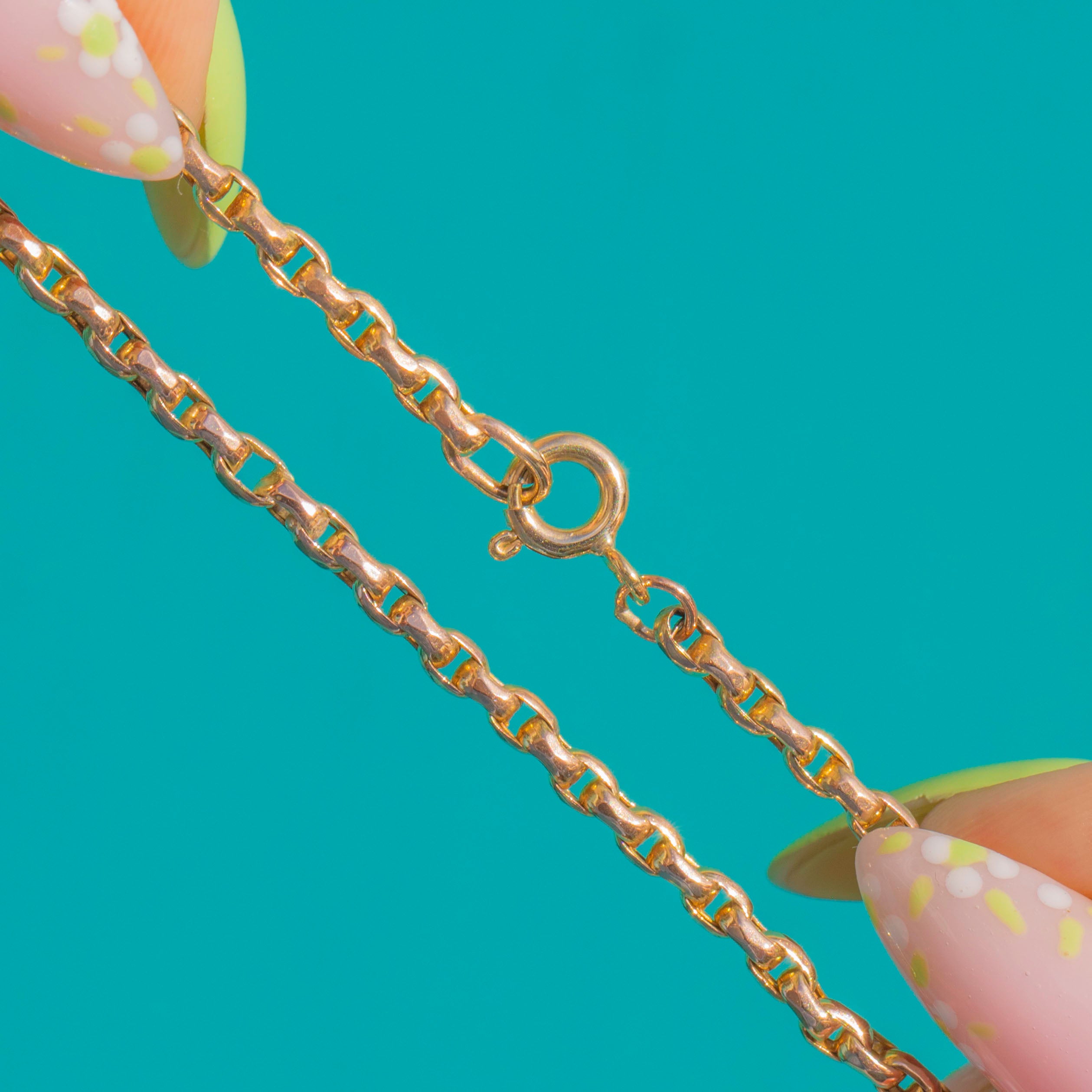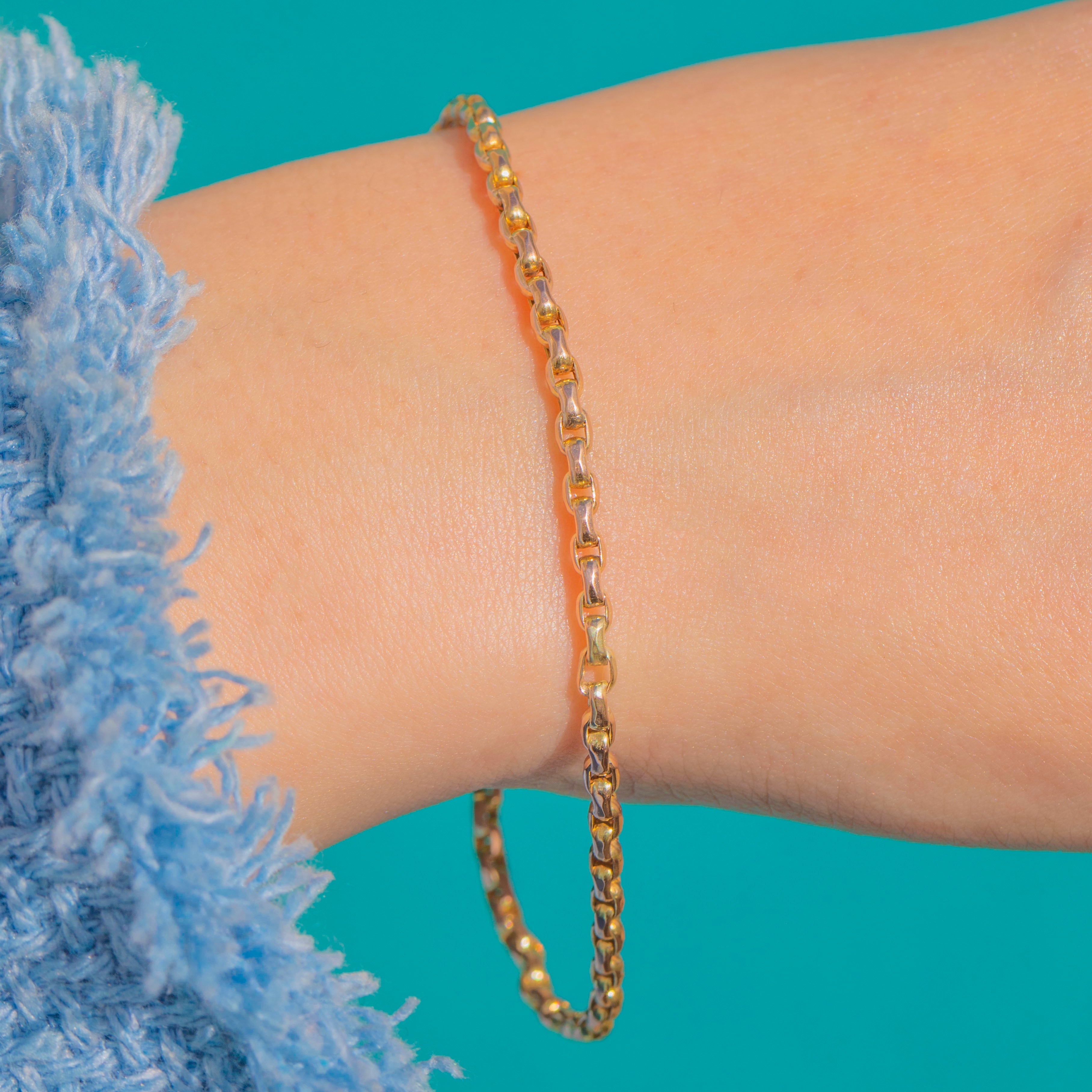 A timeless Victorian 9ct Gold Belcher bracelet, crafted with sleek, uniform links that catch the light with every movement. Its warm, golden glow and beautifully simple silhouette make it a quietly luxurious staple you’ll reach for day after day.