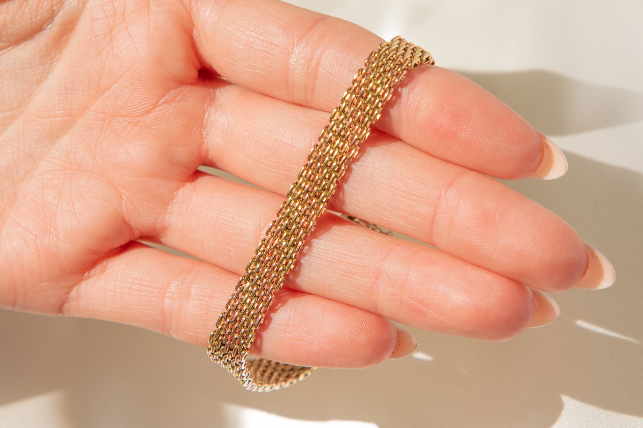 Her dainty chevron links, forming this 7-inch length, allow this Edwardian bracelet to elegantly drape around your wrist, sitting comfortably from day to night.
