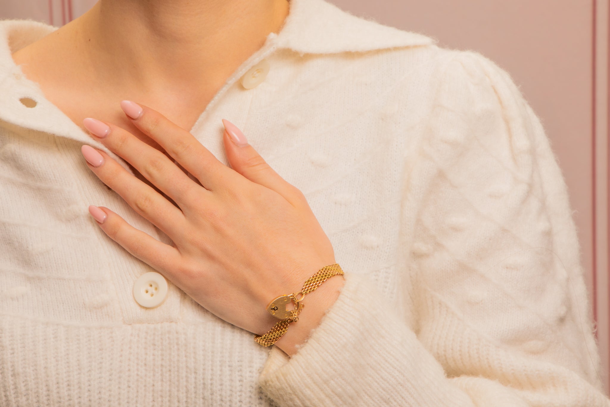 MATERIALS: Tests as 15ct Yellow & Rose Gold bracelet, 15ct Yellow Gold heart padlock.